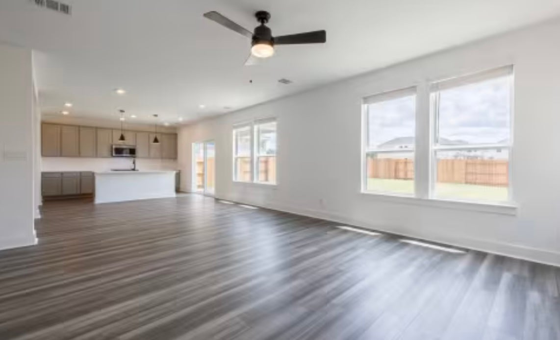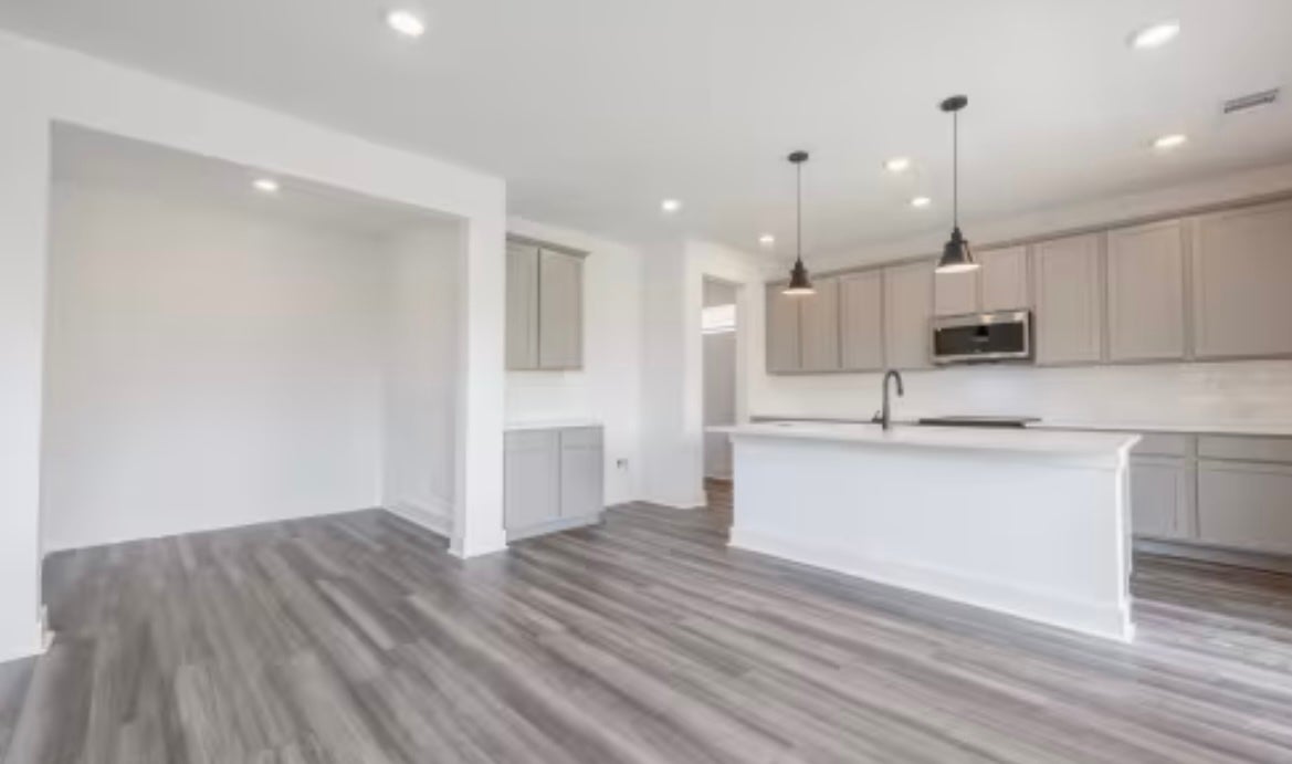 The Beau plan combines functionality with comfort, featuring 2,089 square feet across two stories. This spacious design includes three bedrooms, two and one-half bathrooms and an upstairs loft for added flexibility. The open-concept main floor and private primary suite create a functional and comfortable living space. Additional features on the home include spray foam insulation and pre-plumbing for water softener, full sod with full smart sprinkler system. Convenient onsite elementary school, amenities including luxury pool, parks, outdoor kitchen, club houses all in a hill country setting.