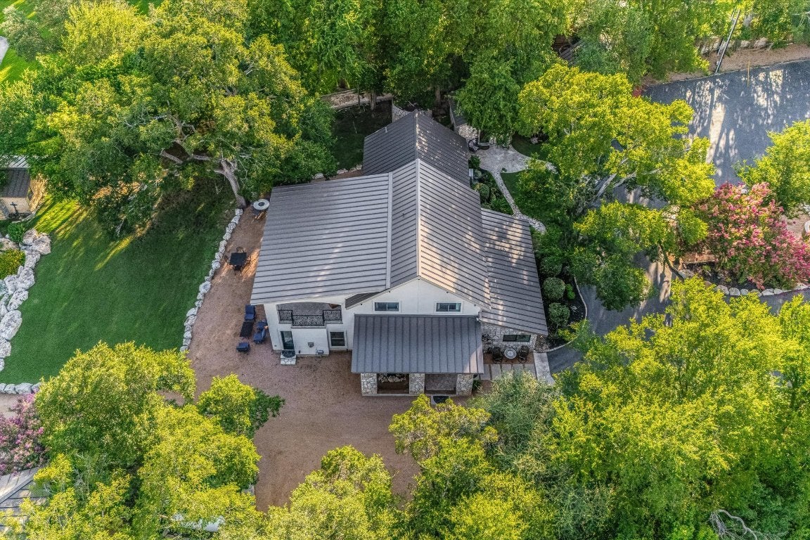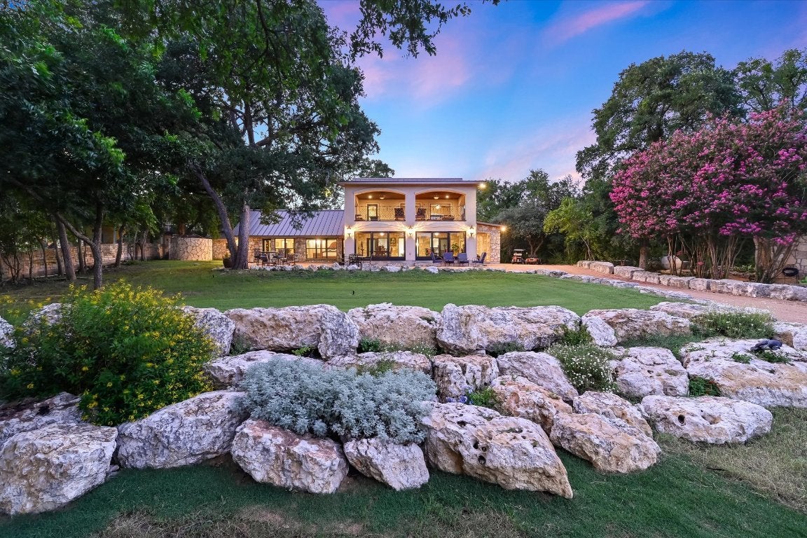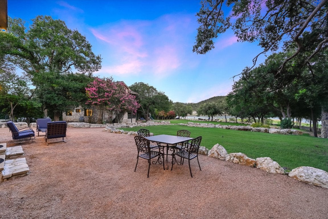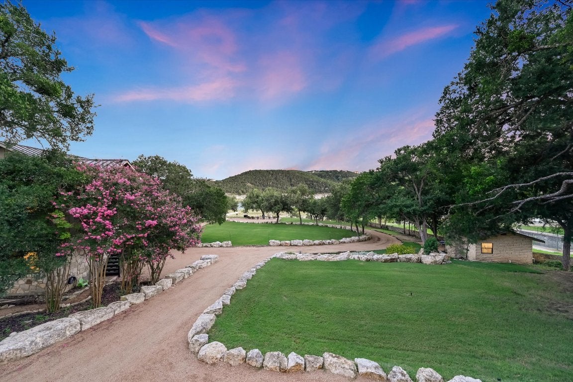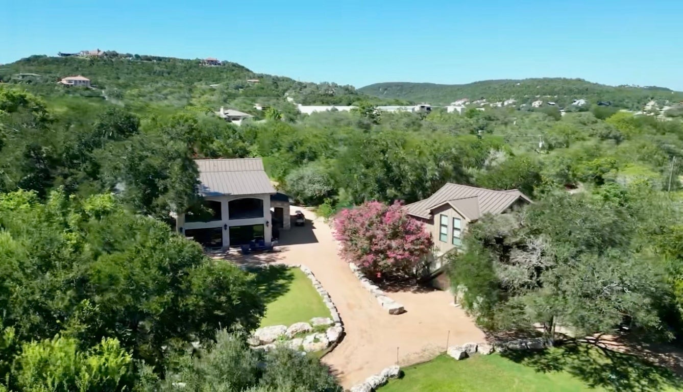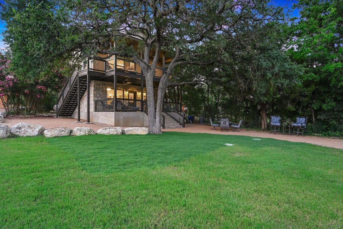 CONTACT AGENT #2: Josh/512-845-5423 for a showing or questions. A rare opportunity to acquire one of the most distinctive waterfront estates on Lake Travis. Set on 2.26 landscaped acres with a gradual slope to deep water and 222 feet of private shoreline, this multi-structure compound was designed for generational living, elevated entertaining, and lasting legacy. The primary residence spans 3,387 square feet (3 bedrooms, 2.1 bathrooms) and features refined Hill Country architecture, expansive window walls, and seamless transitions between indoor and outdoor living spaces. Views stretch across the lake from nearly every vantage point, with upper balconies and covered patios positioned to capture morning light and sunset color. In addition to the main home, the property includes two 724 sf guest houses, both with full kitchens (4 bedrooms, 2 full baths), a 238 sf casita with kitchenette (1 bed, 1 full bathroom), and a 225 sf studio/salon — each thoughtfully sited and privately accessed. Whether hosting extended family, providing long-term accommodations, or creating dedicated workspaces, the layout offers exceptional versatility with no compromise in design or privacy. As you enter through the beautiful stone and large privacy gate - the grounds are curated, not just maintained — mature oaks, manicured lawns, and native stone pathways lead to multiple gathering areas, including a firepit lounge and waterfront viewing decks. A short walk or golf cart drive to the private boat dock down the gradual slope to your private dock and covered boat slip with HydroHoist completes the experience. Don't miss this amazing opportunity to own one of the rarest properties on Lake Travis. With a enough yard space to add your own private pool/spa (rendering available) and driveway space to expand the garage to accommodate up to 4 car garage - this property is a true must see to believe. A true hidden oasis on Lake Travis!