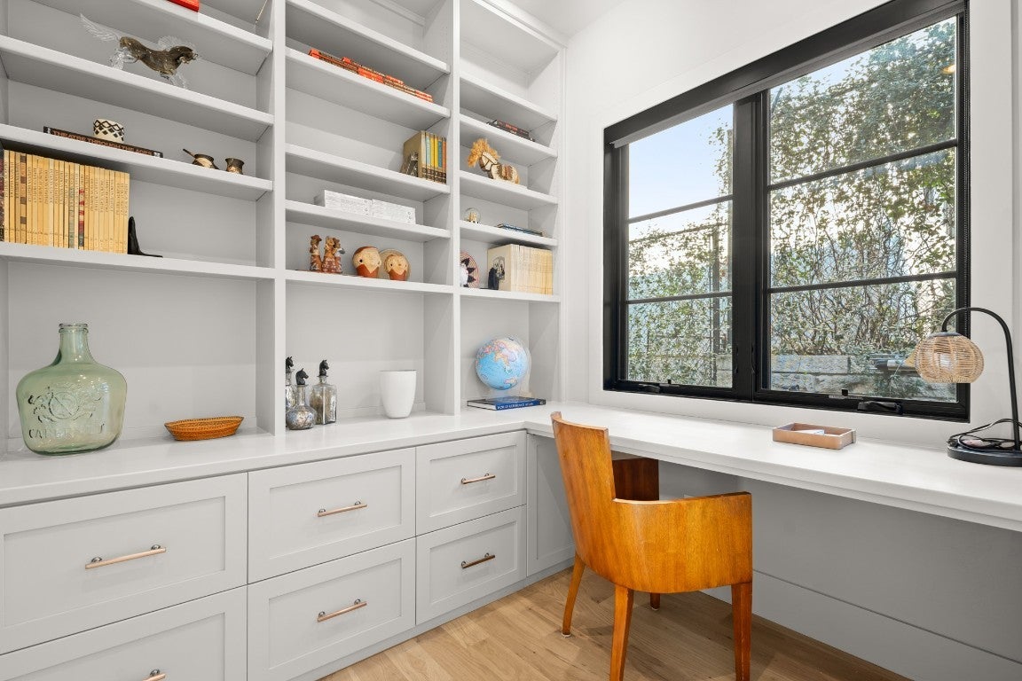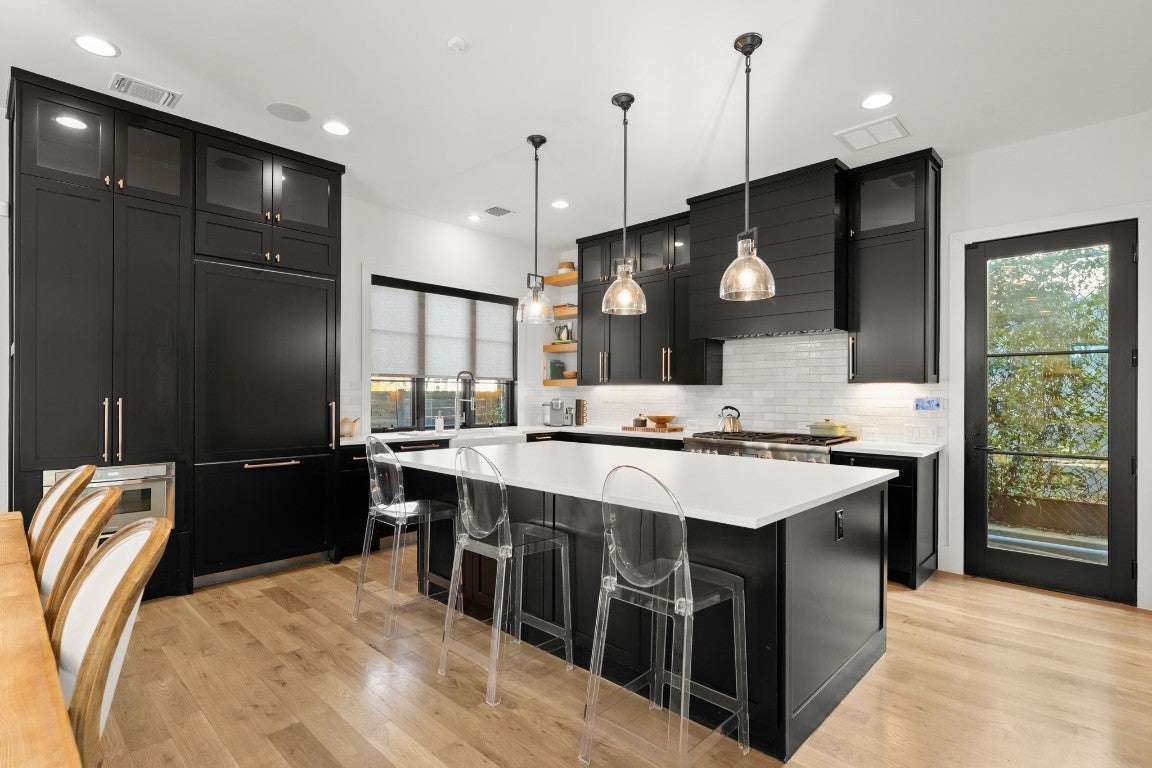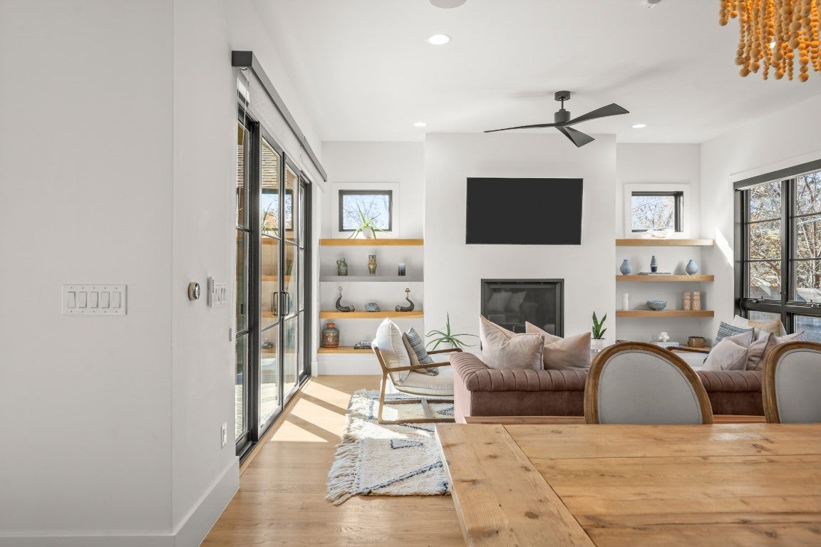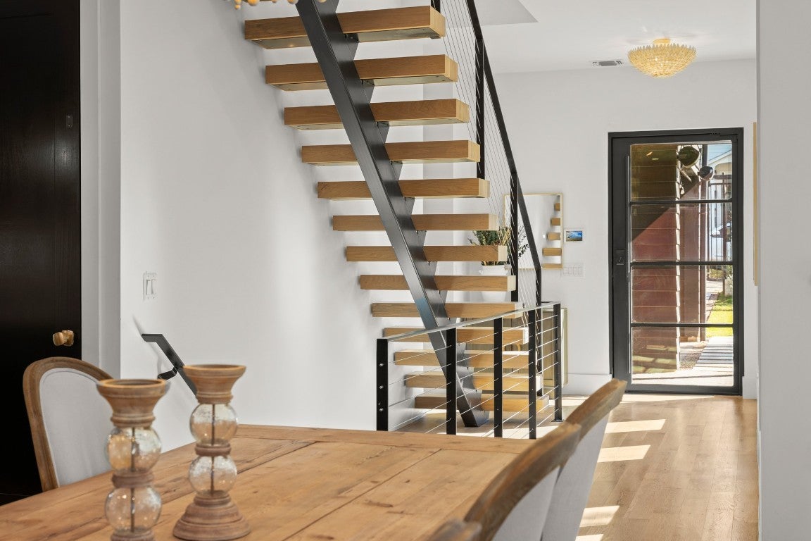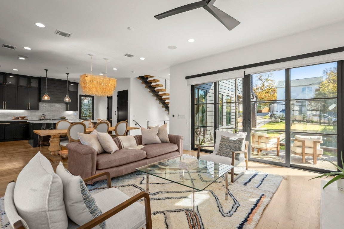 Perched in the heart of Clarksville, this exceptional residence at 802 Pressler Street captures the energy of Austin’s most exciting transformation, where historic charm meets modern luxury. With West 6th Street and the Blanco redevelopment just moments away, the neighborhood is quickly becoming one of downtown’s most coveted destinations—home to refined dining, boutique shopping, and an elevated urban lifestyle. From the moment you arrive through the gated entrance, the home feels like a private retreat above the city. Inside, wood floors flow throughout, complemented by sleek tile baths and top-of-the-line appliances designed for effortless living. An elevator connects each level, adding both convenience and sophistication, while thoughtful details like a second washer and dryer hookup in the primary closet reflect a focus on comfort and function. Walls of windows frame sweeping downtown views, bringing the city skyline into daily life. Outdoors, the experience continues with an in-ground pool, outdoor patio, and fireplace, all surrounded by a perimeter fence for privacy—perfect for quiet evenings or lively gatherings under the Austin sky. Solar panels add efficiency without sacrificing style, blending modern living with forward-thinking design. The location is simply unmatched. Step outside and enjoy a short walk to West 6th Street, the upcoming 6th & Blanco luxury development, and the flagship Whole Foods. Spend mornings on the Lady Bird Lake hike-and-bike trail, afternoons near Lake Austin, and evenings at iconic nearby spots like Josephine House, Jeffrey’s, Clark’s Oyster Bar, and Pemberton Heights cafés. Downtown, Zilker Park, and MoPac access are all just minutes away. With its rare combination of walkability, views, privacy, and luxury amenities, this Clarksville residence offers a front-row seat to one of Austin’s most desirable and dynamic neighborhoods—where timeless location meets modern living.