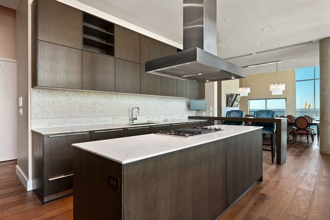 W Residences unit 3503 offers an exceptional blend of luxury and livability in this 3-bedroom, 3.5-bathroom home with sweeping views of Lake Austin and the skyline. The corner residence boasts high ceilings and an open, light-filled layout that creates an inviting atmosphere, anchored by a living room with a fireplace. Floor-to-ceiling windows capture both water and skyline vistas, while a private terrace extends the living space outdoors for effortless entertaining or quiet evenings above the city. The modern open kitchen is designed for both form and function, featuring a dramatic wall of windows overlooking downtown, sleek cabinetry, and premium stainless steel appliances by Miele, including a double oven and wine refrigerator. The primary suite is a true retreat, complete with terrace access, a spa-like ensuite with a soaking tub, walk-in shower, pristine tile finishes, dual vanities, and a custom walk-in closet with exceptional storage. An expansive laundry room with a sink and generous storage adds everyday convenience, while custom built-ins in the third bedroom transform the space into a polished and highly functional workspace or library. Residents benefit from direct access to the W’s full suite of hotel services and amenities, with around-the-clock concierge support, a state-of-the-art fitness center, a luxurious spa, and an exclusive pool reserved for residents. Ideally positioned at 210 Lavaca Street, this premier downtown location places Lady Bird Lake, acclaimed dining, live music, and Austin’s most vibrant cultural destinations just moments from your door. Tax and assessed values are estimates for illustration purposes only. All figures should be independently verified.