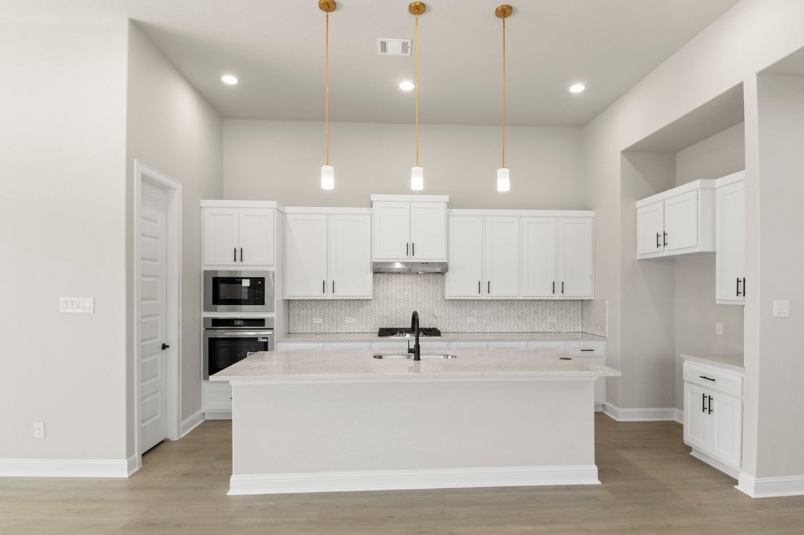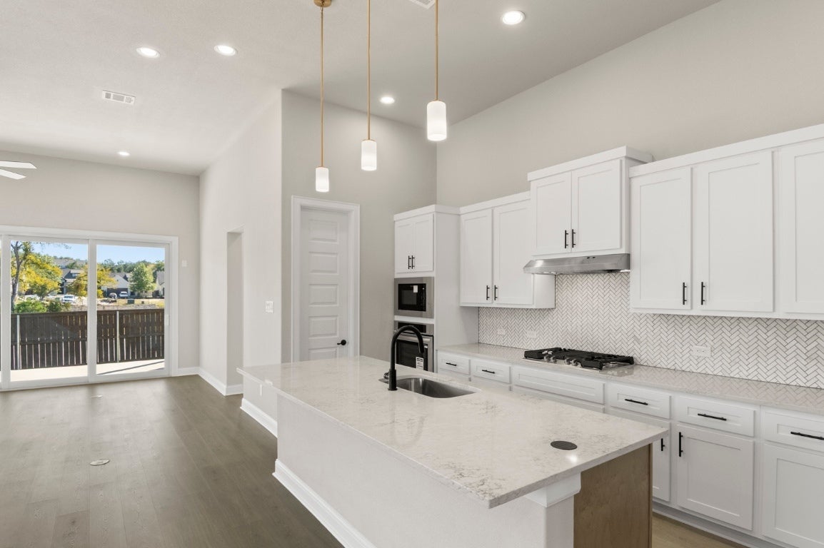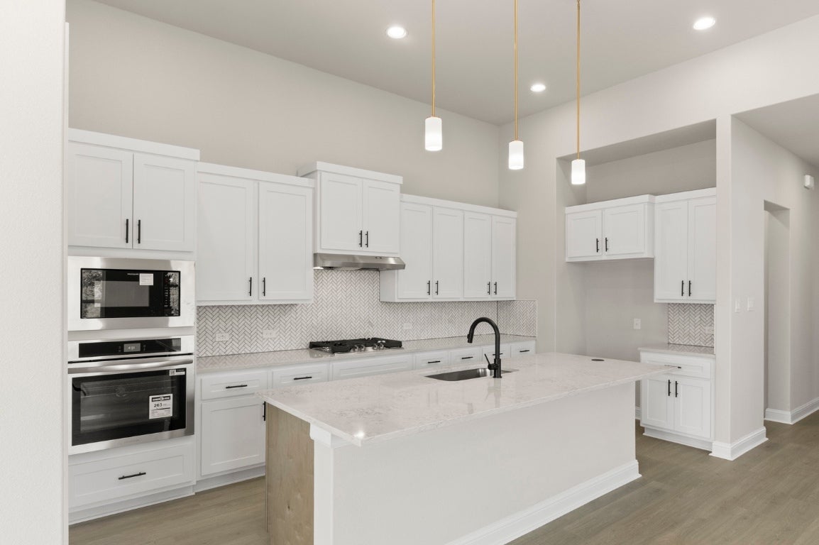 MLS# 1183467 - Built by Brohn Homes - Ready Now! ~ Abundant space, natural lighting pouring in every room, and upgrades throughout the home, including 8-foot doors on the first floor, make this luxurious two-story new construction home a dream! Step in to find gorgeous and durable wood-look luxury vinyl plank flooring throughout the home, including the bedrooms, bathrooms, and stairs! The open-concept living areas carry on to the extended covered patio through the 15-foot sliding door in the living room. Enjoy a magazine-worthy kitchen featuring stainless steel built-in appliances, including a gas range, 3cm Silestone Helix countertops, 42-inch cabinet uppers, a double trash can pull-out, a large center island, a corner pantry, and pendant lights. Start and end your day in the oasis of the first-floor primary suite, featuring a bay window, separate garden tub and shower, dual vanity with space on either side of the sinks, large walk-in closet, and a private water closet. With ceiling fans in all five bedrooms, the living room, and the game room, you can be comfortable no matter the weather. Delight in other highlights, including walk-in closets in the secondary bedrooms, a mud room off the garage with access to the utility room, a gas drop for BBQ on the patio, a tankless water heater, whole house gutters, and more! The Cross Creek community in Cedar Park offers a range of amenities to enhance your daily life, such as scenic walking and biking trails, perfect for outdoor enthusiasts. Relax at nearby parks and playgrounds, or take advantage of the community's proximity to shopping, dining, and entertainment options.