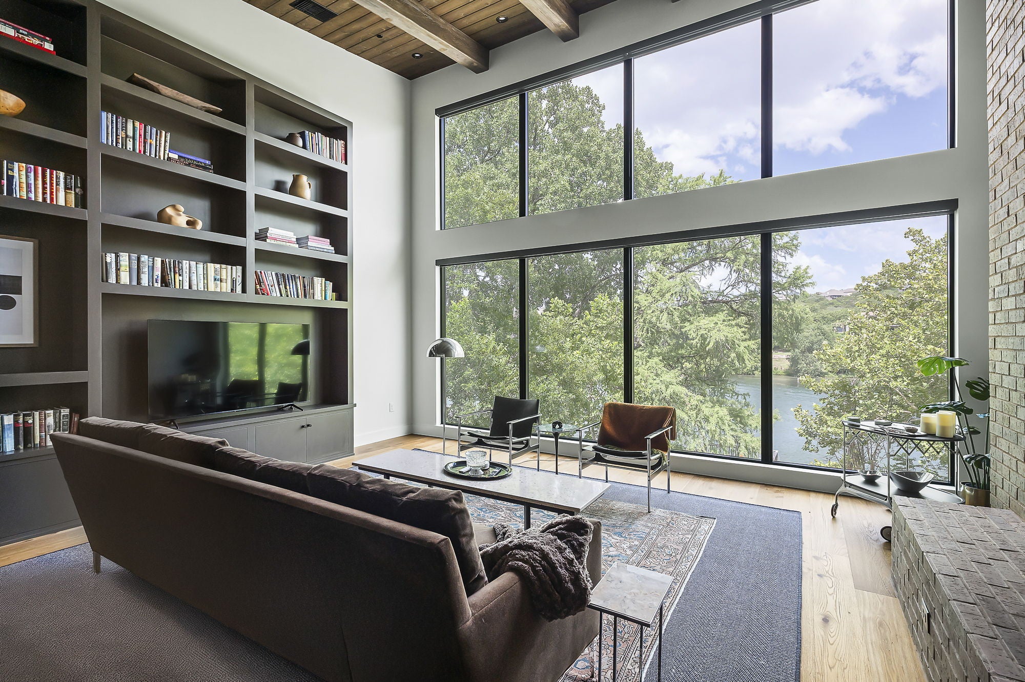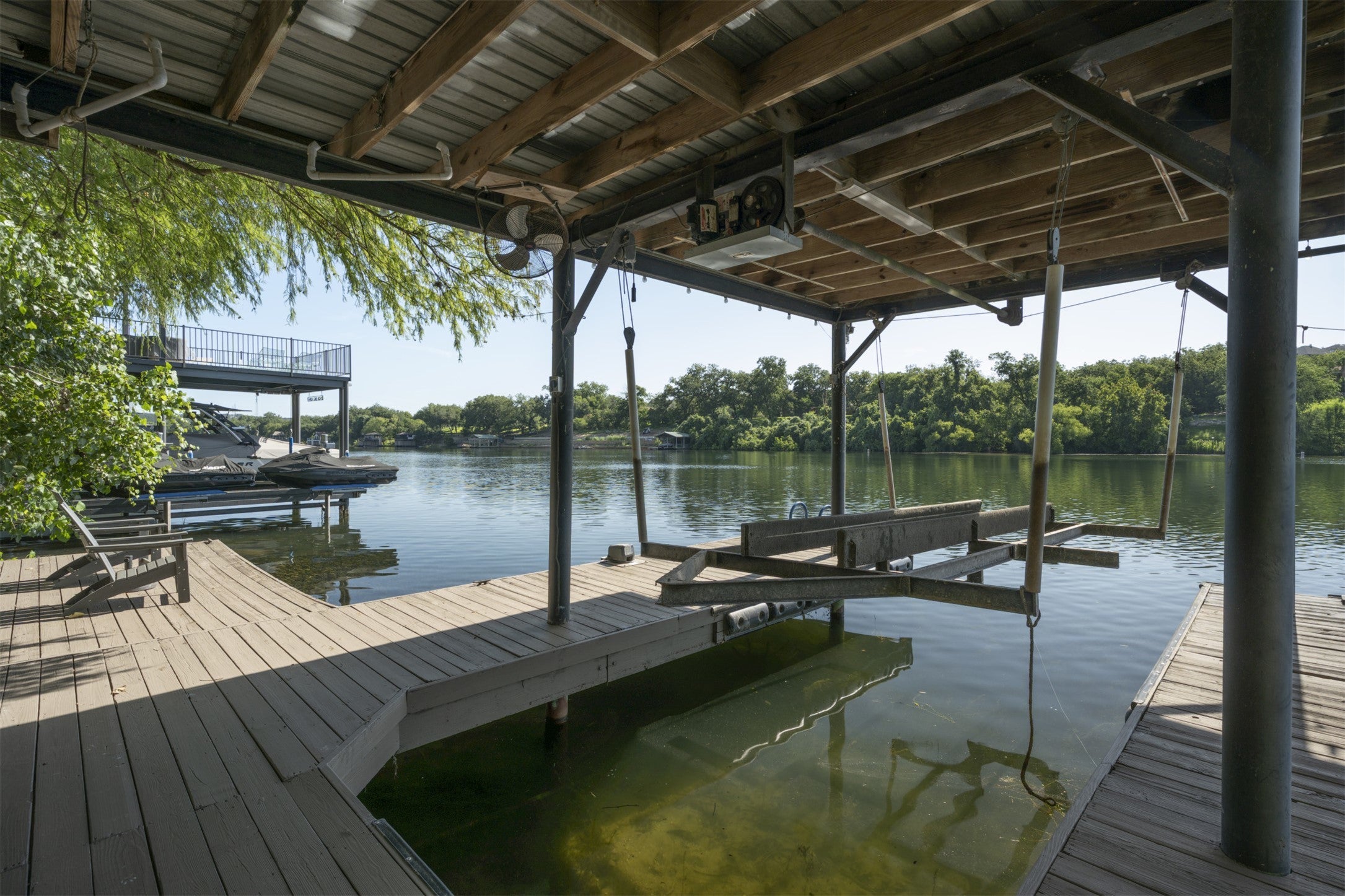 Modern Lake Austin Waterfront with Bold, Refined Design A rare offering on Lake Austin, 2403 Big Horn Drive blends streamlined modern architecture with warm, organic materials and fearless style. Completed in 2024, this home showcases Austin craftsmanship and curated details, inviting relaxation and connection. Designed by the acclaimed Kelley Design Firm, built by Pecan Valley Custom Homes, and furnished with subtle sophistication by Liz MacPhail Interiors, this home’s interiors are collected yet restrained, where family heirlooms, bold rugs, books, and travel finds live easily alongside modern, masculine, and organic finishes. Oversized grandfathered dock with boat and jetski lifts for direct Lake Austin access Expansive floor-to-ceiling textured brick fireplace Soaring bookshelves for art, collectibles, and treasured volumes Wide white oak & concrete floors, honed black & leathered granite counters, along with marble, and Charcoal Soapstone Suede finishes offer modern sophistication A Dry bar for effortless entertaining Framed views of Lake Austin 3 Locking owners' closets Austin Wood Works custom cabinetry with dovetail drawers, maple interiors, and European soft-close hinges adorn the kitchen The primary retreat has perfectly framed water views and a sophisticated en-suite retreat with fluted floating cabinetry and black terrazzo flooring. This home is a study in contrasts—bold yet serene, edgy yet timeless. The simple color palette lets layered textures shine: steel planters accent thoughtful and low-maintenance landscaping, while oversized windows and bifold doors blur the lines between indoors and out. Settle into comfortable elegance where every space invites a deep breath — from the soft glow of Arteriors + Visual Comfort lighting to the effortless flow from living spaces to the oversized dock. Whether full-time or a cherished retreat, this property offers authentic lakeside living with a fearless design point of view.