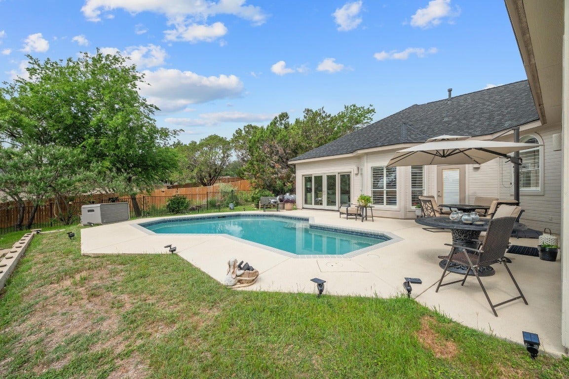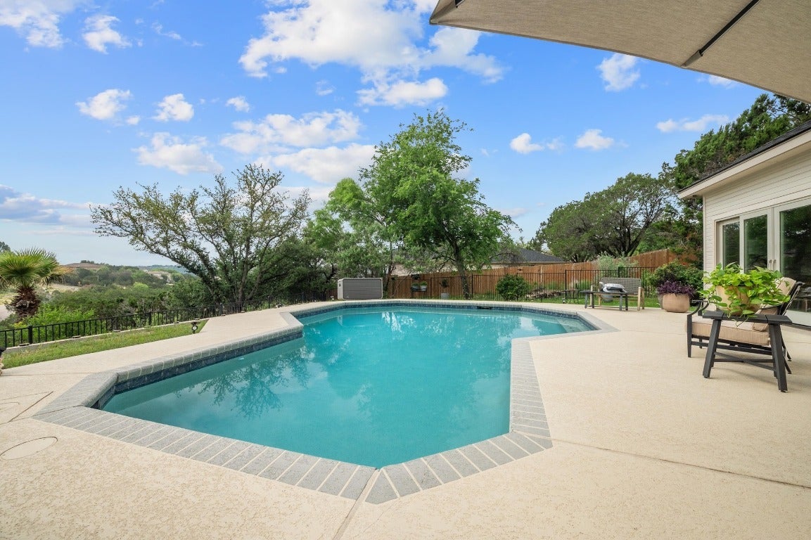 Welcome to your private retreat in coveted Highland Lake Estates, where stunning Hill Country views and resort-style living await. Nestled on an expansive nearly half-acre corner lot, this beautifully designed single-story home offers the perfect blend of elegance, comfort, and functionality—complete with a sparkling in-ground pool and breathtaking vistas from the backyard. Charming curb appeal sets the tone, with a classic stone exterior and double front doors that lead into a light-filled interior featuring high-end finishes throughout. The thoughtfully designed open-concept floorplan includes a formal dining room and formal living room just off the foyer, ideal for entertaining and gatherings. The spacious family room flows seamlessly into the chef’s kitchen, where you’ll find a large center island, granite countertops, stainless-steel appliances, and ample cabinetry to meet all your storage needs. Unwind in the private owner’s suite, complete with a walk-in closet and luxurious en-suite bath featuring separate granite-topped vanities, a jetted soaking tub, and a frameless walk-in shower. Three additional guest bedrooms provide flexibility for family, visitors, or a home office. Step outside to your expansive patio, the perfect place to relax or entertain poolside while enjoying sweeping Hill Country views. Whether you're hosting friends or simply soaking in the scenery, this outdoor space is a true showstopper. Located in the heart of Lago Vista, you’ll enjoy access to an abundance of amenities, including 11 private lakefront parks, marina, boat ramps, golf course, clubhouse, tennis courts, and more. Enjoy the serenity of lakeside living with the convenience of nearby shopping, dining, and top-rated schools. Don’t miss this rare opportunity to own a slice of Hill Country paradise in one of the area’s most desirable neighborhoods. Schedule a showing today!
