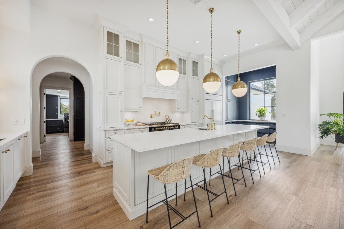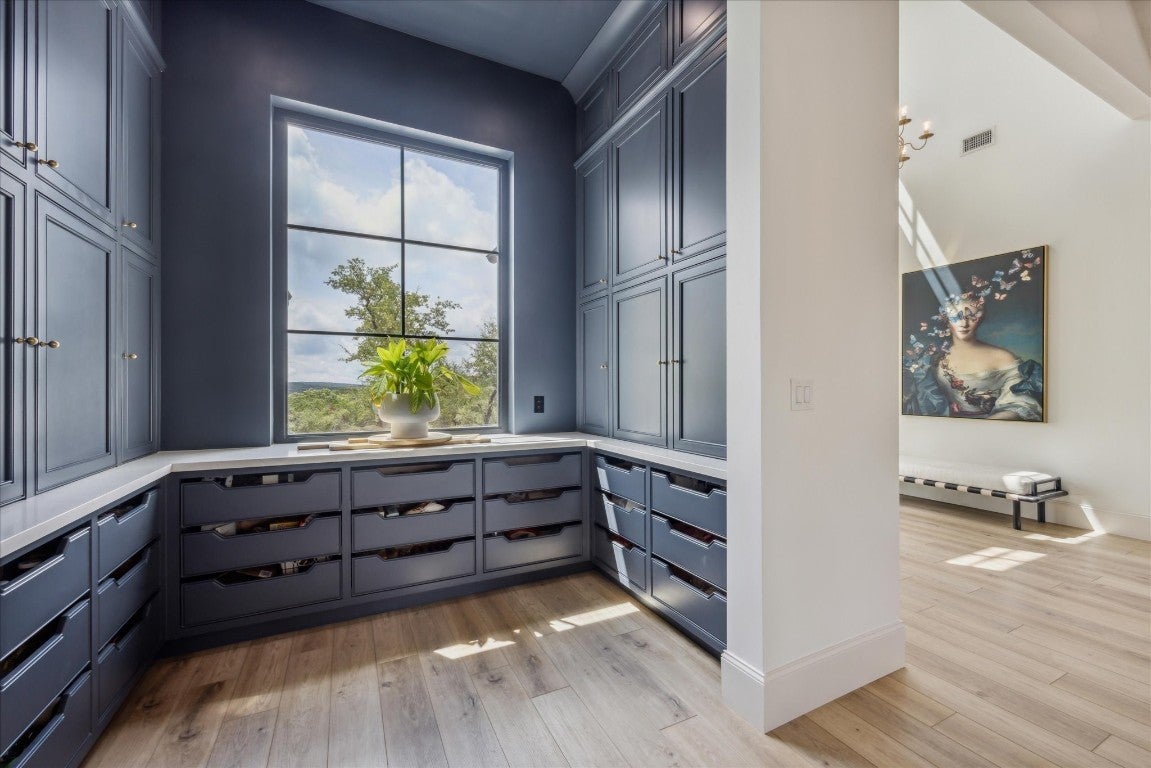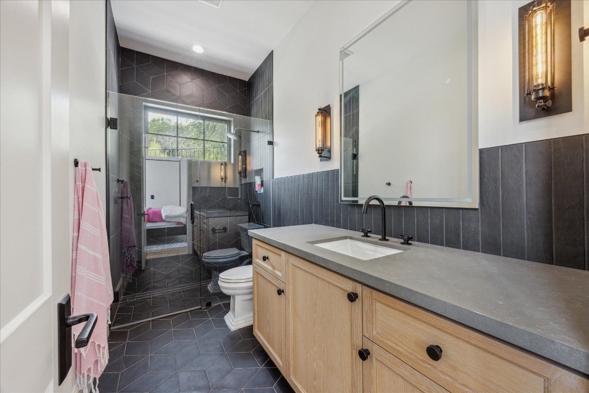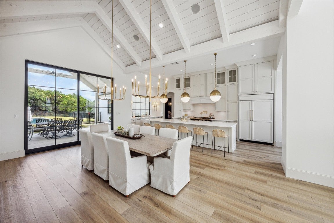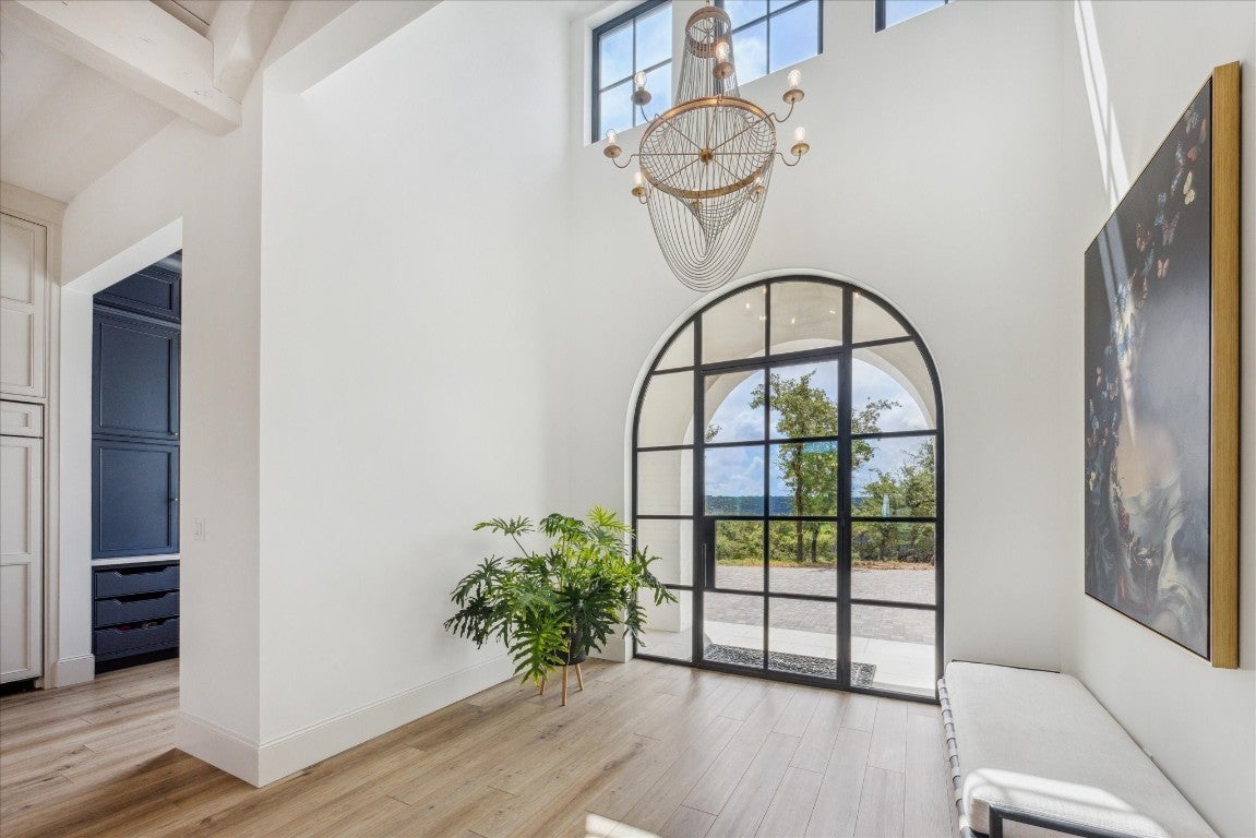 Nestled in the picturesque hills of Wimberley and perched on a knoll with panoramic views spanning over 2.6 acres, this luxurious 4,798 square foot custom residence offers an unparalleled blend of sophistication and comfort. The impressive entryway leads to an open floor plan adorned with vaulted ceilings and custom lighting fixtures. The spacious living areas feature arched details and natural stone accents. Wide hallways ensure a seamless flow throughout the home. The spacious family room and dining area have a decorative wood burning fireplace, and an adjacent media room which is perfect for larger gatherings as well as an office alcove. The entire area is open to the chef’s delight gourmet kitchen equipped with high-end appliances including an Italian ILVE range with six burners and a rectangular seventh burner, pot filler, Sub Zero refrigerator and freezer. There is a sizable center island with seating for six. A large pantry area offers an abundance of built-in storage. The primary suite privately located on one end of the home is a sanctuary, complete with vaulted ceilings, luxurious shower, double vanities, large walk-in closet with built-ins and beautiful finishes throughout. The laundry room offers a center island, hanging areas, sink and lots of counter space. The upstairs with beautiful views has a huge flex room which is ready for your plans for use and a large storage room. A conveniently located mud room with built-in storage is adjacent to the attached 3 car garage with workshop. The expansive covered patio and outdoor kitchen overlook a heated pool with baja bench and large sunning area, complemented by a pool house with wet bar, refrigerator and ice maker. Additional amenities include built-in speakers, water filtration system, two tankless water heaters, dual zoned HVAC, a 30,000-gallon rainwater cistern, private well, and ample parking with a cobblestone circular driveway. The charming town of Wimberley and all it has to offer is close by!