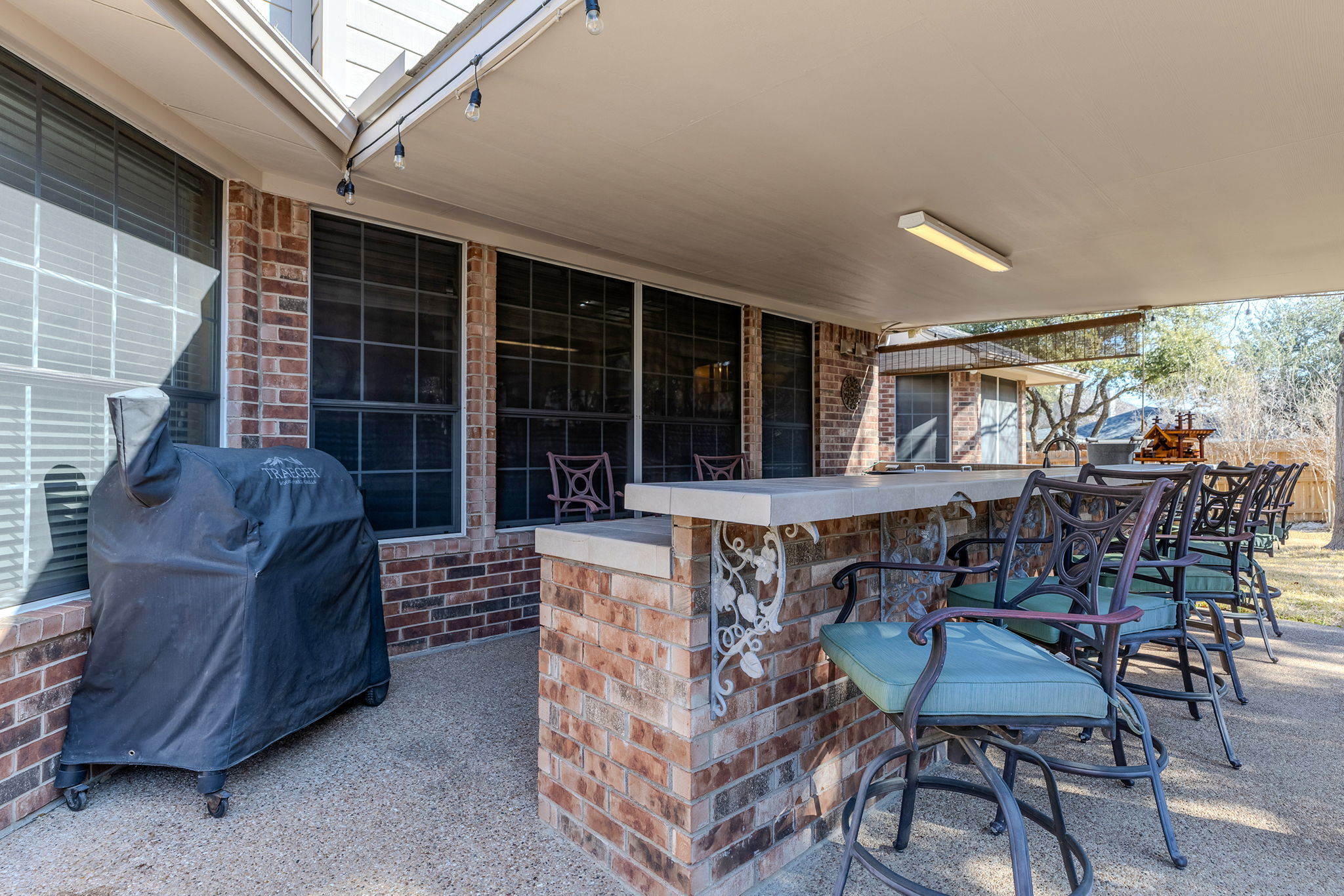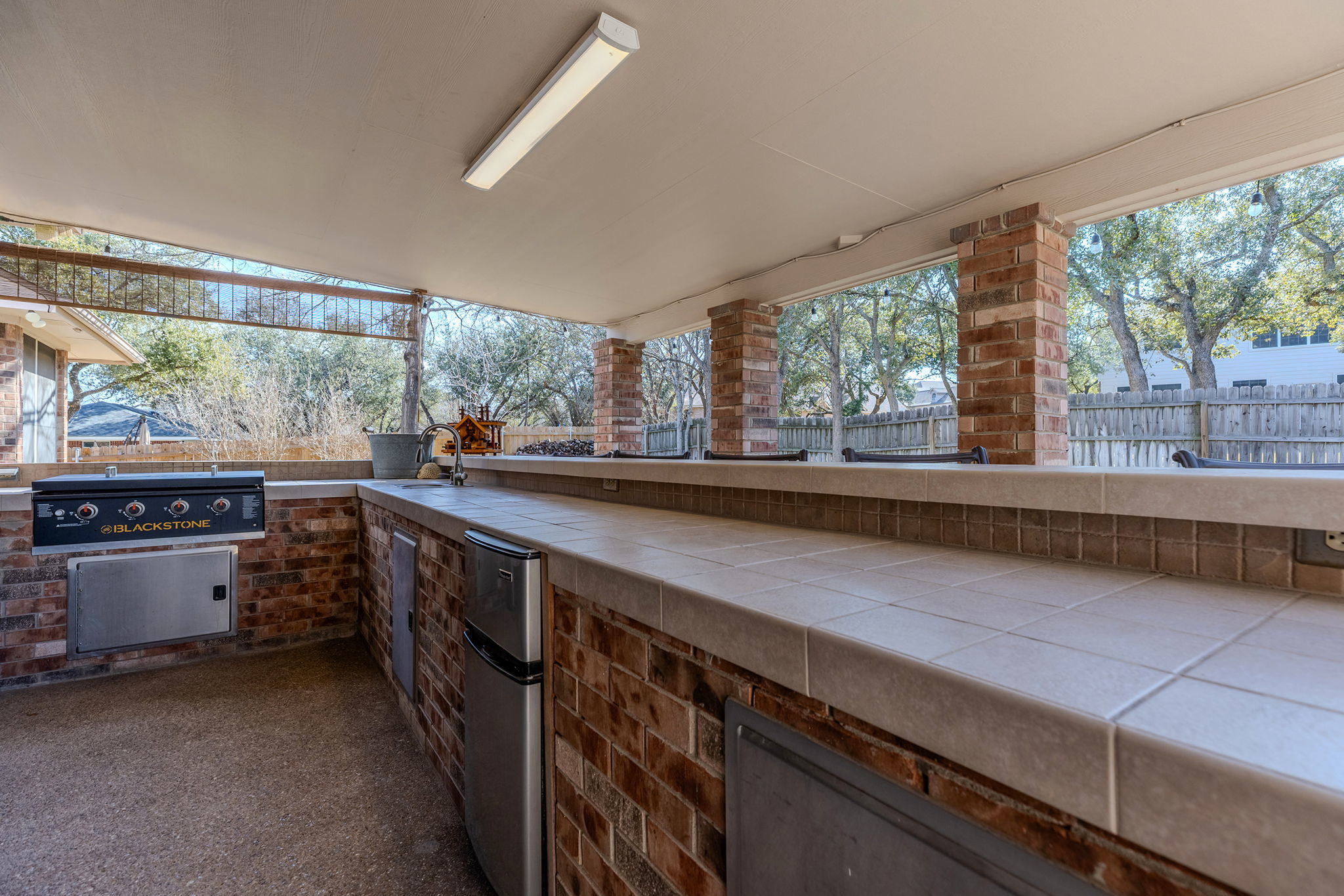 Rare gem on a quiet cul-de-sac in the sought after Forest Ridge Estates, this spacious home sits on a park-like half-acre lot and offers a flexible layout designed for multi-generational living, entertaining, and everyday comfort. With 3944 sq ft, this property features 4 bedrooms, 3 full and 2 half bathrooms, multiple living areas, and a game room, with the option for a fifth bedroom or dedicated study. The main level showcases tile and wood flooring, generous living and dining spaces, large primary suite with sitting area, and a well-appointed kitchen with gas cooktop, granite countertops, solid Oak wood cabinetry, instant hot water dispenser, butler’s pantry, kitchen desk, and custom details throughout. The home offers an upstairs primary-style suite, split staircases, art niches, and a large central bonus room with bamboo floors, providing excellent flexibility for home office, hobbies, or extended family needs. Recent updates include a newer roof (approx. 4 years), new pool plaster (Oct 2025), dual Trane HVAC systems, Hardie siding, exterior and interior repainting, and updated backsplash. The backyard is for outdoor living with a covered outdoor kitchen, bar, pool, custom wood-fired pizza oven, Blackstone griddle cooking area, dozens of mature live oak trees as well as a few fruit trees (pomegranate, plum and apple), and ample space. Large playhouse and half-acre lot add to the property’s versatility. Ideally located near major Round Rock amenities, including shopping, dining, parks, medical facilities, and highly regarded schools. Convenient access to SH-45, I-35, and TX-130 provides easy commutes to major employers such as Samsung, Tesla, Dell, Apple, Emerson, and other leading technology and manufacturing campuses in the greater Austin area. This well-maintained home offers space, functionality, and location for buyers seeking long-term value in one of Round Rock’s most desirable areas. All information is deemed reliable. Buyers to verify all information.