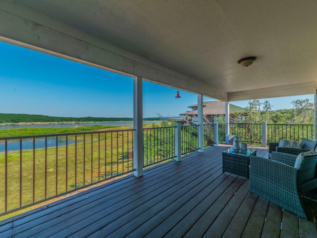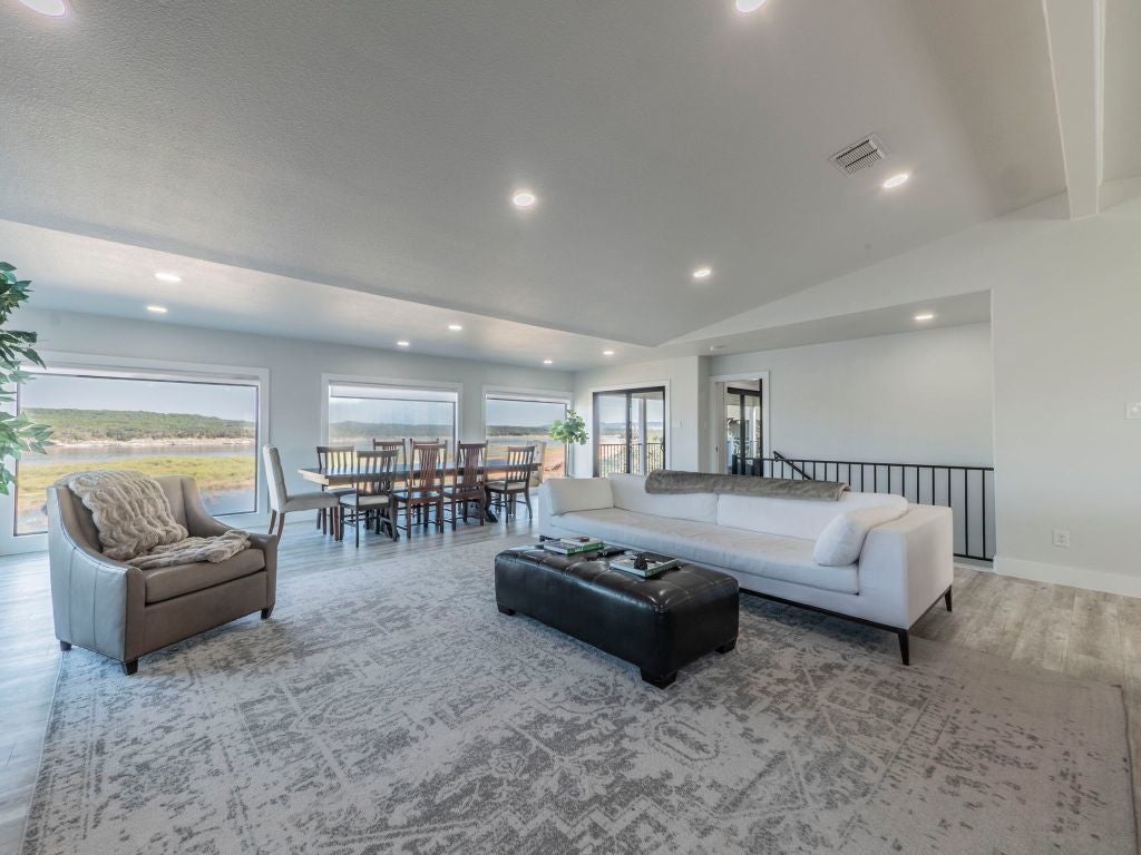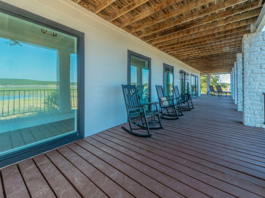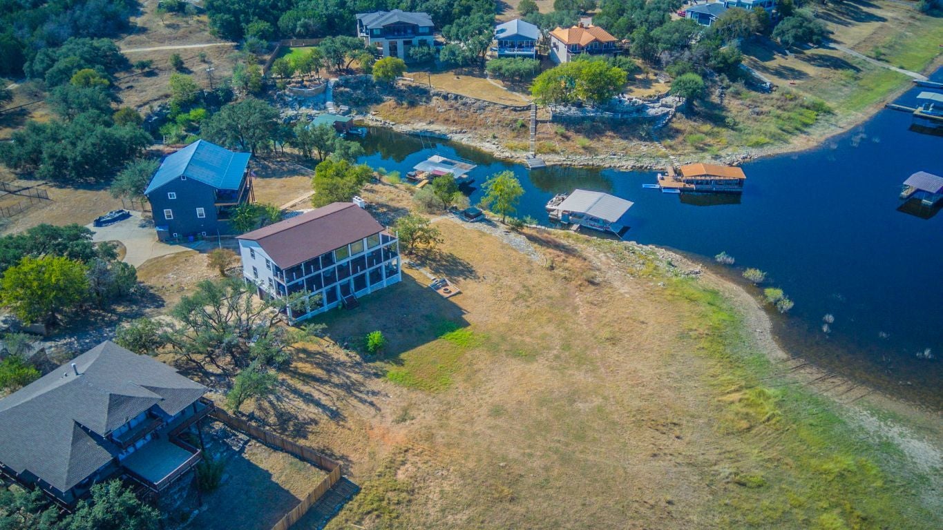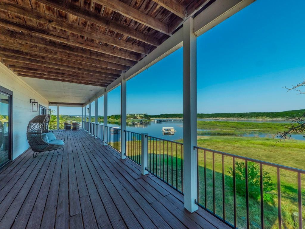 Discover your deepwater lakefront home located in this private and secluded cul-de-sac in Lago Vista, TX. The 4,087 sq. ft. residence boasts five spacious bedrooms and three luxurious bathrooms, with additional half baths perfect for accommodating family and guests. The open floor plan is designed to maximize comfort and functionality. The modern kitchen offers sleek countertops, a beverage & wine fridge, ice maker, over sized island, and ample cabinetry, making it a focal point for entertaining. Enjoy breathtaking views from the oversized windows in the dining area and cozy up in the inviting living room, complete with a fireplace for those cooler Texas evenings. This home also has an additional living room along with it's own dedicated fireplace. The home features an extra deep 2 car garage with a lockable storage area and full epoxy floor. The home also offers 2 seperate laundry connection locstions. The large bedrooms offer plenty of space and abundant natural light, providing a serene escape for relaxation. Each bathroom is a statement of sophistication with contemporary fixtures and premium materials. Step outside to a generous yard, ideal for playing or hosting gatherings with friends and family. The large covered balconies on all levels offer picturesque vistas overlooking the lake, the hill country, and across the lake the beautiful Pace Bend Park, were you'll never have development. Cozy up in the cool evenings to the built in limestone fire pit, or relax in the hot tub perched just above the deep water cove. The home comes with a large floating dock with 2 boat slips and lifts, storage locker, and PWC lift. Located in a family-friendly community renowned for its excellent schools. The neighborhood provides a peaceful retreat whether you're lounging on the expansive decks or exploring the beautiful outdoors nearby, this property offers everything. The currrent lake level is 670 ft msl on 10-22, which leaves approx. 40 ft of water beneath the dock.