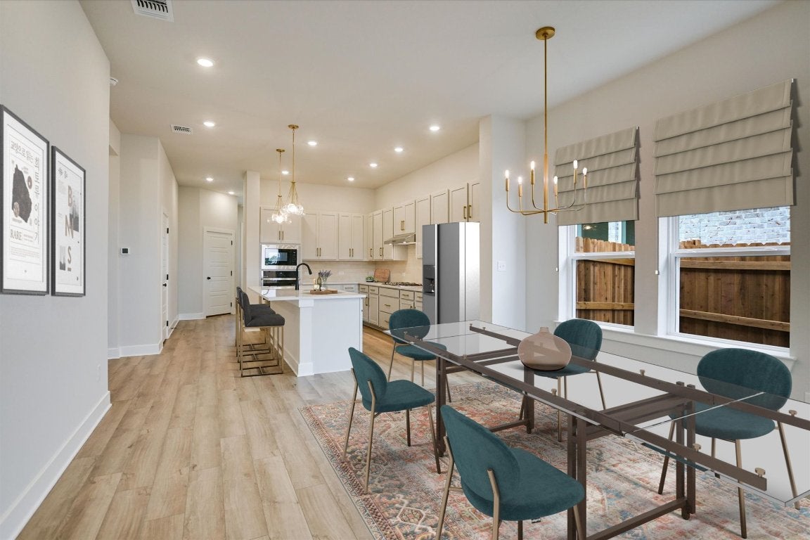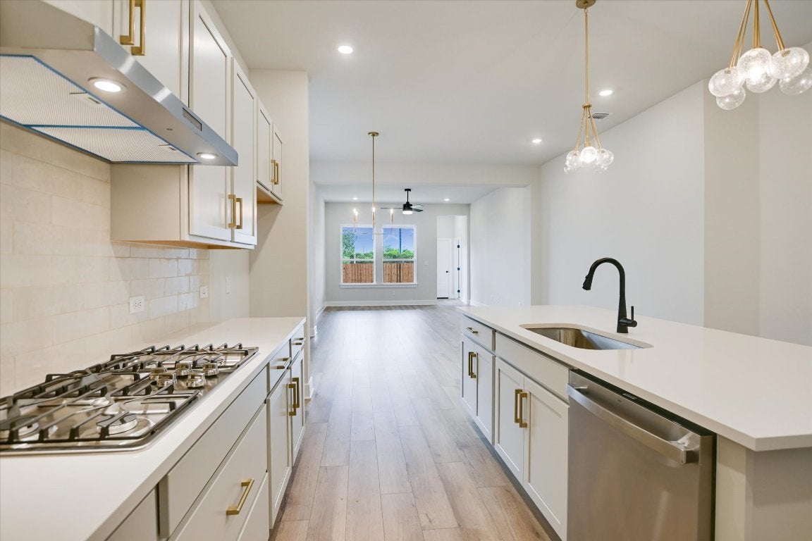 This beautiful one-story David Weekley Home in highly sought out Leander, Texas is designed for both comfort and style, featuring an open-concept layout that promotes seamless flow between living spaces. Large windows throughout the home allow for an abundance of natural light, creating a bright and airy atmosphere. At the heart of the home is a gourmet kitchen, complete with sleek quartz countertops, upgraded cabinetry, and high-end appliances—perfect for cooking enthusiasts and entertainers alike. The spacious island provides additional prep space and seating, making it an ideal gathering spot. The owner’s suite boasts a generous bedroom and a spa-like bathroom with a large, super shower. Thoughtful design touches enhance relaxation and functionality, offering a perfect place to unwind. Outside, the easy-to-maintain yard provides a charming space for outdoor enjoyment without the hassle of extensive upkeep. Whether hosting guests or enjoying a quiet evening, this home is designed for effortless living. Contact David Weekley's South Brook Team to find out more about this amazing home! Our EnergySaver™ Homes offer peace of mind knowing your new home in Leander is minimizing your environmental footprint while saving energy. Square Footage is an estimate only; actual construction may vary.