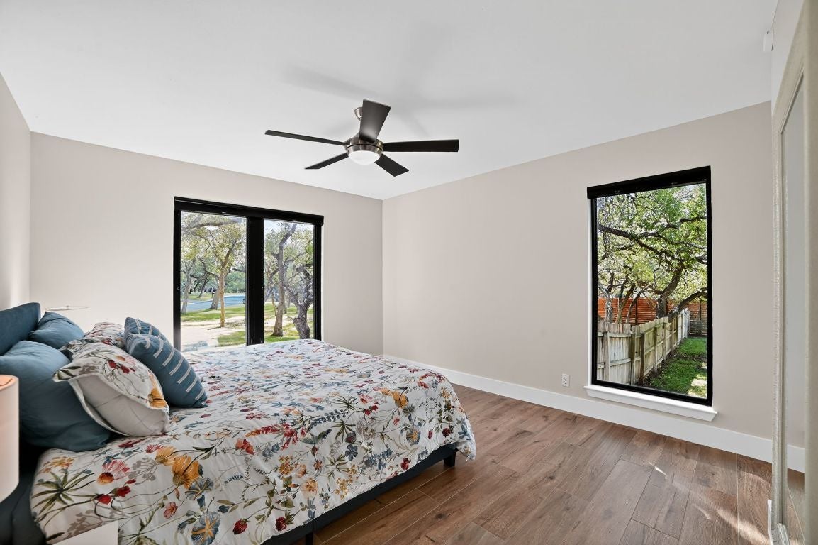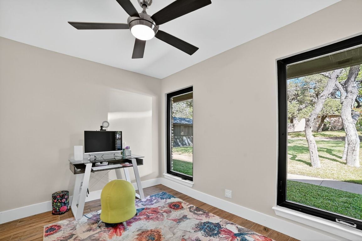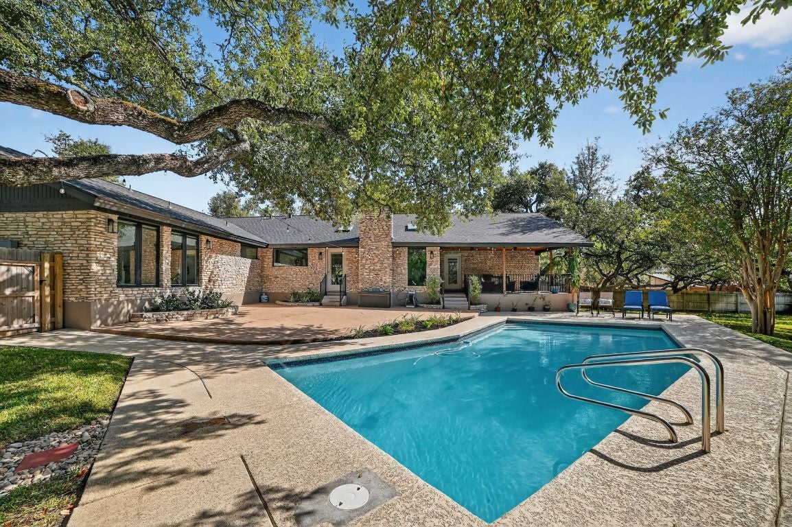 Discover exceptional craftsmanship and thoughtful updates throughout this beautifully refined 4-bedroom, 4-bathroom plus 2 half-bath home on an expansive .86-acre lot filled with mature oaks. The timeless design includes a dedicated office, a walk-in pantry with sink and quartz counters, an oversized laundry room with sink and folding area, a mud bench with built-in electrical, and abundant storage. The open floorplan offers ideal separation, with two secondary bedrooms and baths on one side and the guest suite, primary suite, office, and laundry on the other. Extensive updates include casement and picture windows, HVAC systems, water heaters, appliances, cabinetry, flooring, countertops, doors, fixtures, landscaping, and a quartz-finished pool surface. Enjoy a covered patio overlooking the sparkling pool and a large private yard—perfect for outdoor living year-round. The property uses a private well for irrigation and exterior spigots, with city water and sewer serving all interior plumbing. Zoned to top-rated Spicewood Elementary, Canyon Vista Middle School, and Westwood High School. Conveniently located just 20 minutes from The Domain and under 30 minutes to ABIA. Large lots like this rarely become available in this neighborhood—this one is truly move-in ready.