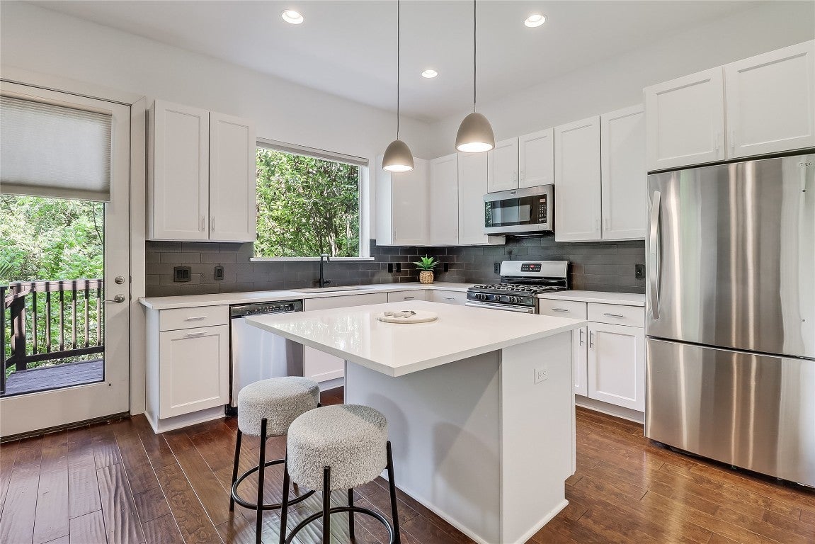 ****SPECIAL FINANCING 0% DOWN W/NO PMI ON A LOW 30 YEAR FIXED RATE**** check doc attached Nestled minutes from the vibrant downtown Austin, 4612 Windy Brook Drive, Unit A, awaits a residence that seamlessly blends sophisticated design with contemporary ease. This beautifully appointed 1,545 sq ft home boasts 3 spacious bedrooms and 2.5 luxurious bathrooms, each adorned with quartz countertops. The remodeled kitchen features a stunning quartz countertop, custom island, provides both functionality and a gathering space, complemented by bespoke cabinetry that offers ample storage and enhances the kitchen's aesthetic appeal. Throughout the home, rich hardwood floors create an inviting ambiance, while soaring high ceilings amplify the sense of spaciousness and light. Step outside onto your private deck and be captivated by the serene views of the peaceful creek, offering a tranquil backdrop for relaxation, privacy and outdoor enjoyment. This exceptional property is further enhanced by modern conveniences, including efficient central air conditioning, a tankless heater and a new roof. 4612 Windy Brook Drive, Unit A, is more than just a home; it's an invitation to embrace a life of elegance and modern comfort in one of Austin's most desirable locations, close to restaurants, shops and the amazing downtown nightlife, Lady Bird Lake and a vibrant city life.