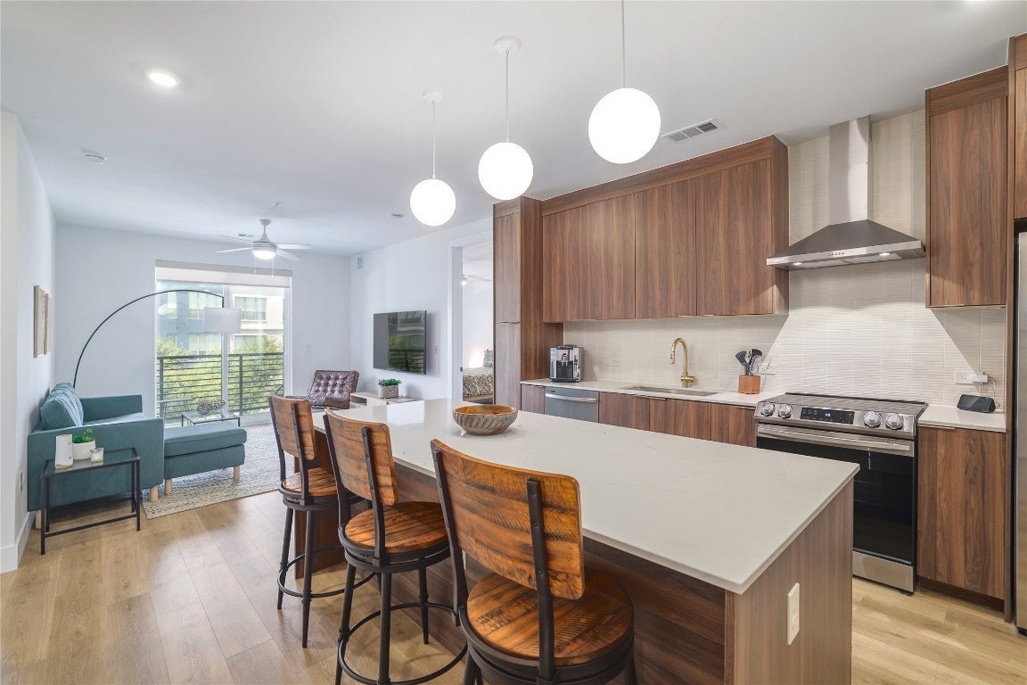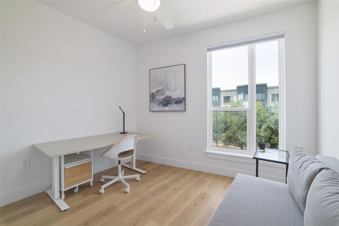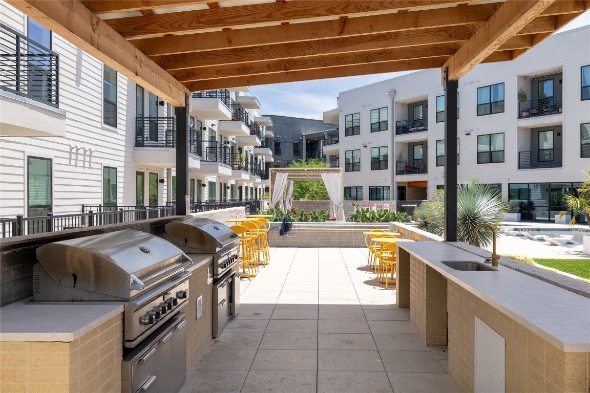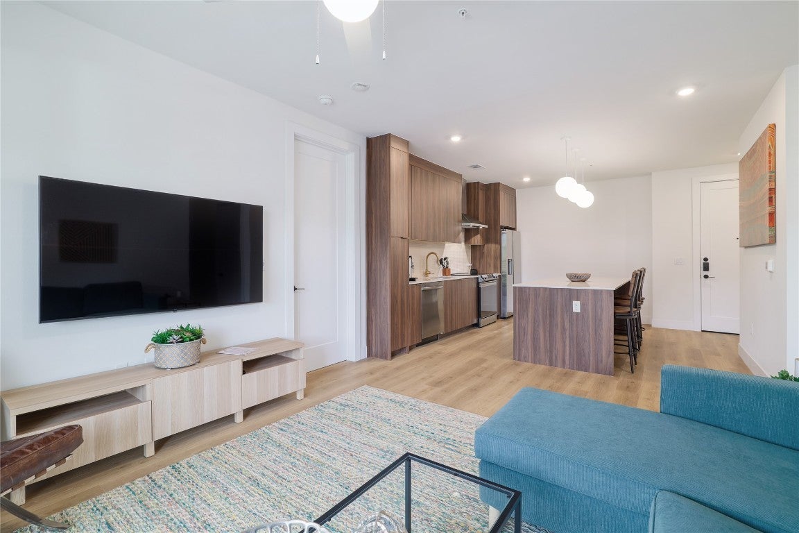 Stylish and modern 2BD/2BA condo in the coveted Parkside Mueller Residences, perfectly positioned in the vibrant Aldrich Street district and across from the scenic Mueller Lake Park. Experience the ease of low-maintenance living in one of Austin’s most sought after and walkable communities—just steps to green spaces, hike-and-bike trails, H-E-B, Alamo Drafthouse, local eateries, and the beloved weekly farmers market. This bright and airy unit features an open-concept floorplan with a beautifully appointed kitchen, complete with stainless steel appliances, sleek cabinetry, and an oversized island ideal for entertaining. Thoughtfully designed with privacy in mind, the bedrooms are situated on opposite sides of the home. The spacious primary suite includes dual vanities, a walk-in shower, and generous closet space. Enjoy your morning coffee or evening unwind on a private balcony with views of the community. Premium amenities include a resort-style pool with cabanas, rooftop deck with outdoor kitchen and downtown views, state-of-the-art fitness and cardio studios, co-working lounge, smart parcel lockers, and more. Unbeatable location—10 minutes to Downtown, 5 minutes to UT and major hospitals, and just 20 minutes to Austin-Bergstrom Airport.