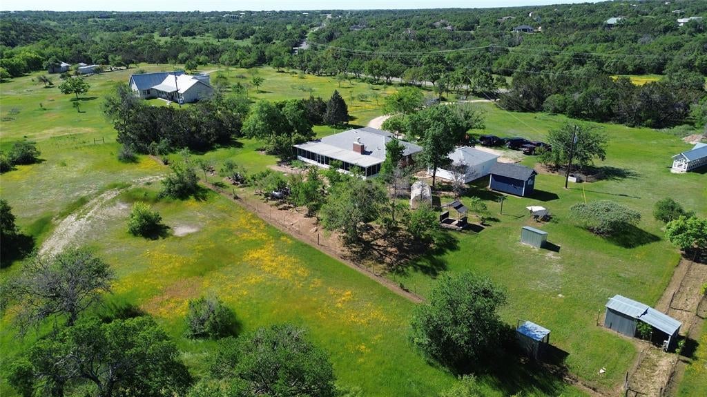 Horse enthusiasts and nature lovers alike will appreciate this rare 11-acre property in the heart of Driftwood, thoughtfully designed for both comfort and function. Fully fenced and cross-fenced, the land features a 4-stall barn with tack room, ample pasture space, and accommodations for horses, chickens, or other livestock. The 3-bedroom, 2-bath mid-century home combines timeless charm with inviting details, including a cozy wood-burning fireplace, vintage gas enamel stove in the galley kitchen, and tile floors throughout. A spacious 700 sq. ft. screened-in porch provides a front-row seat to Hill Country wildlife, from Whitetail deer to wild turkeys. Additional property highlights include a large detached garage, private gated driveway, and mature landscape offering both privacy and serenity. Whether you’re seeking a primary residence, weekend retreat, or equestrian haven, this property delivers a unique opportunity to enjoy the best of Hill Country living.