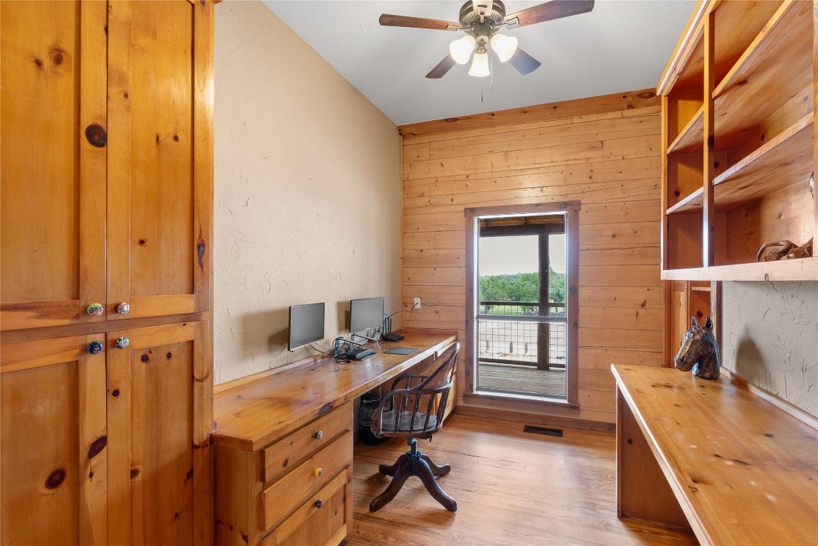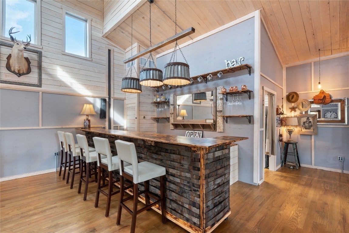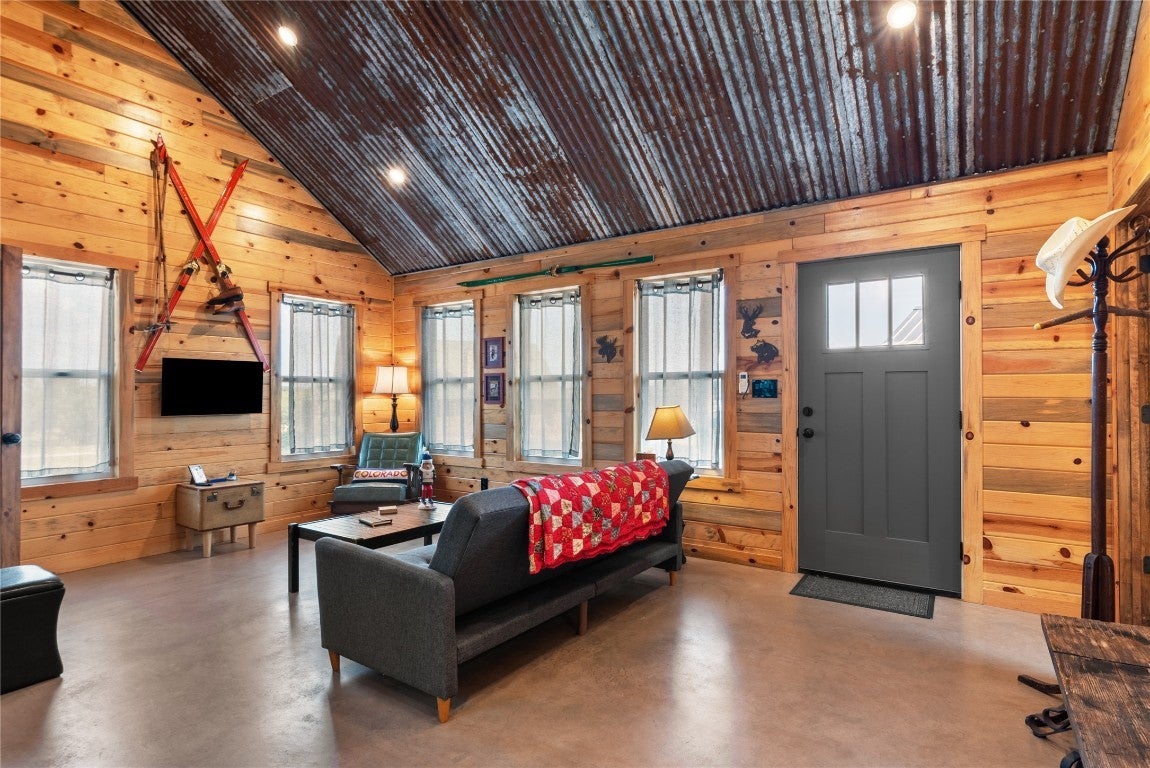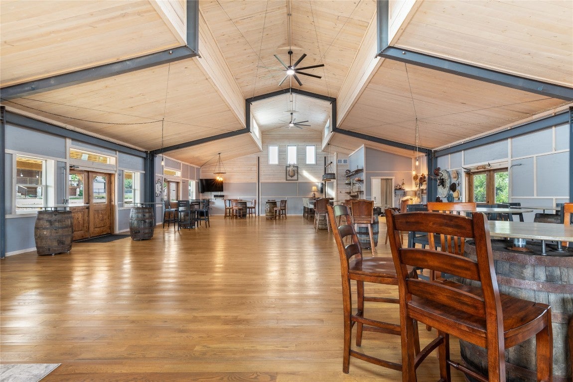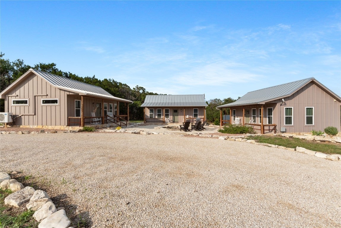 Rustx Ranch is a meticulously crafted estate situated on approximately 4.58 acres in the scenic Texas Hill Country. The main residence is a 3-bedroom, 2.5-bath log home constructed in 2001 using aromatic mountain cedar and Engelmann spruce logs. It features vaulted ceilings, a dry-stack fireplace by Lupe Cisneros, hand-rubbed pecan cabinets, stainless steel countertops, and a gas cooktop. The home also boasts a wraparound porch, a screened back porch, and plenty of space for parking. The property includes apple, pear, peach, and fig trees, along with three grape arbors, enhancing its rustic charm . In addition to the main house, the estate offers nine uniquely themed 2-bedroom, 1-bath cottages, each approximately 561 sq. ft., completed in 2021. These cottages combine rustic aesthetics with modern comforts, providing privacy and tranquility for guests . At the heart of the property is "The Gathering Place," a 2,400 sq. ft. event center equipped with indoor and covered outdoor spaces, suitable for various events such as weddings, corporate retreats, and family reunions. A newly installed pickleball court adds a recreational feature for guests .