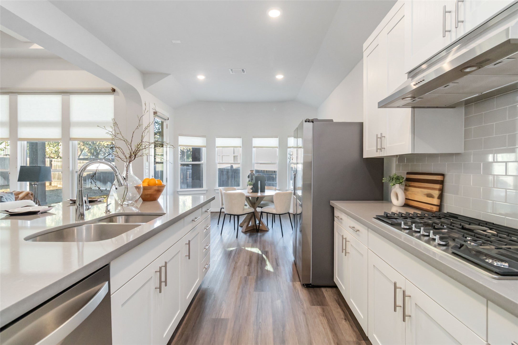 Built-In Gas Oven, Built-In Gas Range, Dryer, Dishwasher, Exhaust Fan, Gas Cooktop, Disposal, Gas Range, Gas Water Heater, Ice Maker, Microwave, Plumbed For Ice Maker, Refrigerator, Range Hood, Self Cleaning Oven, Stainless Steel Appliance(s), Vented Exhaust Fan, Washer, Gas Oven