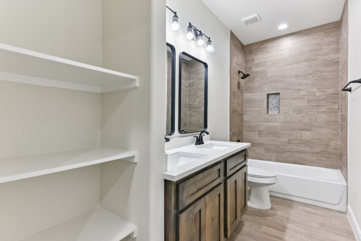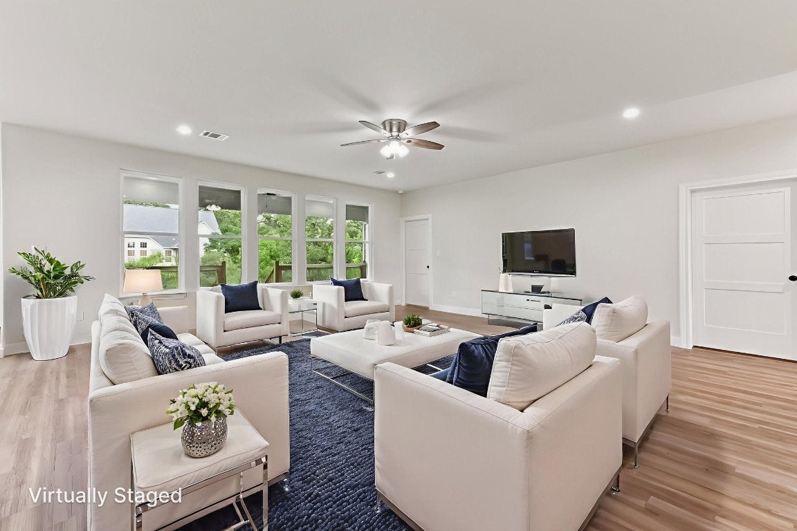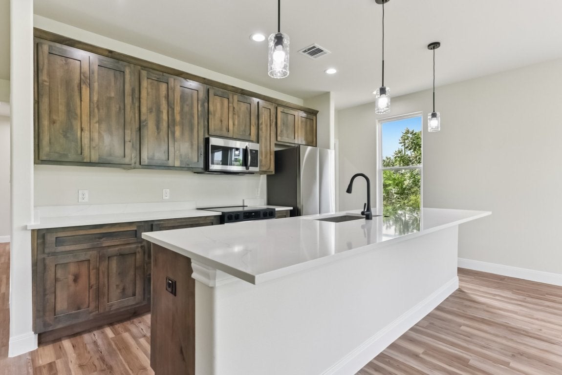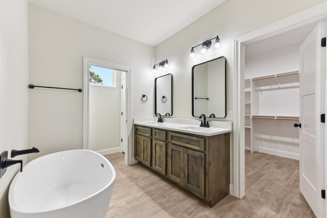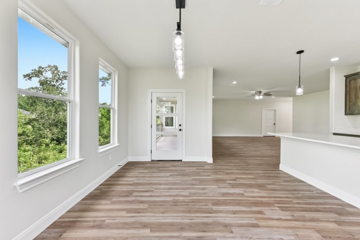 Experience Bastrop’s rolling hills of Tahitian Village located in the heart of the Lost Pines with walking trails, Pine Forest Golf Club, and access to the Colorado River! No waiting for completion & you’ll be the first owner in your striking new home created by Bastrop’s premier builder--Pine River Fine Homes. Located on .24 of an acre, this carefully imagined 2221 sf. open floor plan provides exciting views with plenty of space and flexibility for all families and is a must see! 4 bedrooms, 2.5 bathrooms, 10’ ceilings, luxury vinyl flooring throughout (no carpet) plus extra windows to enhance the open living area. Don’t need 4 bedrooms? Flexibility in your new home is key, so you choose! Use one bedroom for your new home office. This designer kitchen with an island and open dining area includes a full suite of Samsung stainless-steel appliances, matching sink, beautiful quartz countertops, and an extra-large butler pantry. Custom-designed primary bedroom suite features beautiful windows, recessed lighting, walk in shower, dual quartz vanities, soaking tub, private water closet, plus a huge (8x12) walk-in closet with plenty of built-in storage. Secondary bath also has dual vanities plus a bonus additional half bath with easy access for the bedrooms and living area. Designed for high efficiency, this home is a “foam insulated envelope” with Hardi siding, 30-year architectural shingles, and 2-car insulated garage! Includes a whole house hot water circulation pump, 14 seer Heat pump, Low-E windows, and a transferable home warranty. The back yard extends well beyond the sodded area with additional space for future expansion. Home is on sewer and located in Bastrop City limits. No annual HOA dues. $204 annual road fee to BCWCID #2 water district. See MLS docs for more information. All information deemed reliable; buyer to verify. Book an appointment to view your new home today!
