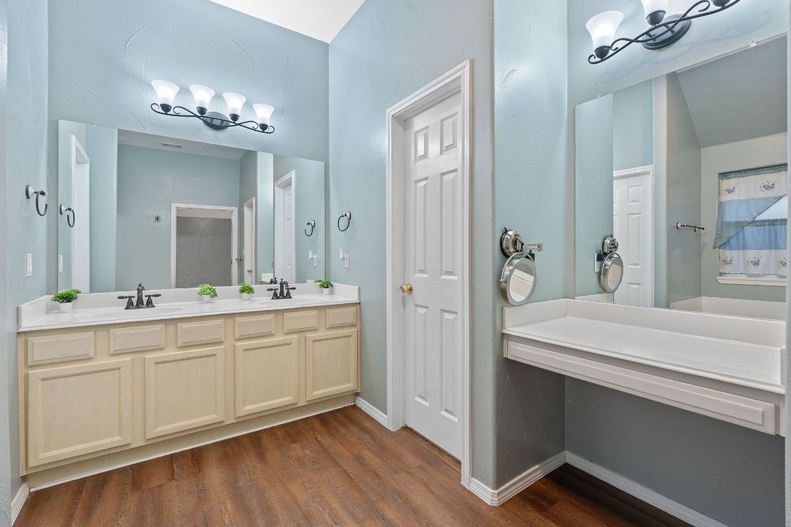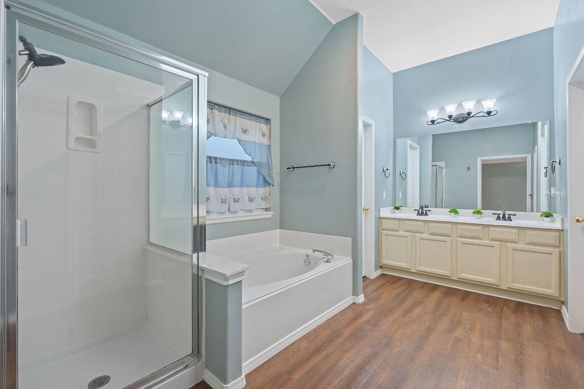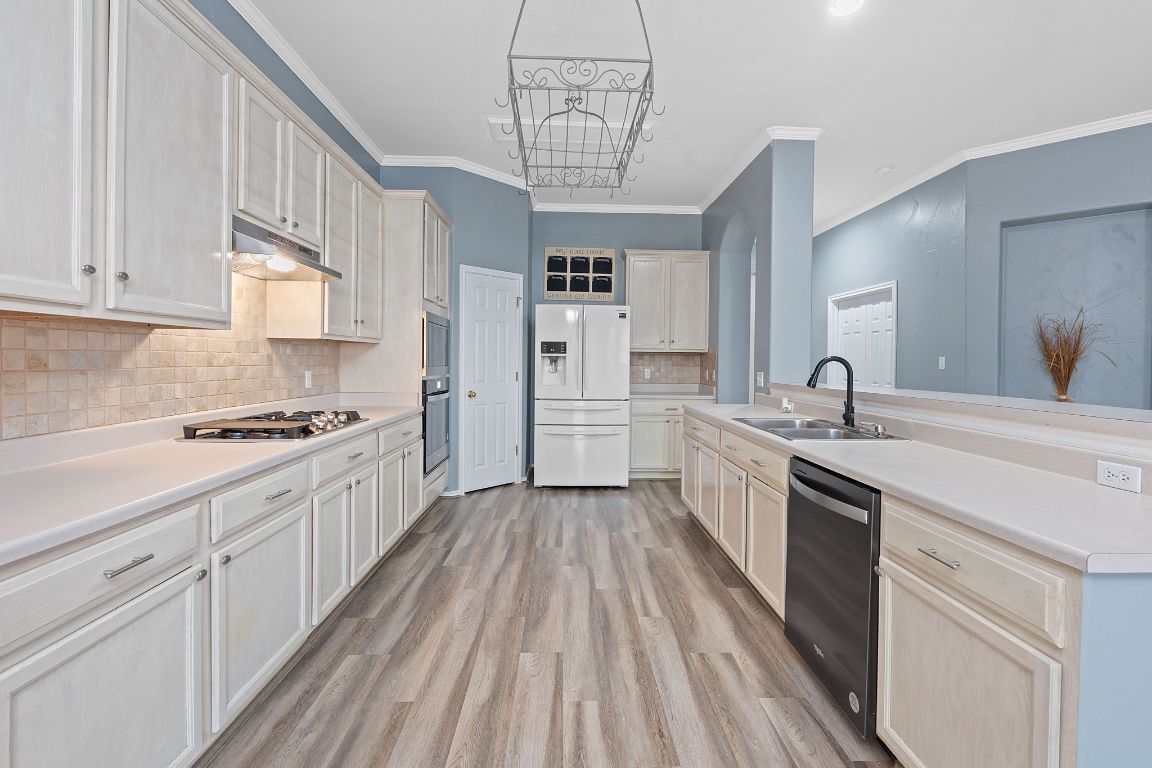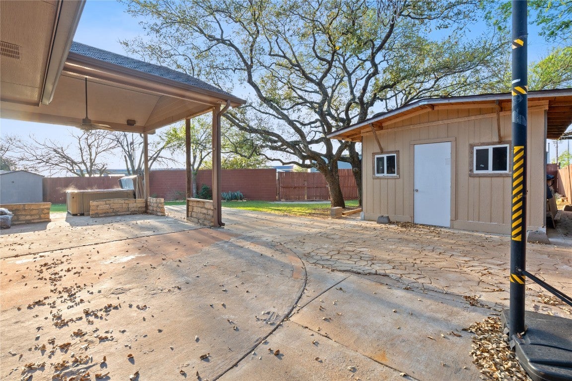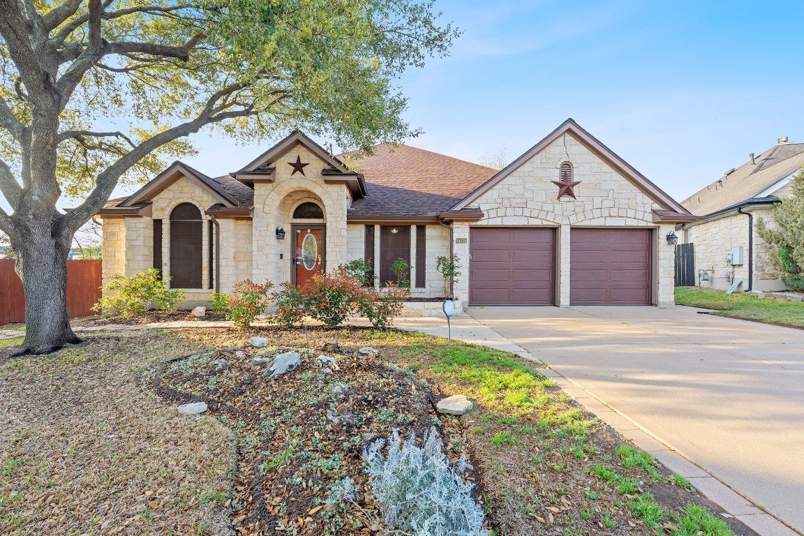 This beautiful north facing, stone home sits on an oversized lot in the desirable Woods of Brushy Creek community. The home has a great layout, with five bedrooms all on one level. Inside the front door, you’ll find formal living and formal dining room filled with natural light. At the rear, the open kitchen features beautiful appliances, a big pantry, a dining nook and a long breakfast bar. Standing at your kitchen sink, you overlook the family room, complete with a corner stone fireplace. The isolated primary bedroom has vaulted ceilings and back yard views. The ensuite boasts two generous walk-in closets, along with dual sinks, a bonus makeup vanity, a soaking tub and a walk-in glass shower. The guest rooms at the front of the floorplan share the large hallway bathroom with a double vanity. Don’t forget about the dedicated office with double doors, which could also serve as a fifth bedroom. This property is situated on one of the largest lot in the community. In the back yard, you can enjoy dinner on the large covered patio, or relax after work in the hot tub or the pool. The rest of the fenced-in yard includes three storage sheds, a big workshop (240W outlets), mature trees and plenty of lawn for games or a garden. The garage has extra space for storage and don’t forget about the surround-sound speakers, niches, architectural archways & all the closet space. This home is zoned to excellent schools including Great Oaks Elementary, Cedar Valley MS and Round Rock HS. Exceptional parks and community center less than a mile from your house. You’ll be close to the amenities offered at Brushy Creek Rec Center (additional fee), numerous shopping & dining options along FM620, and you can hop on I-35 in no time. The tech corridor is an easy 10-min drive and downtown Austin & Lake Travis are within 25 minutes of your front door.
