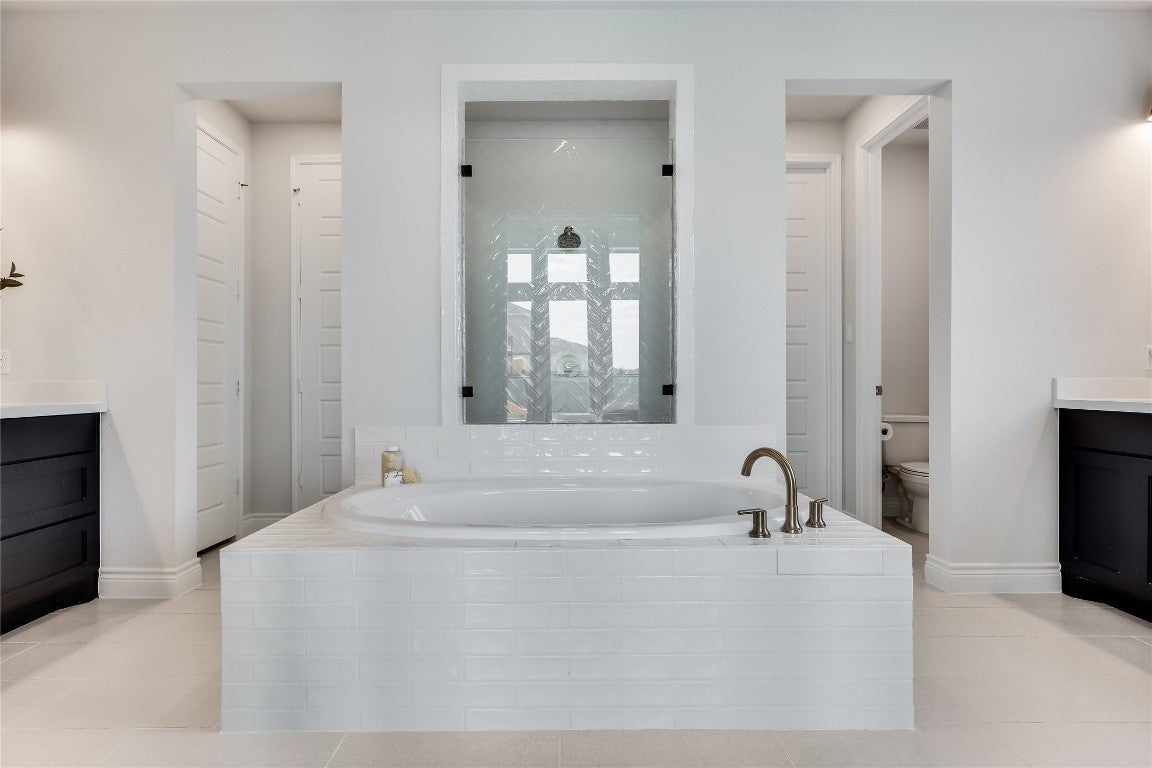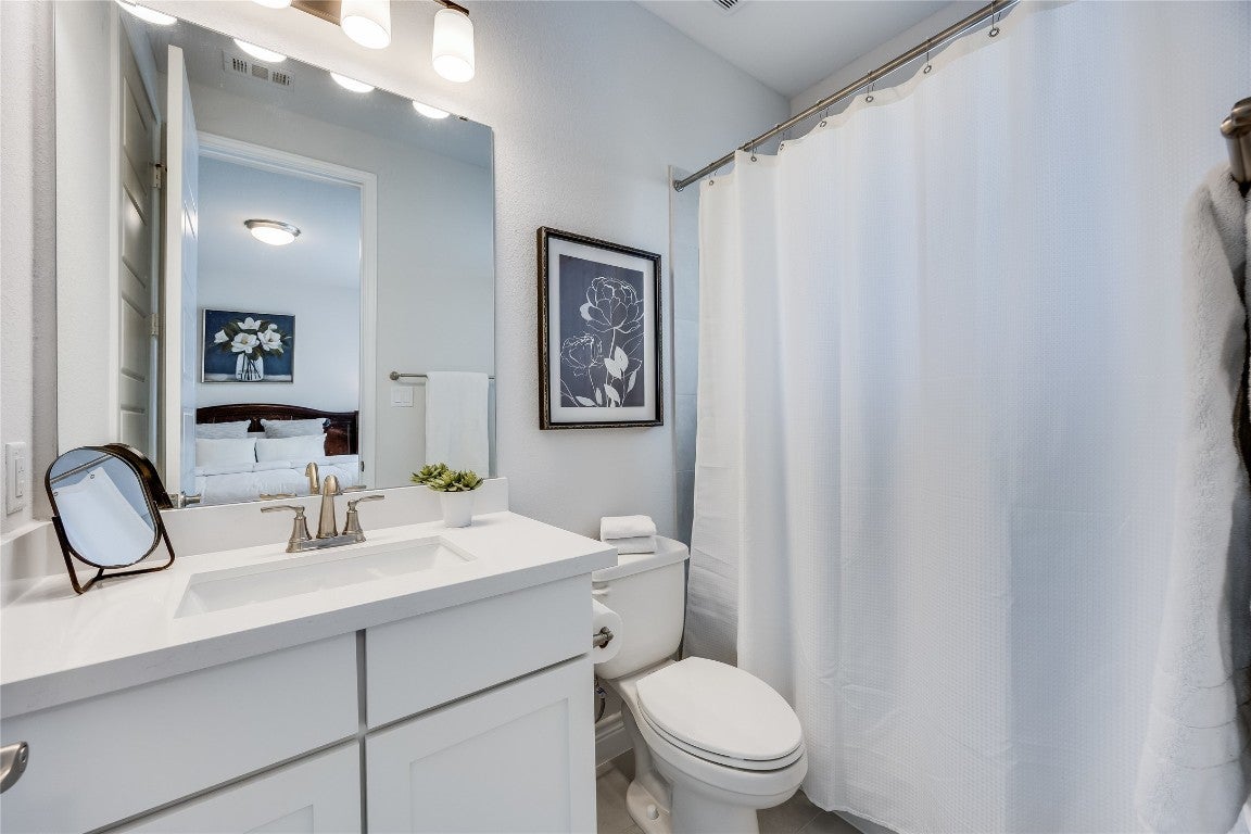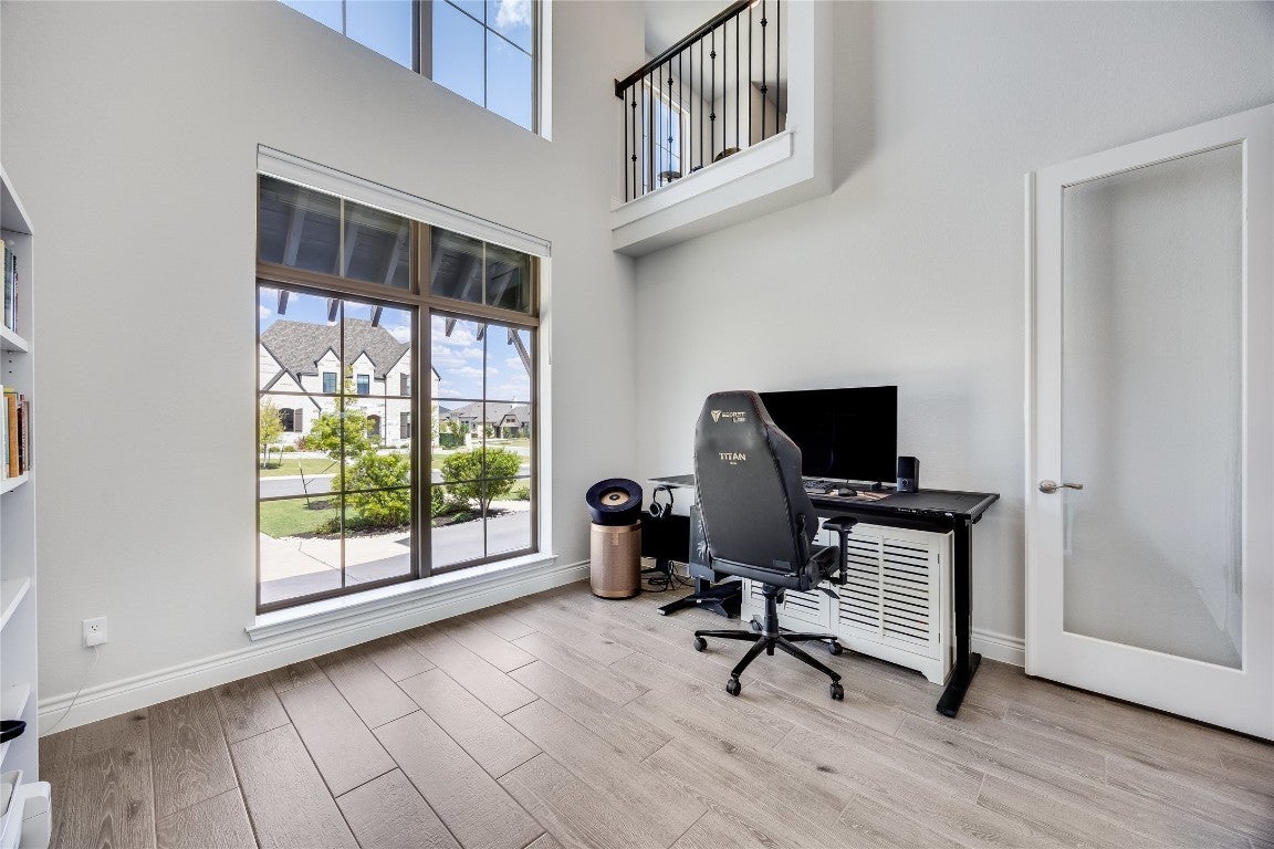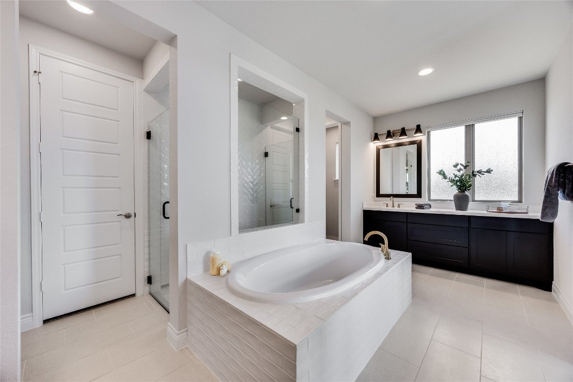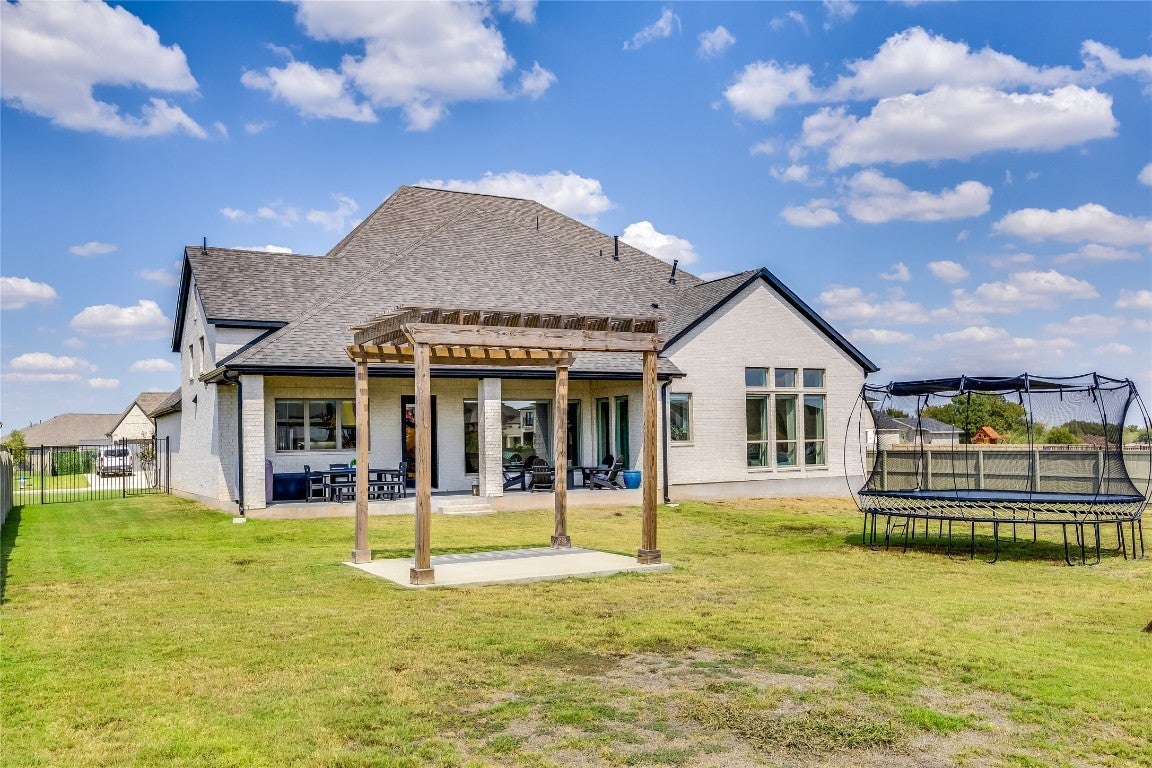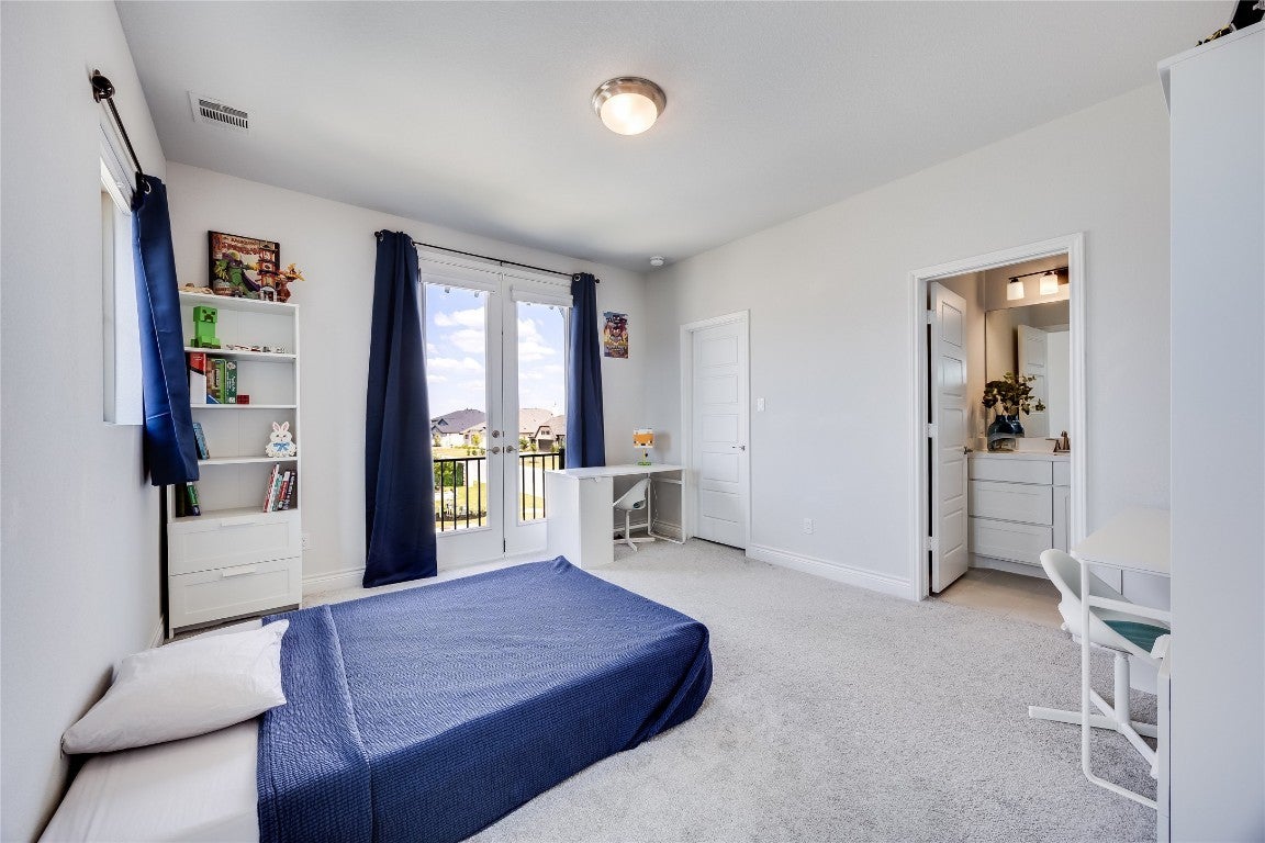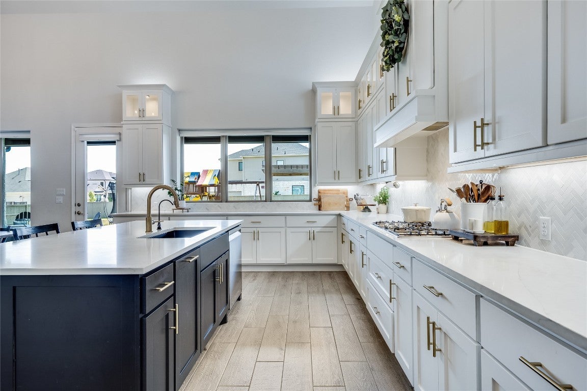 Built by Perry Homes, this beautifully designed executive home is situated on a large corner lot. Step into the grand two-story entry which leads to the open-concept living area. The living, kitchen, and dining areas have soaring ceilings with windows all across the back, allowing light to fill the space. The expansive kitchen features a large island, tall cabinetry, 5-burner gas cooktop, walk-in pantry, and butler’s pantry, making cooking and entertaining effortless. The secluded primary suite offers a serene retreat with a spa-like bath featuring separate vanities, garden tub, glass-enclosed shower, and two spacious walk-in closets, one of which is connected directly to the laundry room. Also on the main floor is a private guest suite with a full bath and walk-in closet that provides comfort and flexibility. Downstairs you will also find a dedicated office and flex room which can be used for formal dining, play room, or second home office. Upstairs, a generous game room anchors three additional bedrooms and two full baths. Enjoy the outdoors with an extended covered patio, added pergola for shade, and a fully fenced yard ideal for kids, pets, or gatherings. Upgrades include a whole-home water filtration system with reverse osmosis and water softener, professionally epoxied floors in 3-car garage, and window treatments throughout. Built in 2023, this home is as efficient as it is elegant, with a 2-year old roof and systems. Located within walking distance of a brand-new elementary school and surrounded by community amenities including three resort-style pools, splash pads, and food truck Fridays, this home perfectly blends luxury, livability, and vibrant Texas charm in the #1 master-planned community in the Austin area.