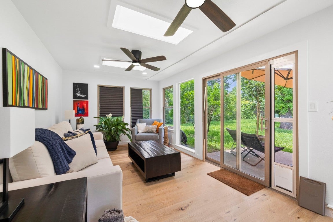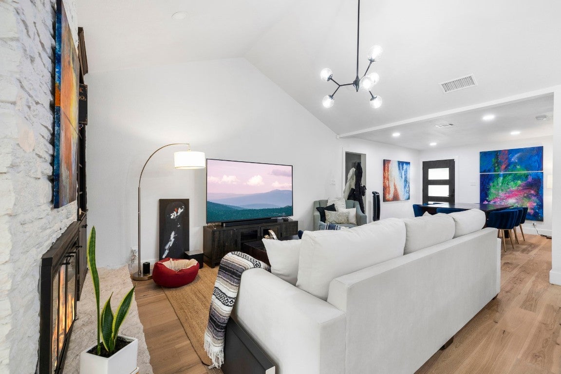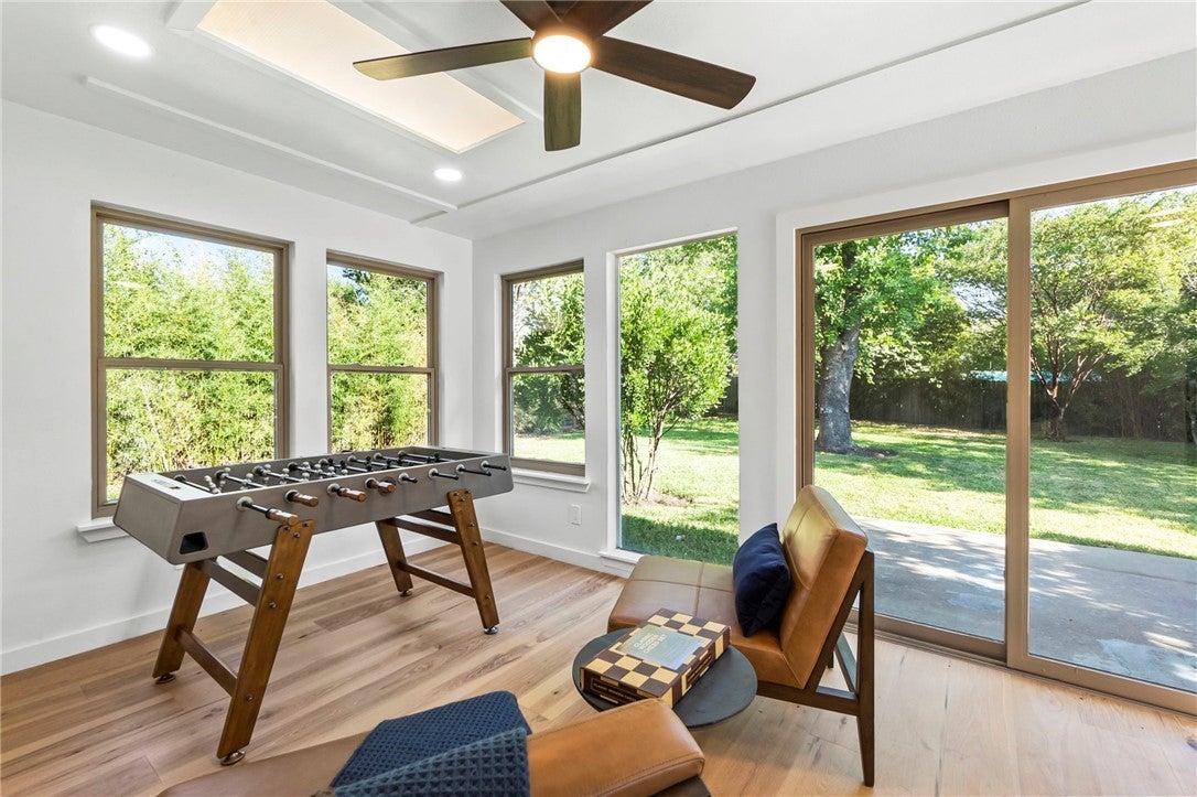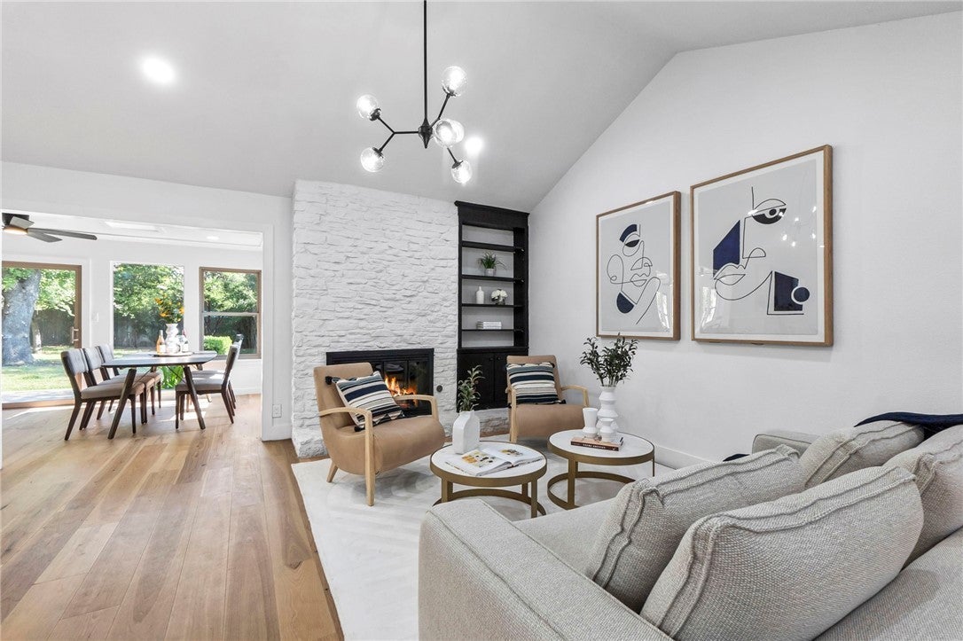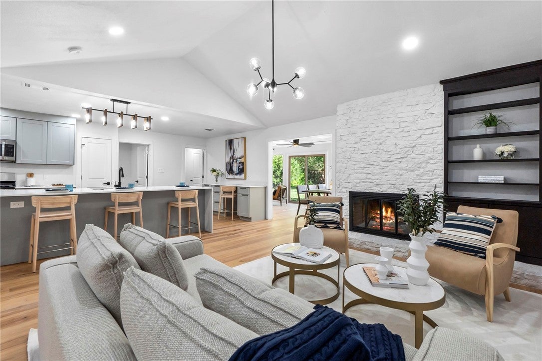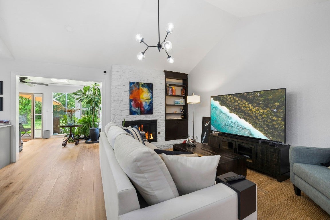 BRAND NEW ROOF! Gorgeous Remodel Near The Domain – Perfect for Family living & generate more income with STR! This stunning, single-story home is sitting pretty on a huge .269-acre lot with beautiful landscaping and mature trees. With a mix of painted stone and Hardi-plank on the outside, it’s got a fresh, modern look that’ll totally wow you. Step through the sleek glass front door and get ready to fall in love! Inside, you’ll find bright, open spaces with light oak wood floors and a soft, neutral color palette. The floor-to-ceiling stone fireplace and custom-built tin bookcase bring all the cool vibes. The kitchen? It’s a showstopper with its sleek grey cabinetry, a massive center island with waterfall quartz countertops and a breakfast bar that’s begging for morning coffee. Plus, you’ve got high-end stainless steel appliances, including a freestanding gas range—perfect for whipping up your favorite meals. Need a little quiet time? There’s a cozy den tucked away off the main living area, with tons of natural light pouring in from the big windows. Plus, the sliding glass doors open up to your very own backyard oasis—hello, relaxation! The primary suite is pure luxury with wood floors, a walk-in closet, and an ensuite bath with quartz double vanity, backlit mirrors, and an oversized walk-in shower with frameless glass. There's also a second en-suite bedroom that could easily be another primary, plus three more bedrooms that are perfect for a home office or whatever your heart desires, and a guest bathroom. Step outside, and you’ve got a big backyard with a sprinkler system and lush landscaping. The spacious patio is perfect for chilling out or hosting your next BBQ. BRAND NEW 10x14 STORAGE UNIT TO COVER YOUR STORAGE NEEDS! And did I mention the location? Minutes from the Soccer stadium, and all the shopping, dining, and fun at The Domain.