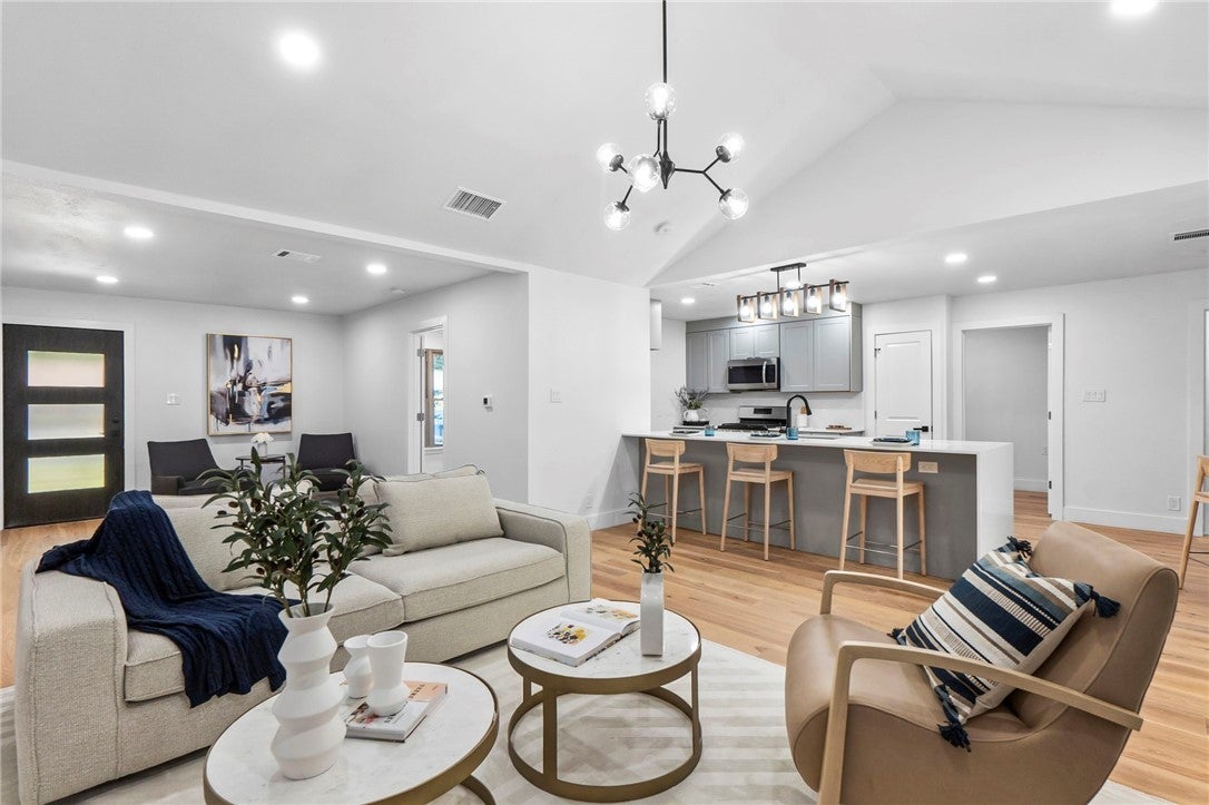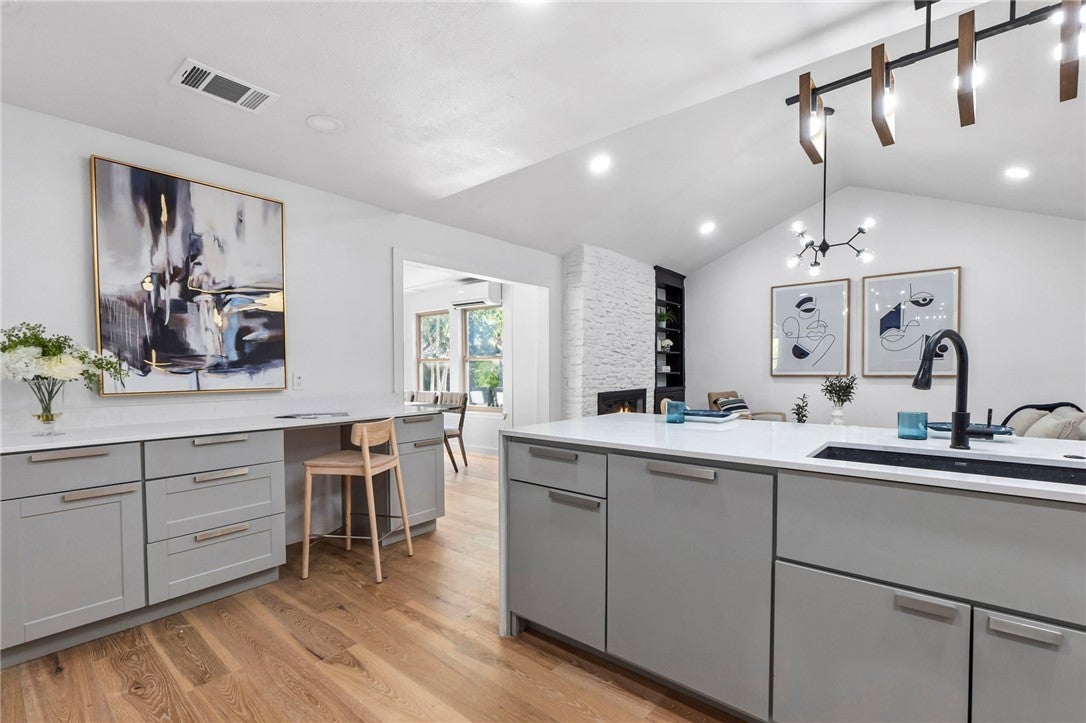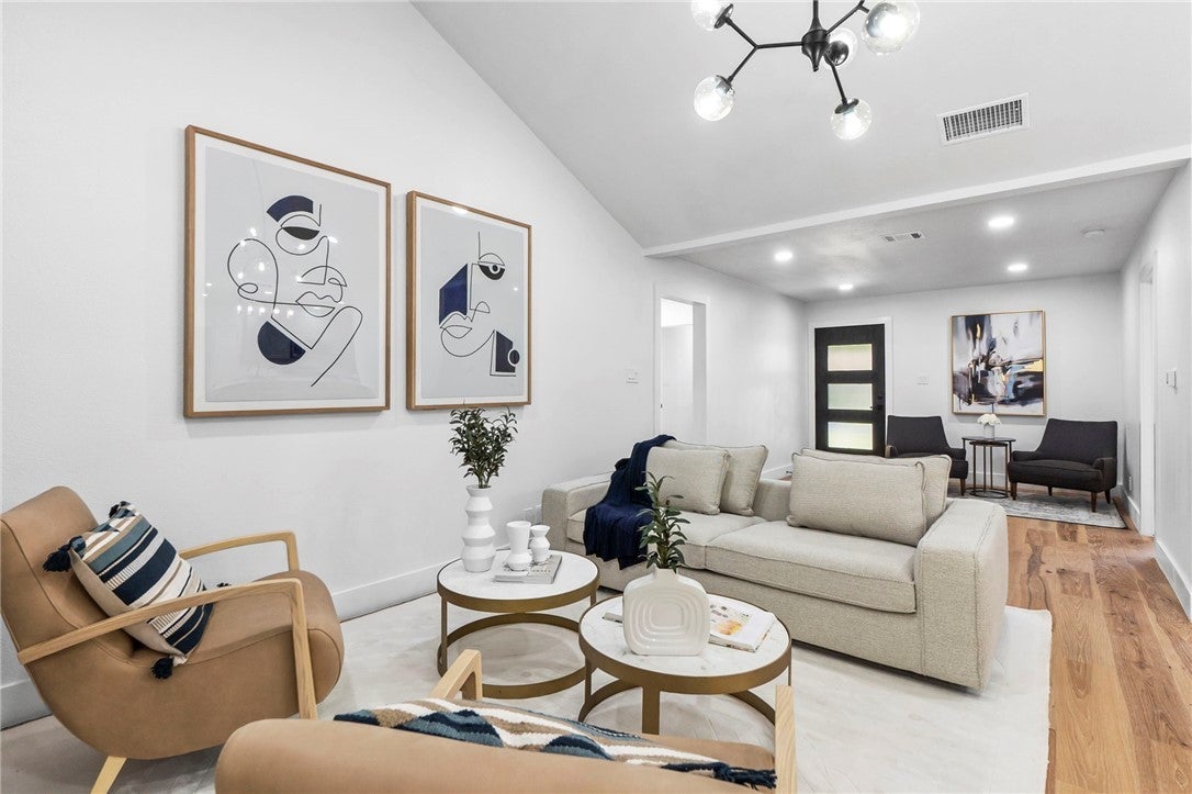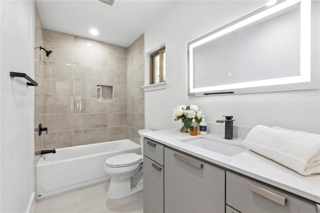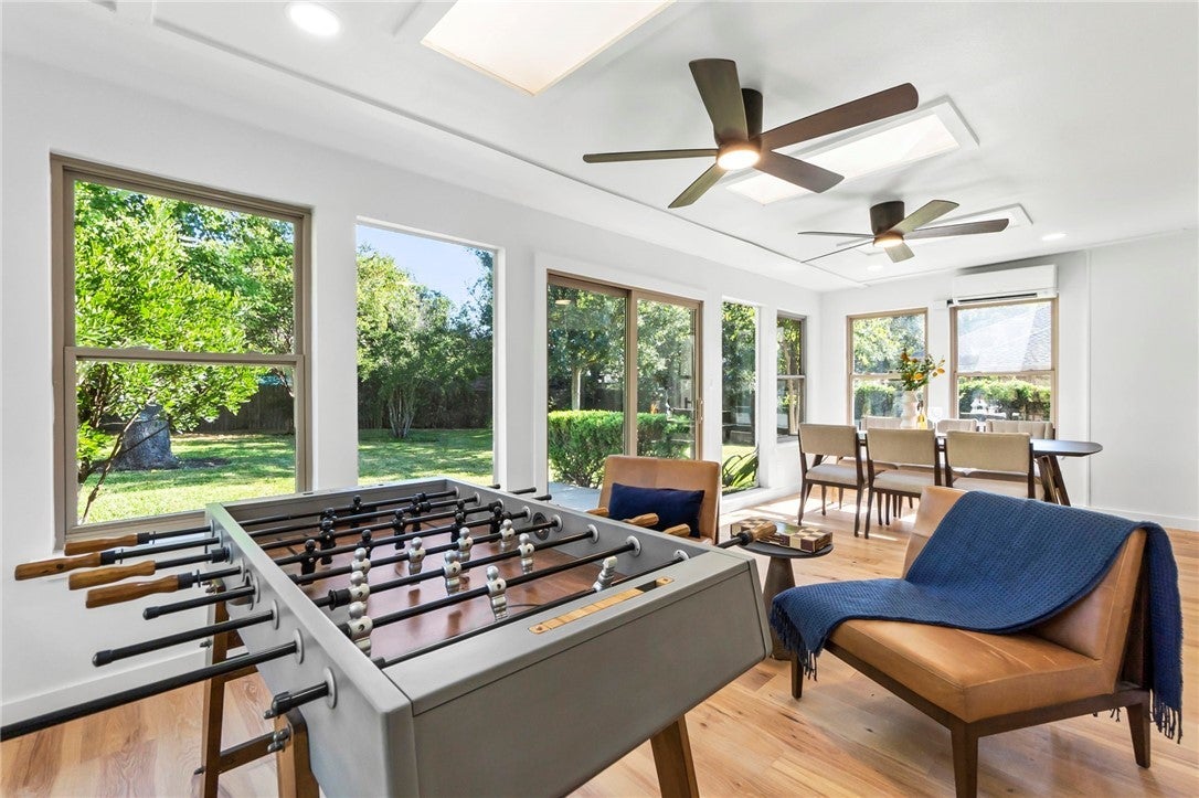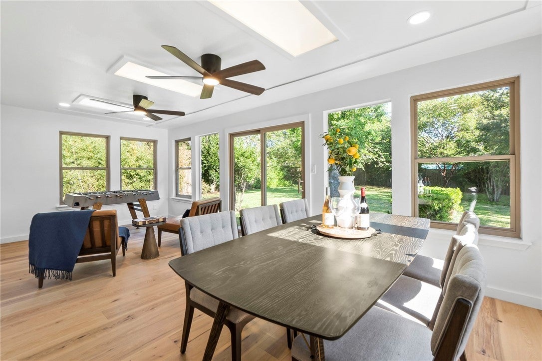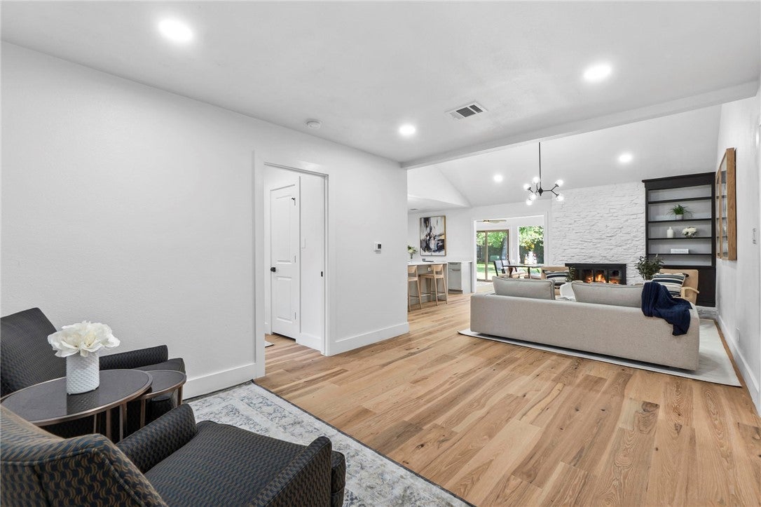 BRAND NEW ROOF! Gorgeous Remodel Near The Domain – Perfect for Family living & generate more income with STR! This stunning, single-story home is sitting pretty on a huge .269-acre lot with beautiful landscaping and mature trees. With a mix of painted stone and Hardi-plank on the outside, it’s got a fresh, modern look that’ll totally wow you. Step through the sleek glass front door and get ready to fall in love! Inside, you’ll find bright, open spaces with light oak wood floors and a soft, neutral color palette. The floor-to-ceiling stone fireplace and custom-built tin bookcase bring all the cool vibes. The kitchen? It’s a showstopper with its sleek grey cabinetry, a massive center island with waterfall quartz countertops and a breakfast bar that’s begging for morning coffee. Plus, you’ve got high-end stainless steel appliances, including a freestanding gas range—perfect for whipping up your favorite meals. Need a little quiet time? There’s a cozy den tucked away off the main living area, with tons of natural light pouring in from the big windows. Plus, the sliding glass doors open up to your very own backyard oasis—hello, relaxation! The primary suite is pure luxury with wood floors, a walk-in closet, and an ensuite bath with quartz double vanity, backlit mirrors, and an oversized walk-in shower with frameless glass. There's also a second en-suite bedroom that could easily be another primary, plus three more bedrooms that are perfect for a home office or whatever your heart desires, and a guest bathroom. Step outside, and you’ve got a big backyard with a sprinkler system and lush landscaping. The spacious patio is perfect for chilling out or hosting your next BBQ. BRAND NEW 10x14 STORAGE UNIT TO COVER YOUR STORAGE NEEDS! And did I mention the location? Minutes from the Soccer stadium, and all the shopping, dining, and fun at The Domain.