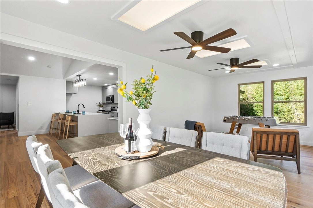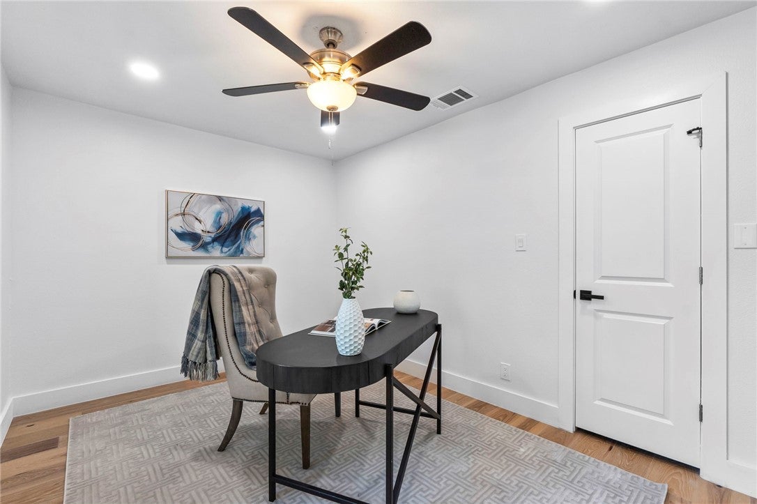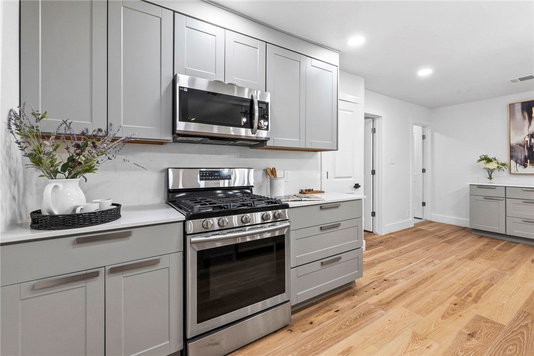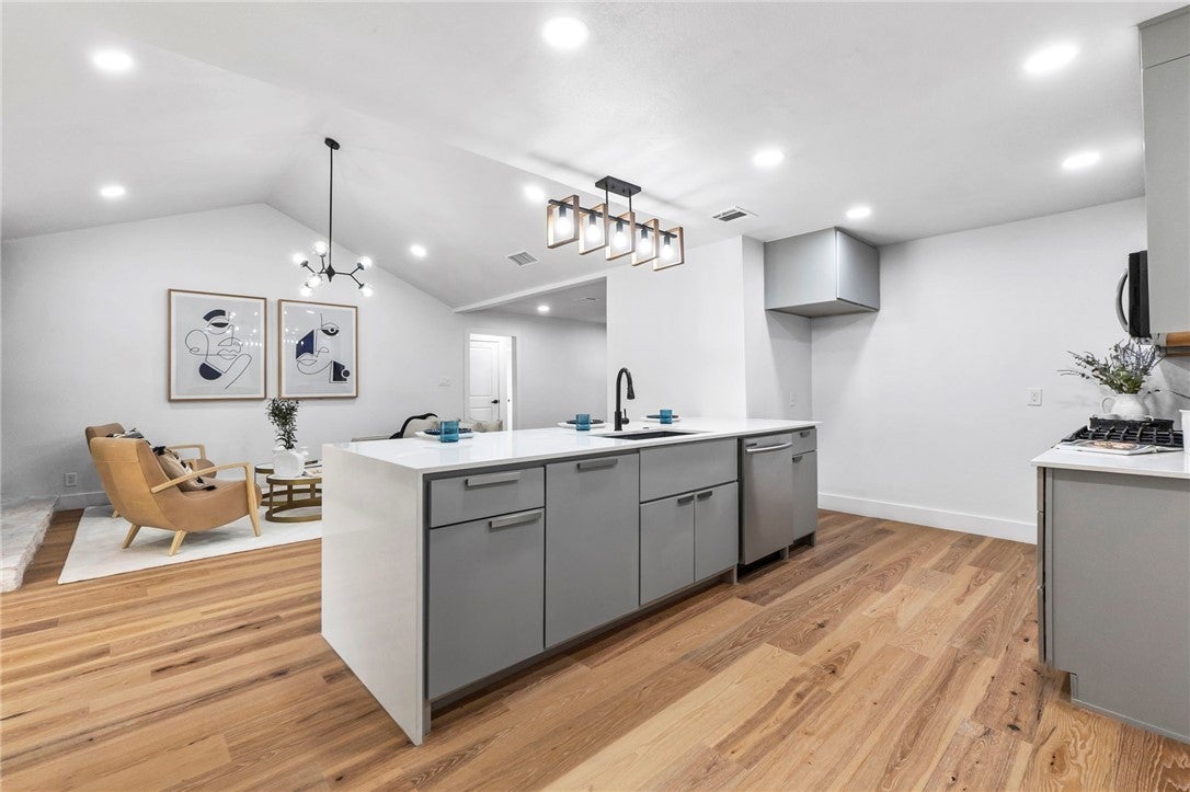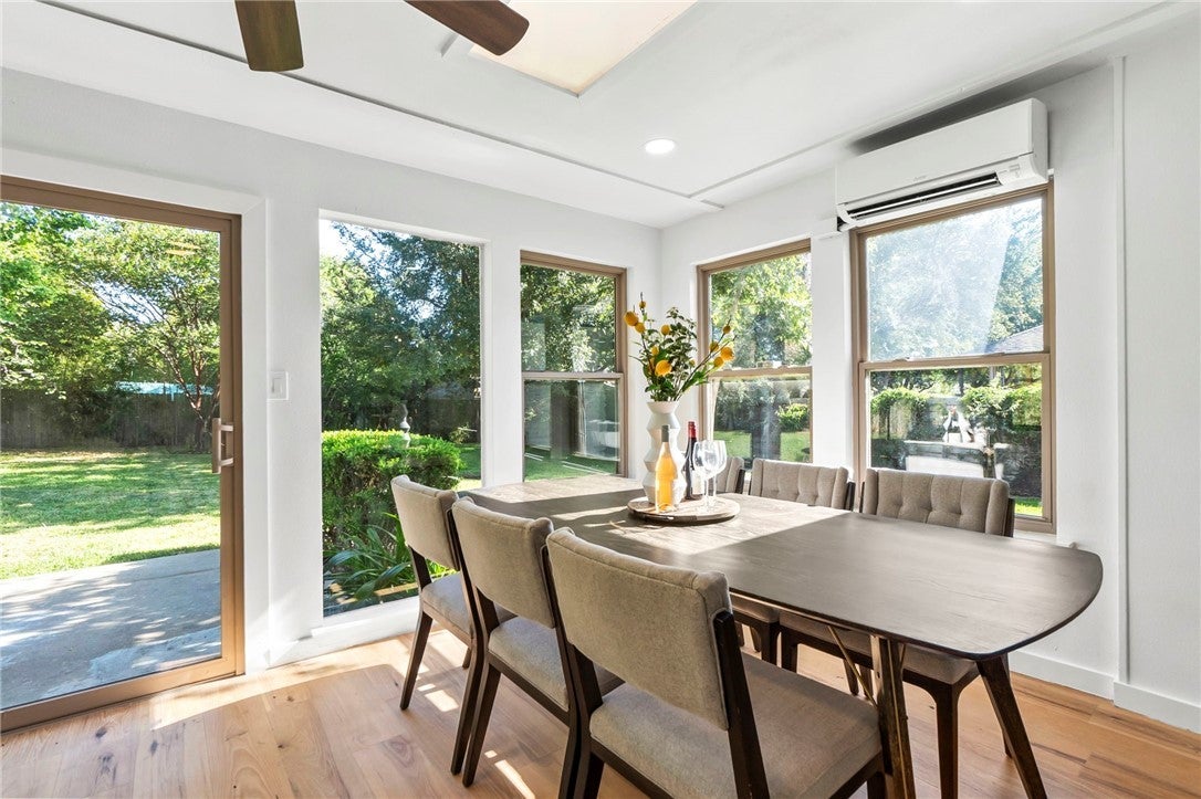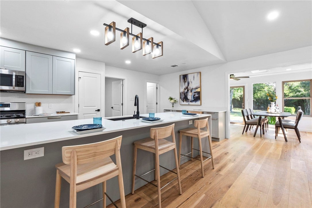 BRAND NEW ROOF! Gorgeous Remodel Near The Domain – Perfect for Family living & generate more income with STR! This stunning, single-story home is sitting pretty on a huge .269-acre lot with beautiful landscaping and mature trees. With a mix of painted stone and Hardi-plank on the outside, it’s got a fresh, modern look that’ll totally wow you. Step through the sleek glass front door and get ready to fall in love! Inside, you’ll find bright, open spaces with light oak wood floors and a soft, neutral color palette. The floor-to-ceiling stone fireplace and custom-built tin bookcase bring all the cool vibes. The kitchen? It’s a showstopper with its sleek grey cabinetry, a massive center island with waterfall quartz countertops and a breakfast bar that’s begging for morning coffee. Plus, you’ve got high-end stainless steel appliances, including a freestanding gas range—perfect for whipping up your favorite meals. Need a little quiet time? There’s a cozy den tucked away off the main living area, with tons of natural light pouring in from the big windows. Plus, the sliding glass doors open up to your very own backyard oasis—hello, relaxation! The primary suite is pure luxury with wood floors, a walk-in closet, and an ensuite bath with quartz double vanity, backlit mirrors, and an oversized walk-in shower with frameless glass. There's also a second en-suite bedroom that could easily be another primary, plus three more bedrooms that are perfect for a home office or whatever your heart desires, and a guest bathroom. Step outside, and you’ve got a big backyard with a sprinkler system and lush landscaping. The spacious patio is perfect for chilling out or hosting your next BBQ. BRAND NEW 10x14 STORAGE UNIT TO COVER YOUR STORAGE NEEDS! And did I mention the location? Minutes from the Soccer stadium, and all the shopping, dining, and fun at The Domain.