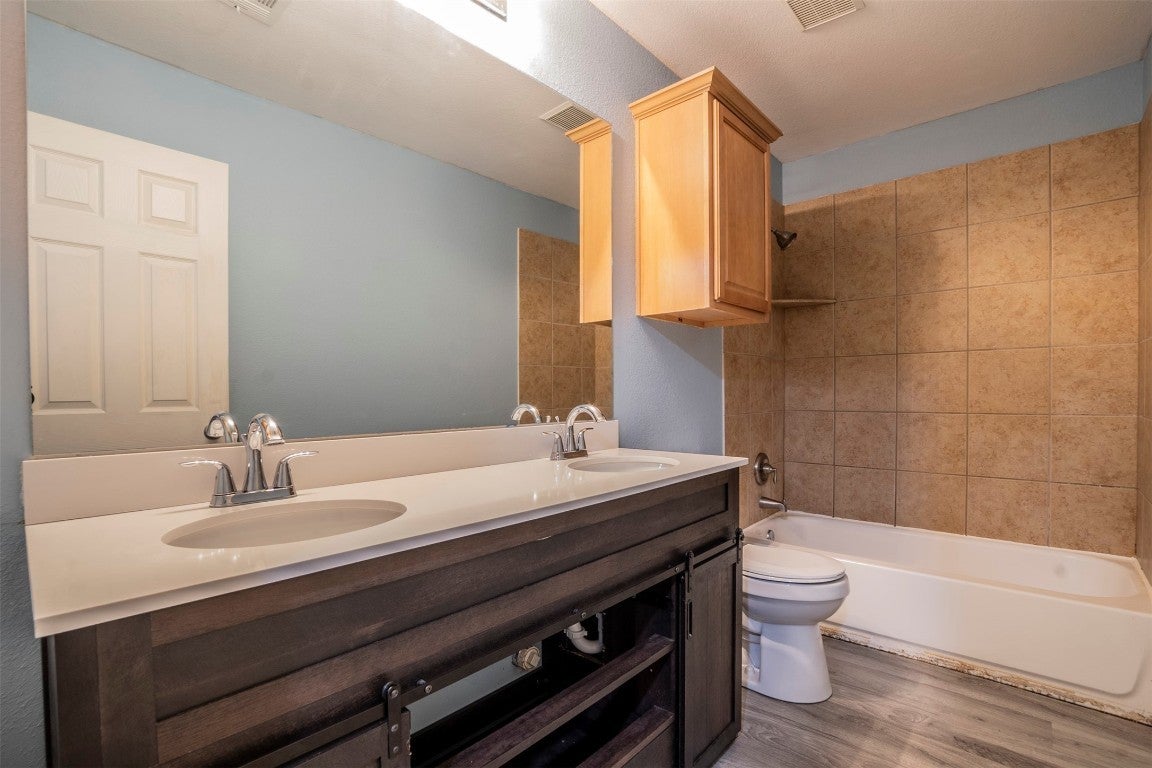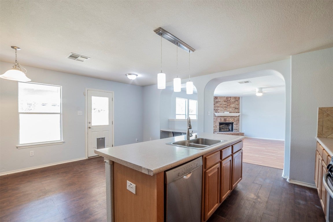 Welcome home to your quiet retreat and work from home! Fiber Internet! Cul de sac, vaulted ceilings, natural light, brick fireplace, home office! All bedrooms are upstairs. Romantic HUGE Master Bedroom. Ensuite Master bathroom with private commode. New shower with glass doors and Jetta 20 inch tub. Linen closet, mirrors, vanity with double sinks! Huge double walk-in closet. Ceiling fans. Truly a place to find rest and comfort. Three large bedrooms in hallway share updated full bath with shower, new double sinks vanity. Second master with ensuite full shower, tub, single sink vanity and walk in closet. Main floor has a Formal Dining, Family room and Office, powder room.. Gourmet kitchen, with center island, dining area, wood cabinets, gas stove, new over range microwave oven, new Samsung stainless steel refrigerator. Dishwasher, disposal, stainless steel deep double sinks. Built in desk to do homework while making dinner, Large walk in Pantry and Laundry room. large sink, lots of shelving. Bring your own washer and dryer. Outside Covered patio and spacious backyard with flower beds, wood privacy fence, concrete patio, and covered patio. New Water softener and whole house filter 2022 by Rainsoft. 50 Gallon LP Water Heater replaced May 2018 upstairs and replaced in 2022 downstairs. A home to relax and entertain inside and out! Solar screens. Work close to home! New Samsung complex 12 min, Hanwha plant 20 min. Austin 26 min. Entertainment: soccer fields, Dell Dimond, Kalahari world's largest waterpark 20 min. Many new stores, downtown Hutto events, bring your new Hutto HIPPO to your new HOME today! Family, community, home!