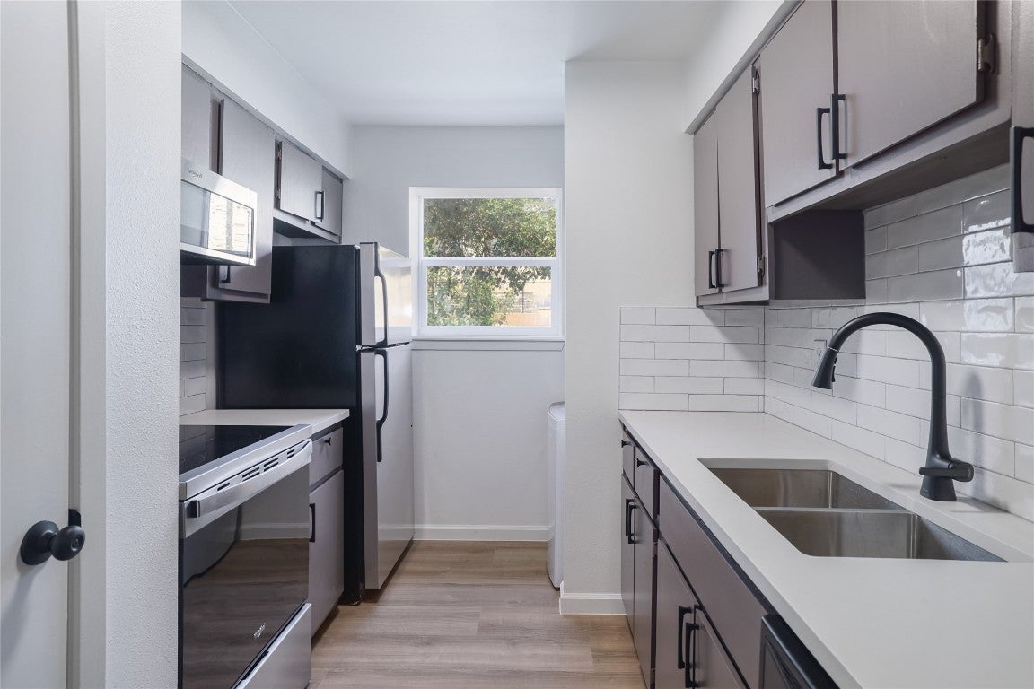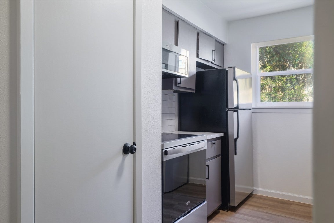 Freshly updated and at a price you can't beat, this large 1 bed, 1 bath ground-floor condo is a fantastic find in the heart of South Austin! This single-story unit features all-new windows and sliding glass door, luxury vinyl plank flooring, quartz countertops, stove, microwave, lighting, fixtures, patio fencing, and fresh paint throughout - plus it includes a refrigerator and W/D too! Enjoy your own private patio and take advantage of the complex’s pool with a stunning downtown view from atop Deatonhill. Located near countless shopping and dining options, with exterior renovations underway and set to complete by mid-summer—this is a great opportunity you don’t want to miss - this is a great value!