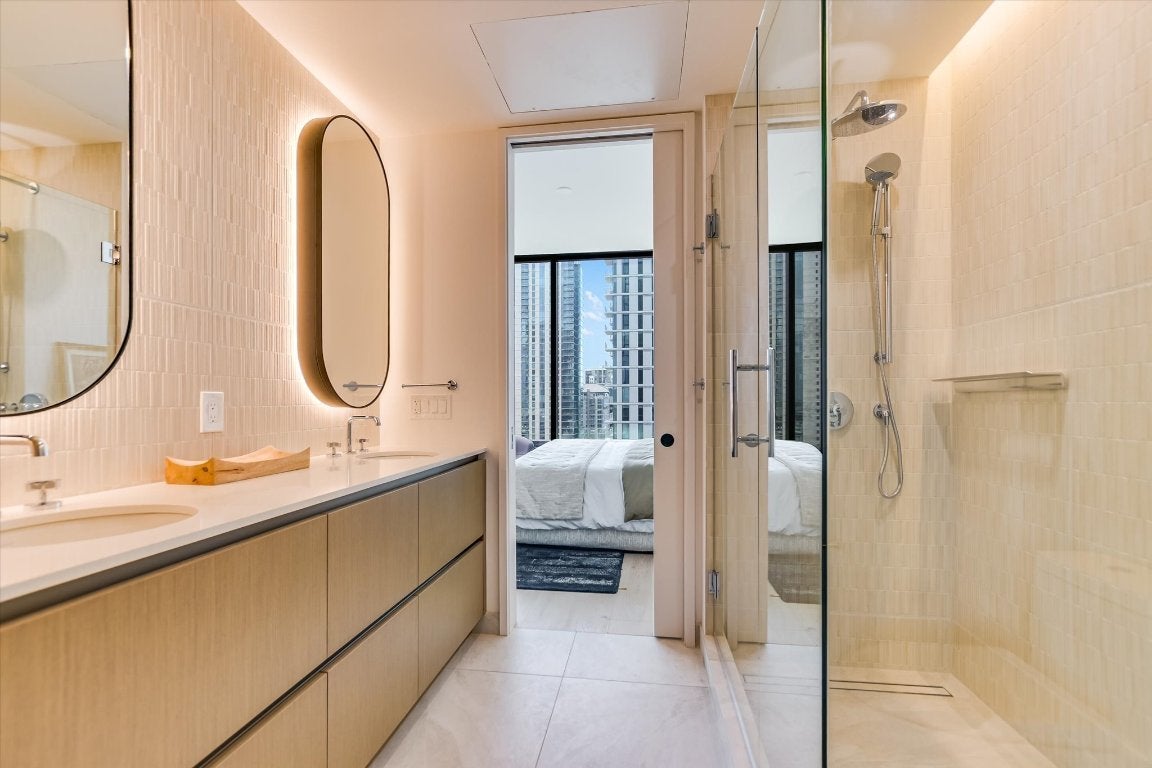 Be the first to live at The Modern Austin Residences in this expansive 3 bed, 3 bath residence with a dedicated study on the 19th floor. This southeast-facing home offers 1,983 sq ft of total living space, including a private 148 sq ft balcony with views of Lady Bird Lake and the downtown skyline. Floor-to-ceiling windows flood the interior with natural light. The kitchen is outfitted with light quartz countertops, a Sub-Zero 36” refrigerator, and sleek, modern finishes. All three bathrooms feature matching light quartz surfaces. Additional highlights include a washer and dryer, hardwood flooring throughout, and two reserved parking spaces. Residents enjoy over 19,000 sq ft of curated amenities across three levels, including a 25-meter pool and spa, fitness center and yoga studio, indoor and outdoor lounges, dog park and wash station, business center, sky lounge with catering kitchen, and 24/7 concierge service. Perfectly situated in the heart of the Rainey Street District, The Modern offers walkable access to Austin’s best restaurants, nightlife, and the hike-and-bike trail along Lady Bird Lake.