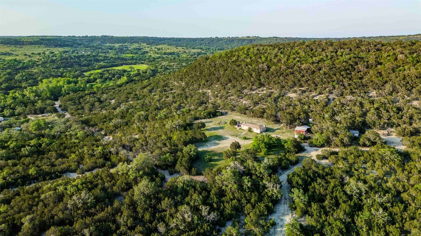 This 405-acre Hill Country ranch is surrounded on two sides by the Balcones Canyonlands National Wildlife Refuge. The property is located in the Balcones Canyonlands area, just east of Marble Falls and just on the western edge of Travis County. The area is well known for its spectacular Hill Country views and scenic countryside and this property has it all. It is unrestricted, rugged and ready for new ownership. Potential uses include a family recreational ranch or homesite, subdivision into large tract homesites or commercial operations such as glamping, rental cabins or other recreational type development. The property includes a 1400 sqft livable cabin with water well, electric and septic and two smaller, approximately 500 sqft cabins that need work. Wet weather Cottonwood Branch Creek runs through the property and drains into the well-known live water Cow Creek not far away. Elevations range over 320 feet on the ranch from a low of 1,020 feet at the bottom of Cottonwood Branch on the south side of the property to a high elevation of 1,340 feet on the northeast part of the property. These elevations allow for panoramic views of the surrounding Hill Country with multiple high locations and multiple canyons. The terrain is rough, rocky and dramatic and includes some very interesting limestone shelfs and outcrops. The soil supports native oak, elm, juniper, and mesquite trees as well as native grasses and other vegetation. Wildlife includes whitetail deer, coyotes, turkeys, mourning dove, and many other native wildlife species. The property is currently used for grazing and recreation. 1-d-1 agricultural tax valuation is held via a grazing lease keeping the taxes low.