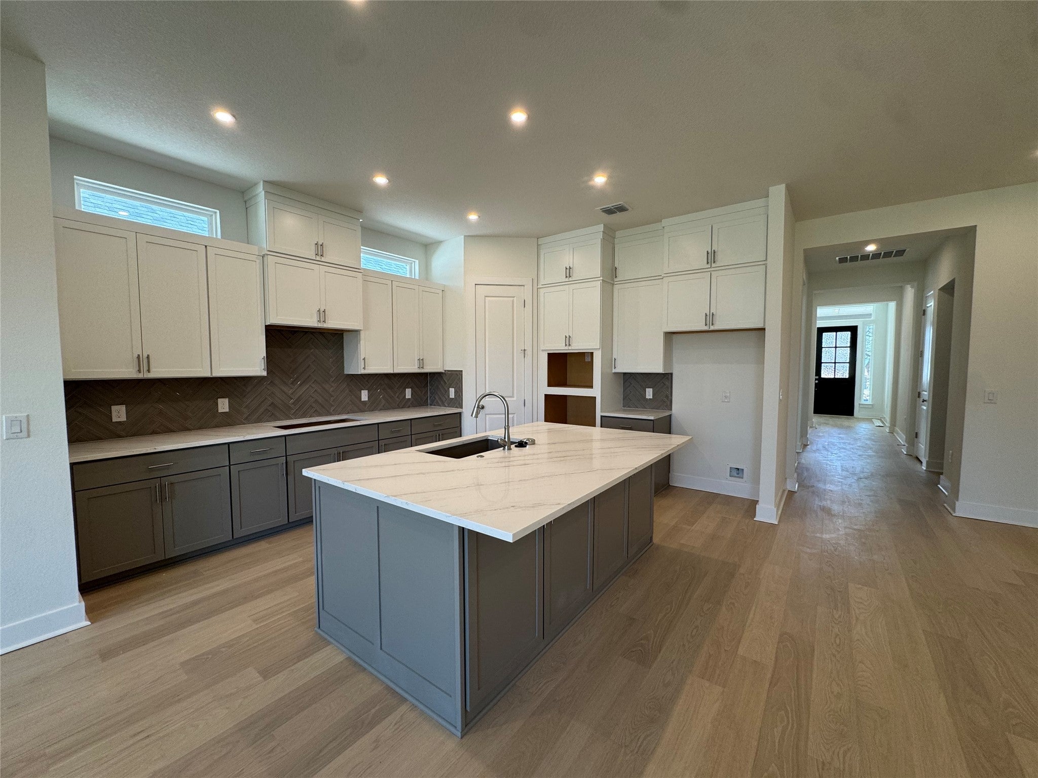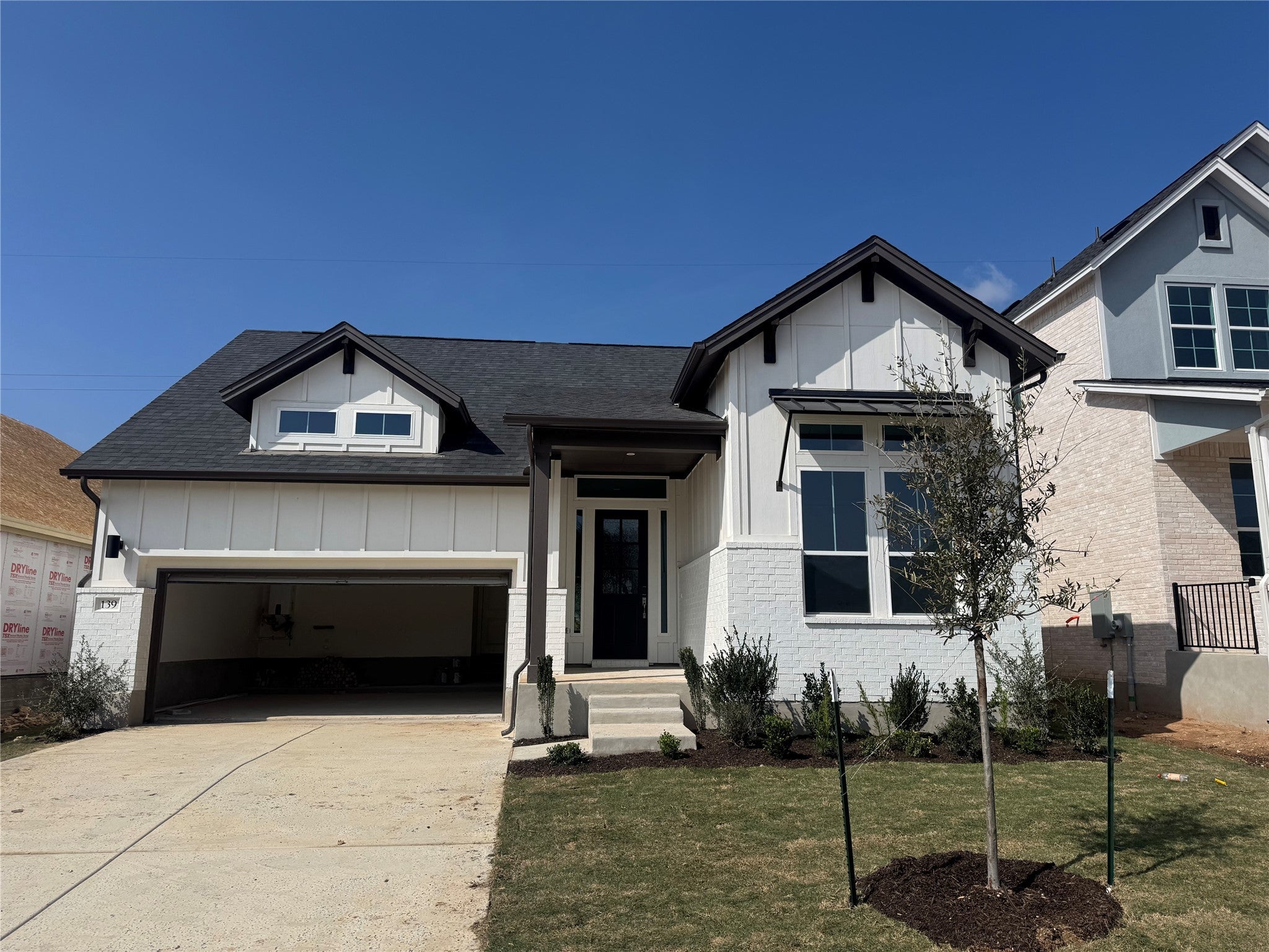 Located in West Buda’s Persimmon community, this 2,180 square foot new construction home by MileStone Commu-nity Builders offers 4 bedrooms and 2.5 baths with elevated finishes throughout. Enjoy added privacy with no back neighbors and a large heritage oak tree providing natural shade in the backyard. The covered patio creates an ideal space for outdoor living and entertaining. Inside, an 8’ front door and 8’ interior doors enhance the open feel of the home. The kitchen features Calcatta-style quartz countertops, cabinetry to the ceiling, a built-in Whirlpool gas cooktop, and a wall-mounted Whirlpool oven. Expansive windows overlook the backyard from both the living room and the primary suite, filling the home with nat-ural light. The primary bath includes a frameless glass shower with mud-set tile floor and a separate garden tub, creating a spa-like retreat. Community amenities to include multiple pools, indoor gym, clubhouse, pickleball courts, co-working space, and over 160 acres of maintained amenity and trail space.