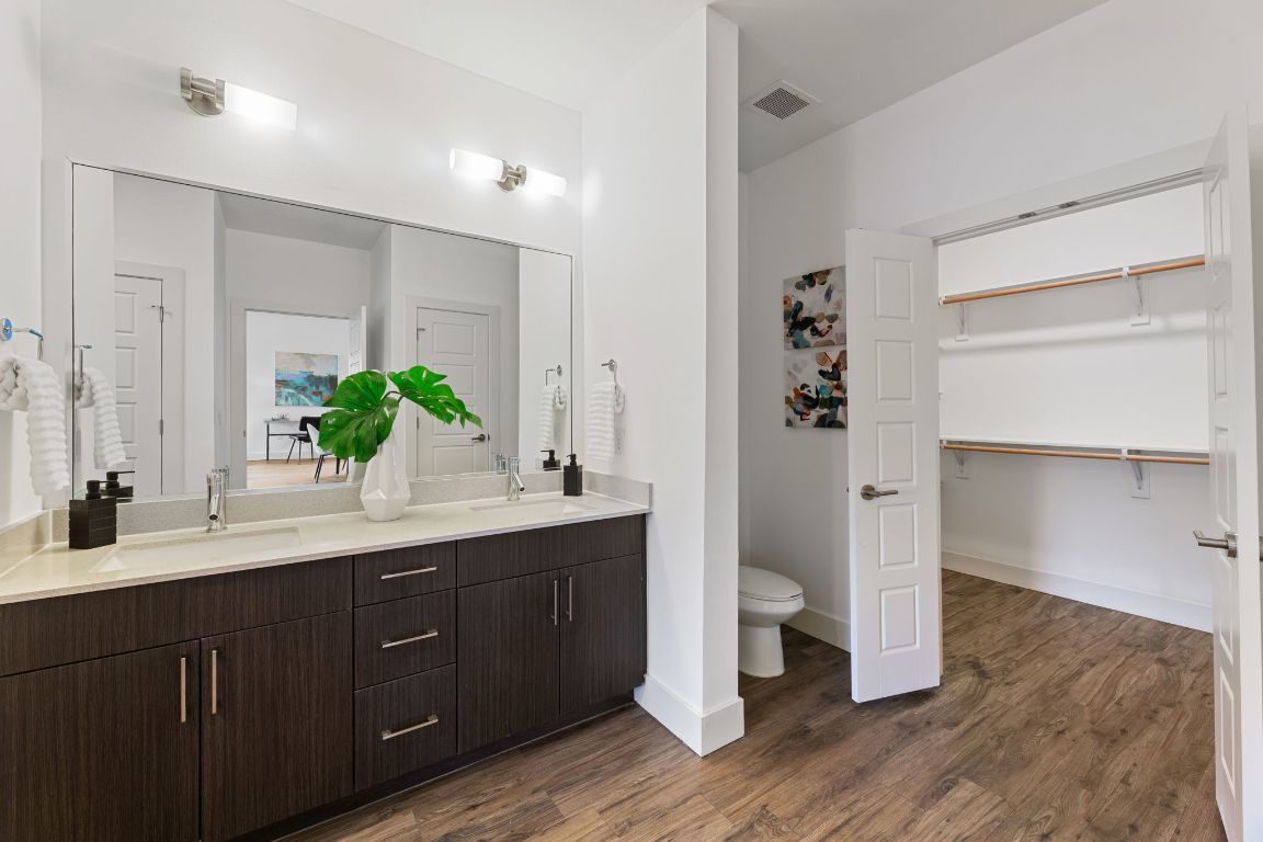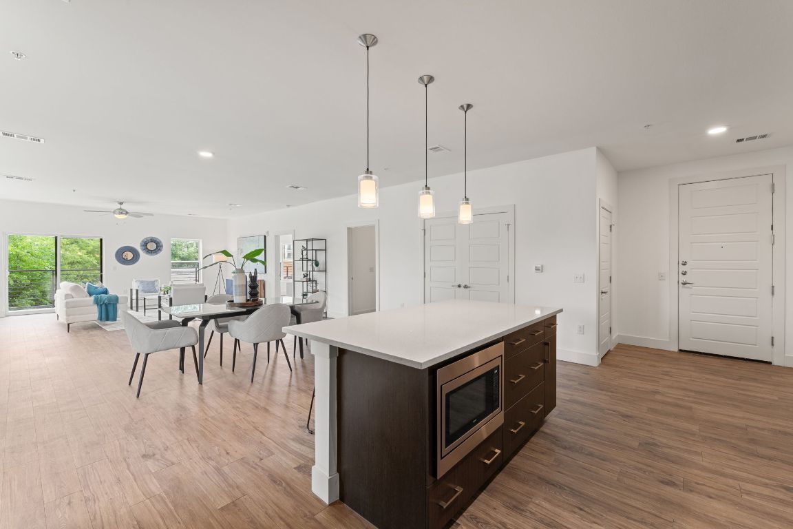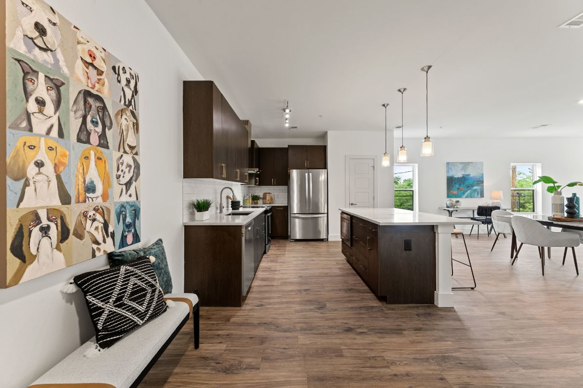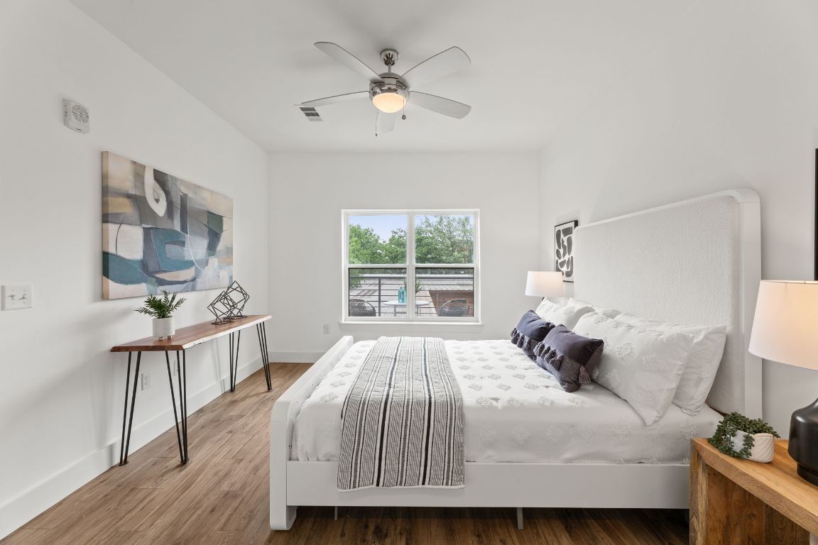 Experience modern loft-style living in this impeccably maintained northwest corner unit at Burnet 64 Condominiums—owned and cared for by just one owner. This spacious 1,310 SQFT condo features a bright and open floor plan, oversized windows that flood the space with natural light, and a massive wraparound corner balcony that is approximately 86 feet LONG! Perfect for entertaining and plenty of room if you have pets. Stylish finishes include quartz countertops, stainless steel appliances, designer cabinetry, and sleek flooring throughout—no carpet in sight. Residents enjoy access to a community clubhouse, elevator, and gated, covered parking. This unit includes a rare tandem space that fits two vehicles. Located in the heart of the vibrant Burnet Road corridor, you're just steps from some of Austin’s best restaurants, breweries, shops, and grocery stores.
