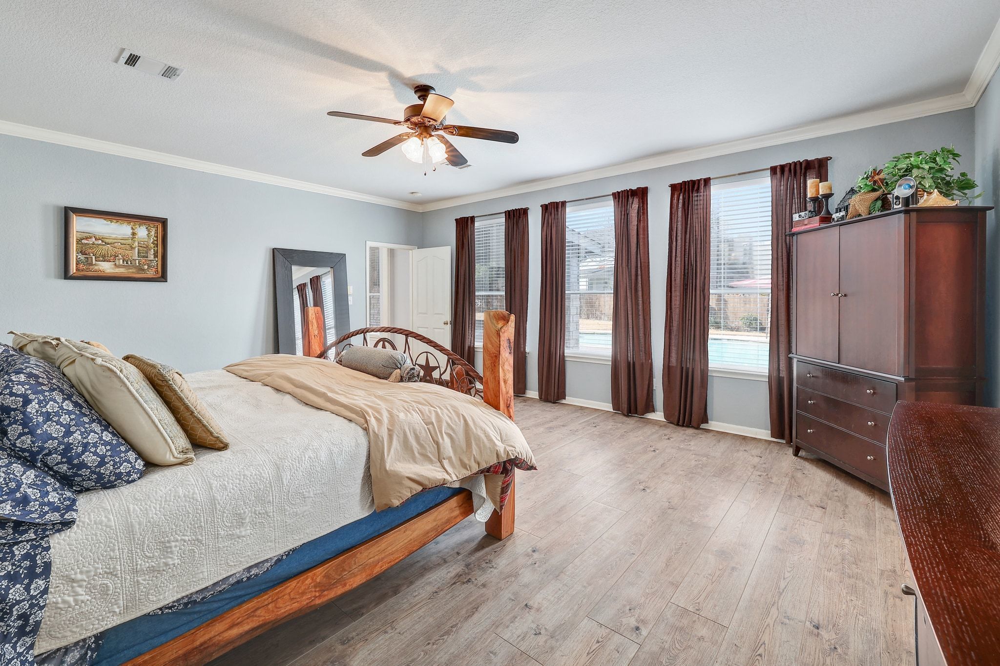 Immaculately maintained and updated property in highly sought after Forest Ridge Estates. Regal stone exterior, lush mature trees, almost 1/2 acre lot with smart sprinkler system and sparkling pool with smart water fill. The main level showcases luxury vinyl plank flooring, granite countertops, a gas cooktop and large pantry. Open, versatile floorplan with high ceilings and two dining areas is perfect for hosting large gatherings. The primary bedroom is downstairs, four bedrooms and game-room/living area upstairs. Floored walk-in attic, pull-down attic plus smart three car side-entry garage give ample usable storage to this lovely home. Refrigerators, washer and dryer convey. Ideally located near Round Rock amenities, including shopping, dining, Old Settler’s Park, medical facilities, and highly regarded schools. Two new AC units in 2024 and 2025. Convenient access to SH-45, I-35, and TX-130, provides easy commutes to major area employers. Don't miss this special opportunity!