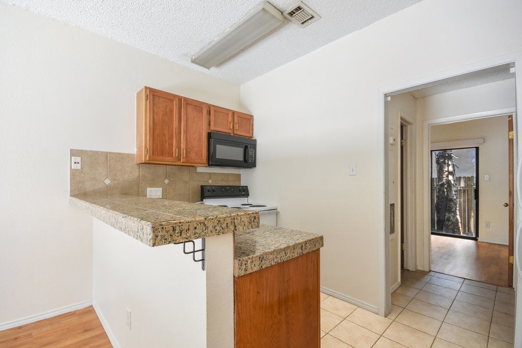 Pre-Leasing for August 2026. Freshly updated 1 bed 1 bath at the Gazebo condominiums. Granite countertops, laminate flooring, upgraded light fixtures. Private patio with access from bedroom. Parking Included. Water wastewater trash included. Community W/D