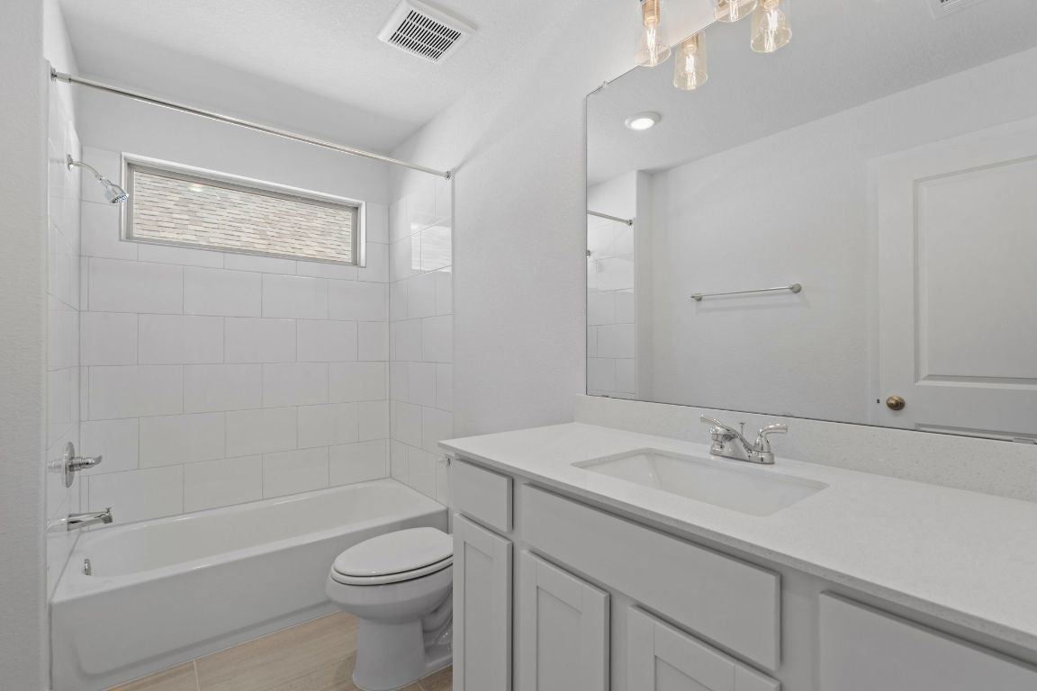 Welcome to the Grayson, a spacious two-story home offering 2,450 square feet of modern living. This thoughtfully designed layout features 4 bedrooms and 3 full bathrooms, accommodating families of all sizes. The open-concept main floor includes a generous living room that flows into the dining area and a well-appointed kitchen, perfect for entertaining. The primary suite is conveniently located on the main floor and serves as a private retreat, complete with an en-suite bath and a large walk-in closet. Upstairs, you'll find two additional bedrooms, a full bath, and a versatile loft space. Enjoy outdoor living on the covered patio, ideal for relaxation and gatherings.