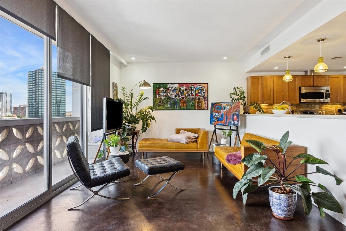 FULLY RENOVATED & READY TO GO! - CAN ALSO BE LEASED UNFURNISHED FOR $3200/MO Step into effortless midcentury-modern living with this beautifully updated 2-bedroom, 2-bath condo at the historic Cambridge Tower—Austin’s first landmark residential high-rise, ideally located across from the UT campus in the heart of the museum district. Unit 11A has undergone a top-to-bottom transformation, offering a stylish, turnkey home with all the heavy lifting already done. Key upgrades include: Three new sliding glass balcony doors for improved efficiency and access to the full-length west-facing balcony Reimagined open kitchen—wall removed to create open flow to living/dining areas All-new custom cabinetry with smart storage, quartz counters, and stainless steel appliances Built-in open shelving in kitchen and dining, plus elegant glass-front display cabinets Both bathrooms completely remodeled, including new tile, showers/tub, sinks, toilets, fixtures, and medicine cabinets Primary suite upgrades: built-in desk and shelving with folding doors, plus custom inset space for armoire Polished concrete floors throughout and fresh paint for a clean, modern finish New recessed lighting, ceiling fans, and an upgraded AC unit (2011) for year-round comfort Comes with refrigerator and a washer/dryer combo unit conveniently located in the kitchen Bonus: the kitchen includes a rare private hallway entrance—perfect for quick access or deliveries. Enjoy stunning west-facing views and the timeless charm of Cambridge Tower’s breeze block balconies, combined with the convenience of extensive building amenities: a rooftop terrace, heated pool and spa, fitness room, concierge, 24-hour security, and more. HOA covers all utilities, internet, cable, and reserved garage parking. Unit 11A delivers the perfect blend of vintage architecture and modern functionality in one of Austin’s most desirable, walkable neighborhoods.