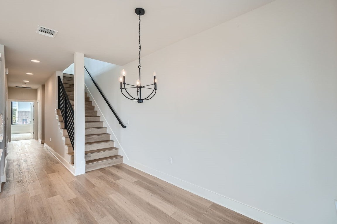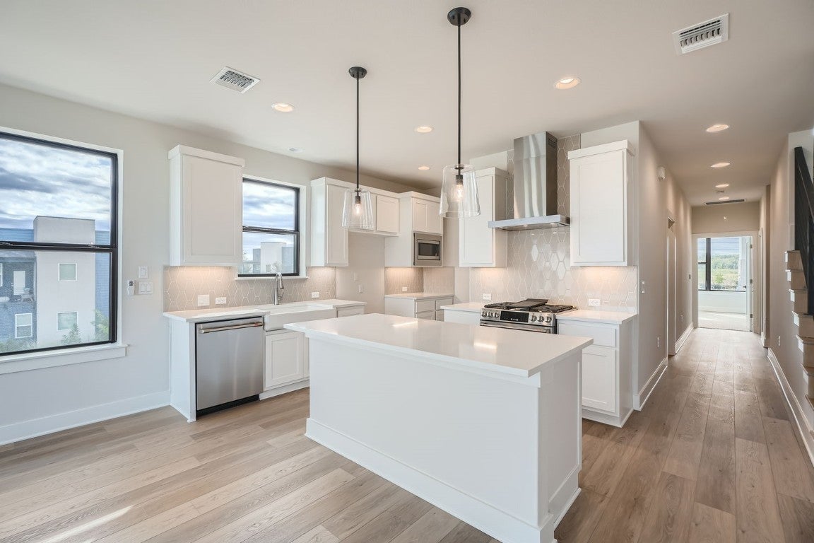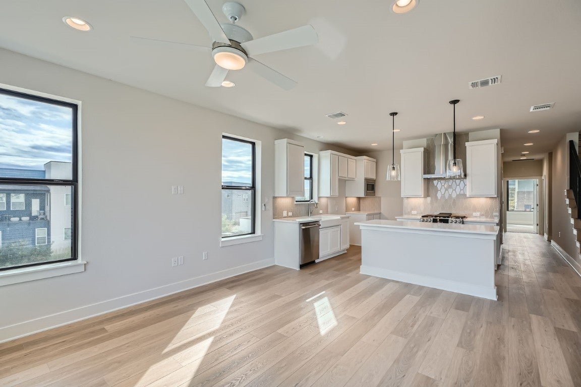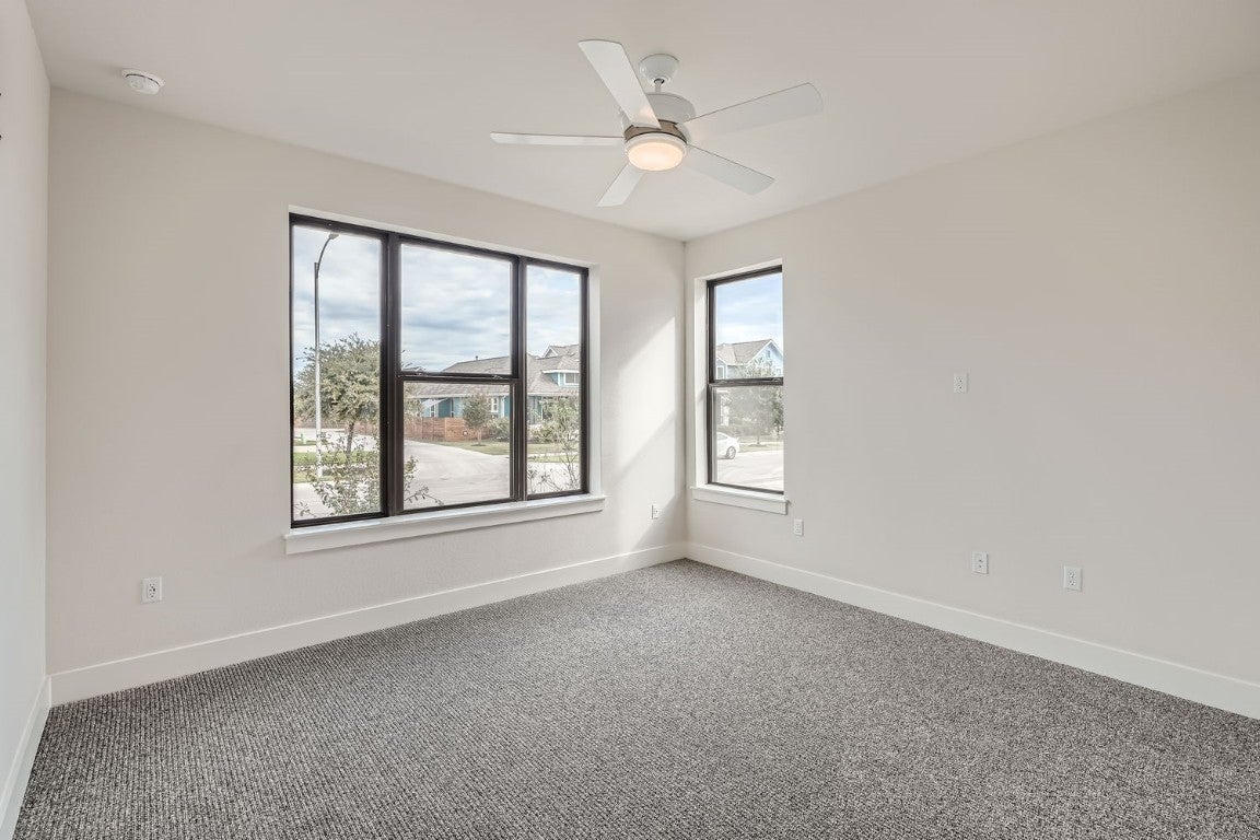 The Ramble series is a very limited collection of 3 bedroom homes featuring elevations that compliment Goodnight Ranch and the new urbanism vibe. Unobstructed downtown views! Modern style with high-end finishes. Step into this beautiful 3-bedroom, 3.5-bathroom home which boasts a 2-car garage and 2,443 sq.ft. of living space, featuring Downtown Austin skyline views from your third story balcony! On the main floor, you’ll find two spacious bedrooms and large storage rooms to keep the home organized. The second level was designed with intimate areas to relax and unwind, and is where the home’s open-concept kitchen, dining area and family room reside. An impressive primary bedroom can also be found on this floor, located at the front of the house. The third floor’s exceptional game room and massive porch is ideal for entertaining parties of all sizes, complementing the 2-car garage which accommodates families with multiple vehicles.