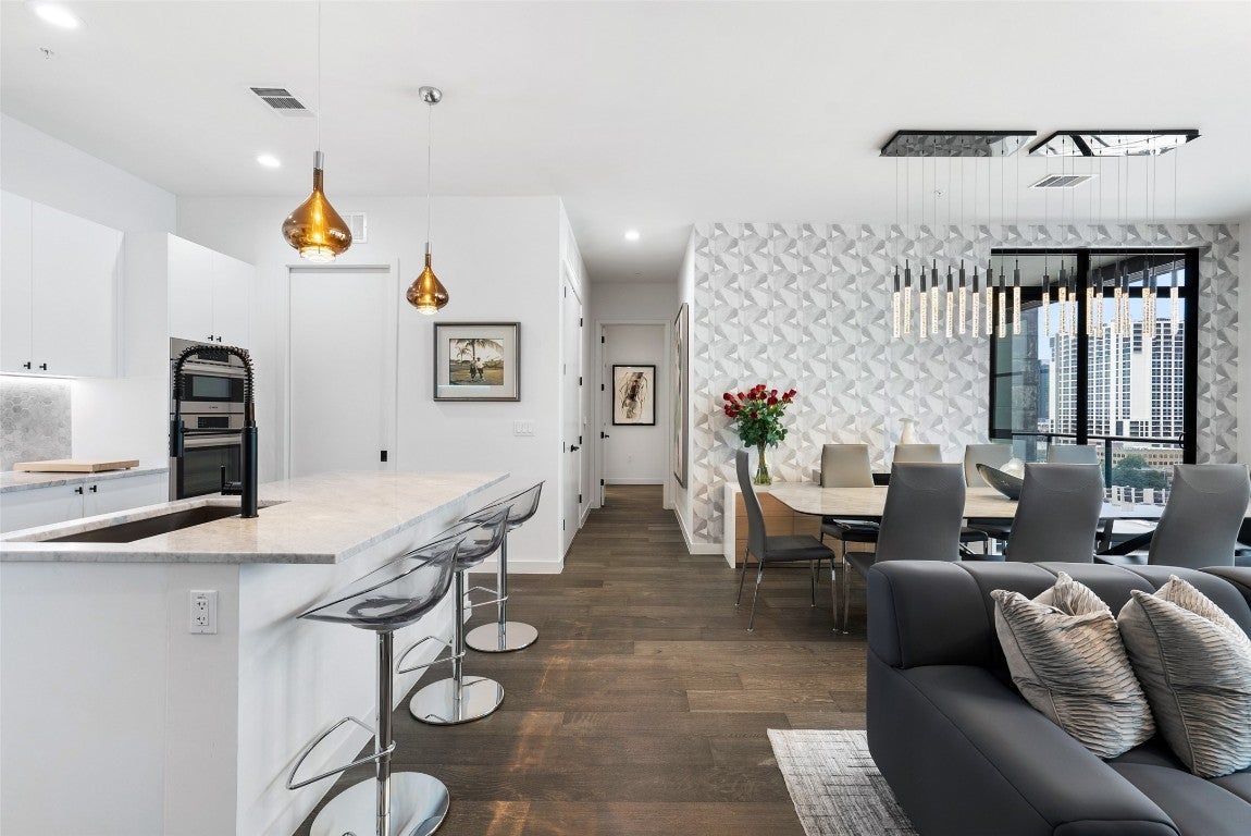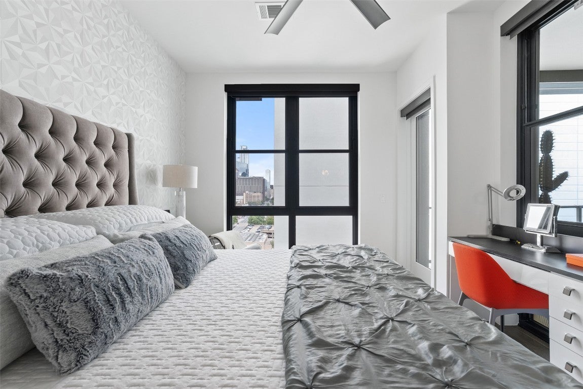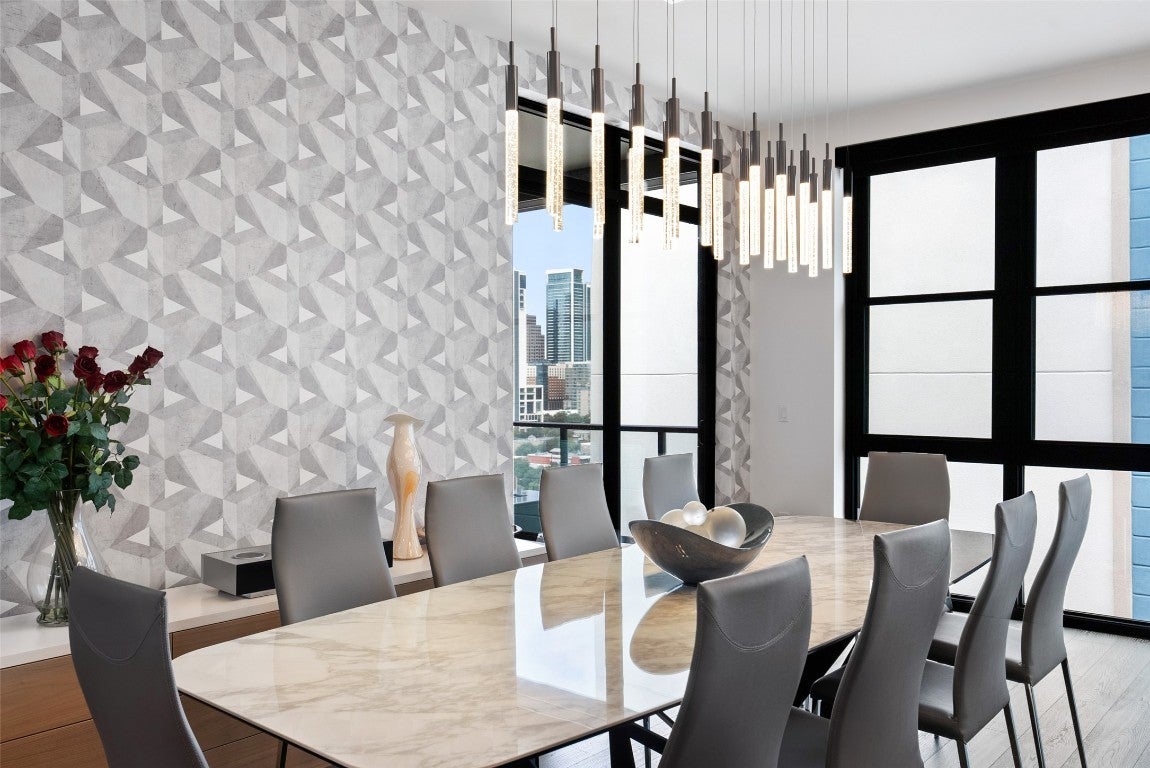 The Ultimate Lock and Leave Penthouse Discover a rarity in the Austin market: a bespoke 3-bedroom, 3-bathroom penthouse offering an unparalleled combination of luxury and convenience. Located at The Tyndall, this residence is one of the very few downtown properties that includes not only three dedicated, oversized parking spaces but also a coveted 10x10 climate-controlled jumbo storage unit. This is the perfect solution for those seeking the ultimate lock-and-leave lifestyle. Enjoy effortless access to 6th Street, the trendy, laid-back vibe of East Austin, and convenient access to Austin-Bergstrom Airport, all without the traffic and noise of Rainey Street or the central grid. Immerse yourself in the walkable neighborhood, where you can easily reach Whole Foods, grab coffee at Alfred Coffee, and experience iconic Austin dining at places like Franklin's BBQ, Hillside Farmacy, and other fantastic venues along 11th Street. As you cross the threshold, you'll immediately appreciate the high-quality custom fixtures and finishes throughout. This thoughtfully designed residence boasts a flexible floor plan, offering versatility for a home office or additional living space. Each of the three bedrooms features a private terrace and an en-suite bath, providing individual retreats for relaxation. The Primary Suite is a highly customized private oasis, showcasing floor-to-ceiling hexagon marble tile, a frameless glass shower, a luxurious slipper tub, and a custom walk-in closet by California Closets. The Tyndall elevates everyday living with an impressive array of amenities, including dedicated security and 24-hour CONCIERGE service, a rooftop pool, a 24-hour state-of-the-art FITNESS CENTER, YOGA facilities, and a DOG RUN with washing stations. The HOA covers a comprehensive list of amenities, including dry cleaning, water usage, and trash. Discover the pinnacle of sophisticated urban living at The Tyndall!