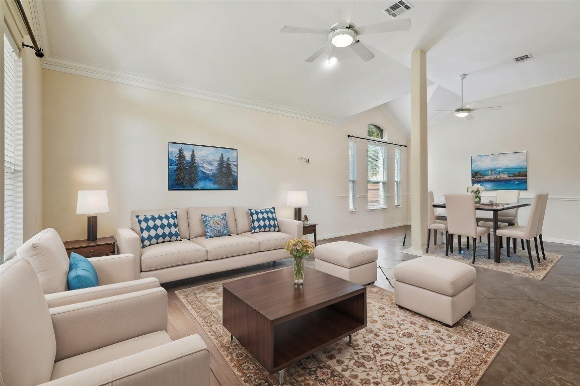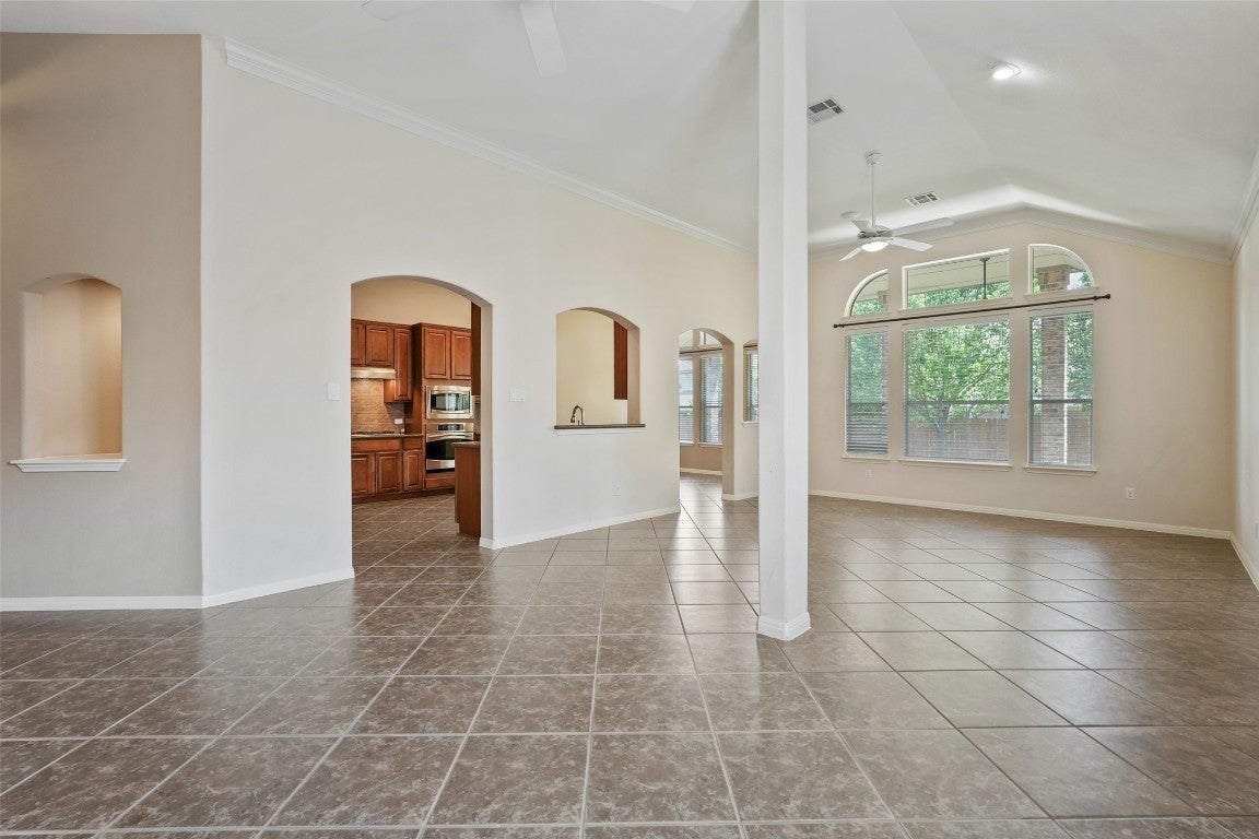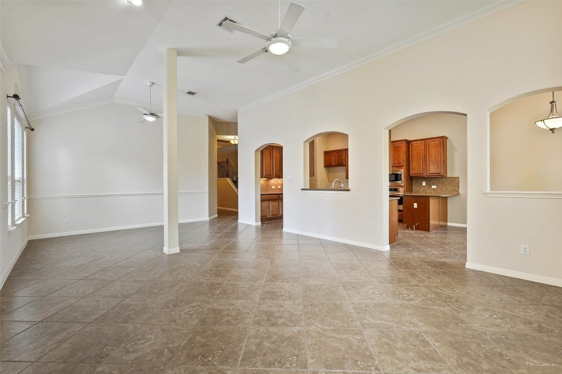 Beautiful and spacious home with 4 bedrooms and 1 office. Open layout with vaulted ceiling for beautiful natural light. The second floor loft makes for a great guest area or in-law suite with a bedroom and private bath and large living room that is also a great game/play room. The other 3 bedrooms, including the master, are on the first floor with 2 more full bathrooms and a half bath. Large lot with plenty of play space in the backyard. The house is situated toward the back of the neighborhood with very little through traffic other than neighbors. A short 5 minute walk to the huge neighborhood pools or take your bike across the street to the Old Settlers Park and enjoy everything the spacious park has to offer: trails, sports, events, playgrounds, a water park, and much more!