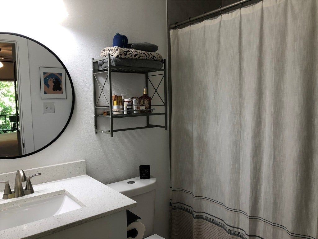 Beautifully remodeled Condo. Bright and breezy top floor unit with vaulted ceilings and Fireplace. Kitchen has quartz counters, glass tile back-splash and stainless steel appliances. High quality laminate flooring throughout living areas. Stylized details in baths with quartz counters. Private covered patio overlooking towering trees right off the main Bedroom to enjoy your morning coffee. In-Unit laundry w/washer and dryer included. Common area with pool and dog park, perfect central Location. Close to everything Austin has to offer.