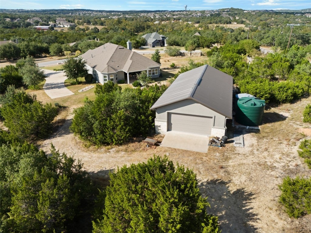 Discover the ideal balance of Hill Country serenity and modern luxury in this stunning single-story home in the coveted Rim Rock neighborhood of Driftwood. Built in 2018, this 4-bedroom, 3-bath residence offers 2,585 square feet of thoughtfully designed living space with a 3-car garage, set on 2.22 acres in Dripping Springs ISD. At the heart of the home, a gourmet kitchen features quartz countertops, stainless-steel appliances, and custom cabinetry, flowing effortlessly into open living and dining areas filled with natural light. High ceilings, wide-plank flooring, and picture windows showcase the panoramic Hill Country views that surround the property. Outdoors, enjoy Texas sunsets and big-sky vistas from your covered patio or create your own backyard retreat — there’s plenty of room for a pool. Once of the property’s standout feature is the 20' × 50' detached workshop / man cave / party barn, complete with a metal roof, rainwater collection system for irrigation, and a covered patio with Hill Country views — ideal for entertaining, hobbies, car enthusiasts, or creative projects. And don't forget, there is a 3 car garage attached to the main house as well! Rim Rock offers the rare combination of privacy and community, with spacious homesites and winding streets that feel worlds away yet remain minutes from modern conveniences. Enjoy quick access to local wineries, distilleries, restaurants, and a new H-E-B — just 25 minutes to downtown Austin and the airport. This Driftwood gem blends luxury finishes, relaxed Hill Country living, and versatile outdoor spaces — the perfect retreat for those who want room to live, create, and entertain.