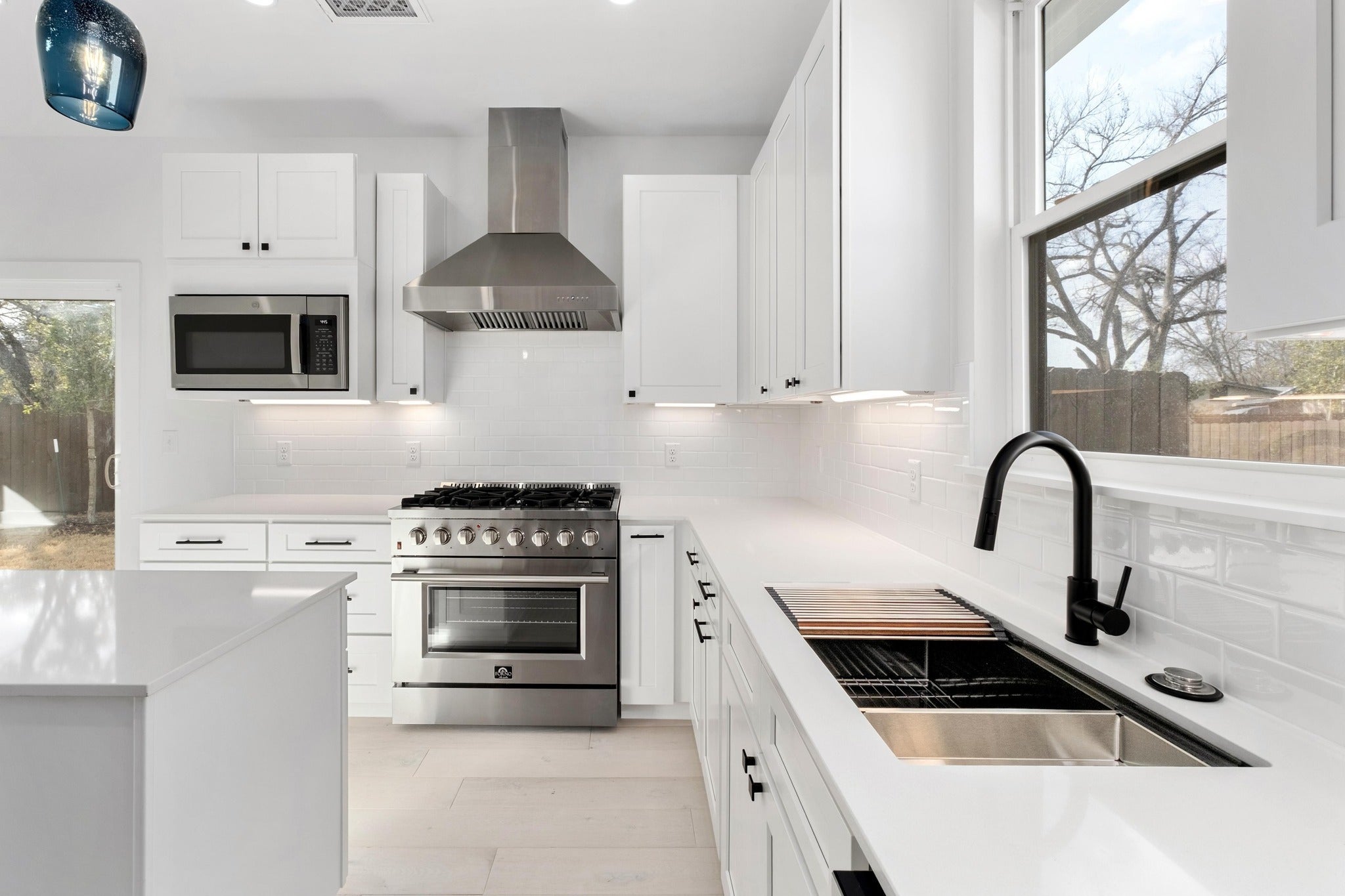 Introducing Sylvan Glade Residences, a boutique collection of four newly completed homes designed for contemporary living in the heart of South Central Austin. These thoughtfully crafted residences blend architectural sophistication, modern efficiency, and refined comfort in one of the city’s most desirable locations. Each home offers an open, light-filled layout anchored by wide-plank oak flooring throughout the main living areas. Interiors include a private study and a flexible media or bonus room to suit today’s evolving lifestyle. Expansive primary suites provide a true retreat with spa-inspired baths, oversized walk-in showers, generous closets, and elevated finishes. The kitchens are beautifully appointed with quartzite countertops, custom cabinetry, an oversized island, and a premium appliance package including a Forno Galliano 36-inch six-burner gas range, ZLINE 36-inch vent hood, GE built-in microwave, GE dishwasher with third rack, LG Smart French Door refrigerator, and InSinkErator disposal. A 75-gallon, 76,000 BTU gas water heater ensures exceptional hot water capacity. Built for efficiency and comfort, each residence features spray foam insulation, a high SEER-rated HVAC system with gas furnace, in-ground irrigation designed to minimize evaporation, and a 50-amp EV charging outlet in the spacious two-car garage. Double-layer drywall and sound batt insulation at common walls enhance privacy and quiet living. Smart technology allows control of the security system, garage door, thermostat, Ring doorbell, and three floodlight cameras from your phone. The living room is enhanced with in-ceiling 5.1 Klipsch surround sound for an elevated entertainment experience. Fully fenced and gated yards with professional landscaping create private outdoor spaces ideal for entertaining. Minutes from Downtown, Central Market, the airport, and premier dining and shopping, Sylvan Glade Residences deliver elevated design and modern comfort exactly where you want to live.