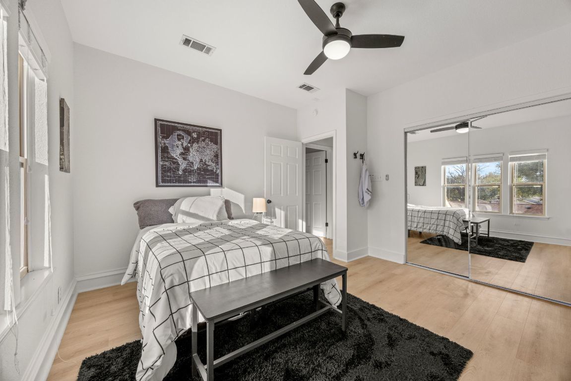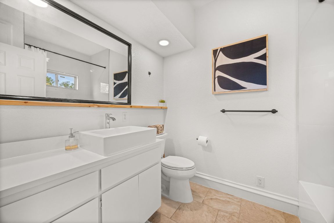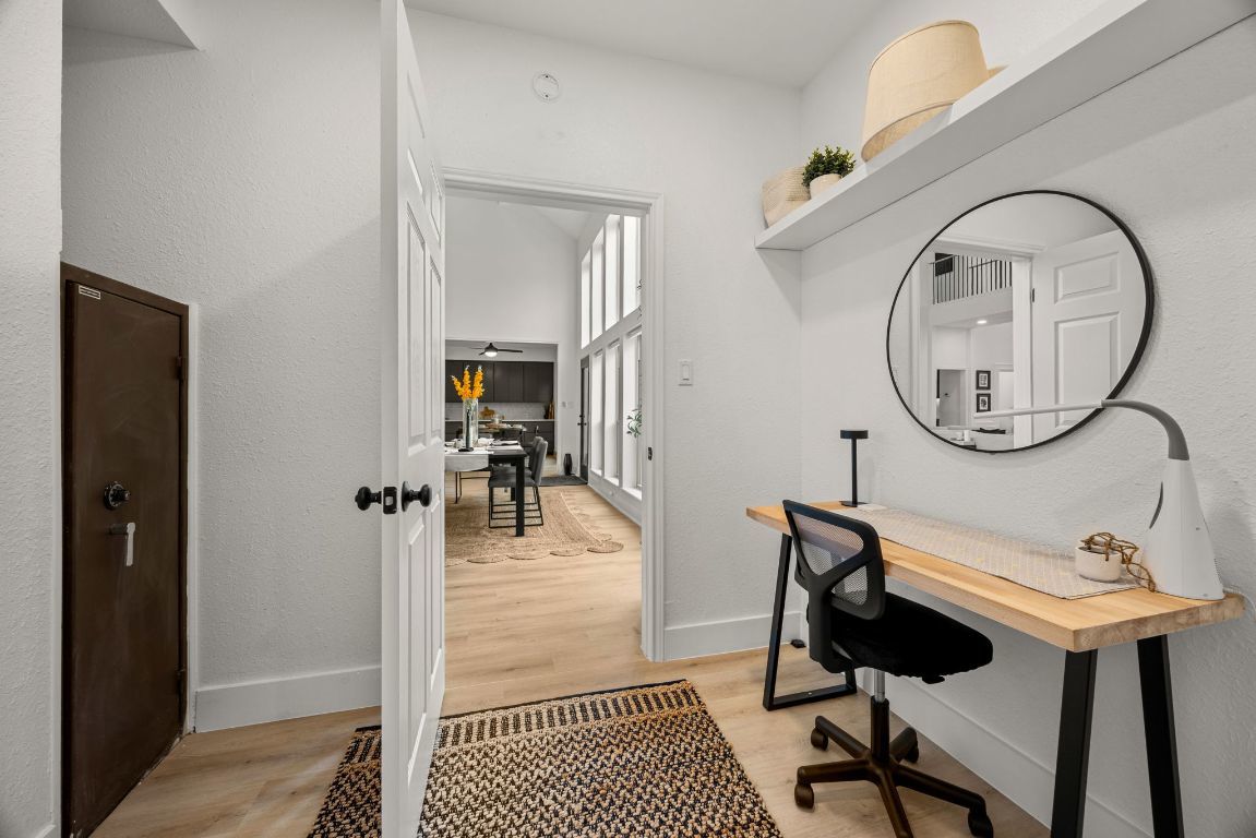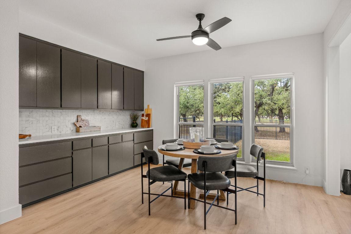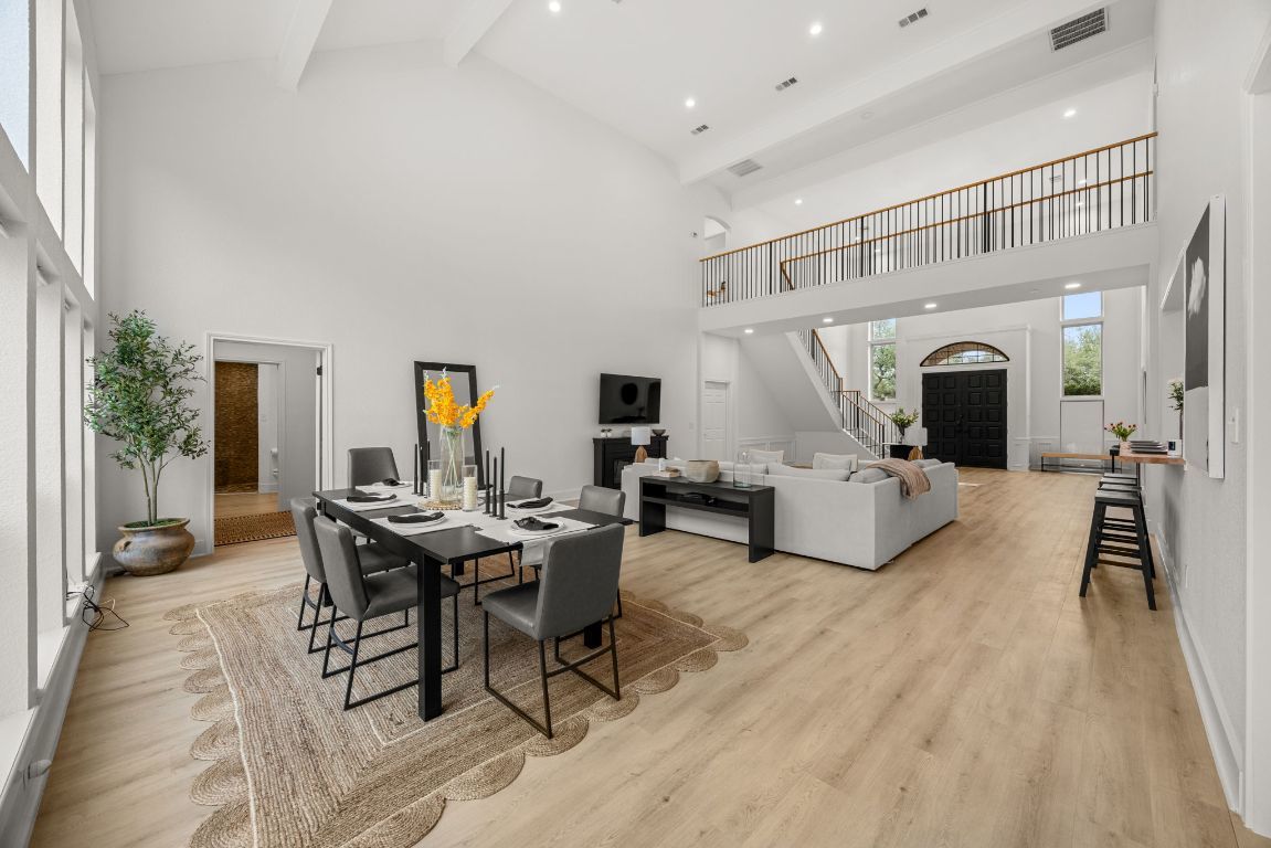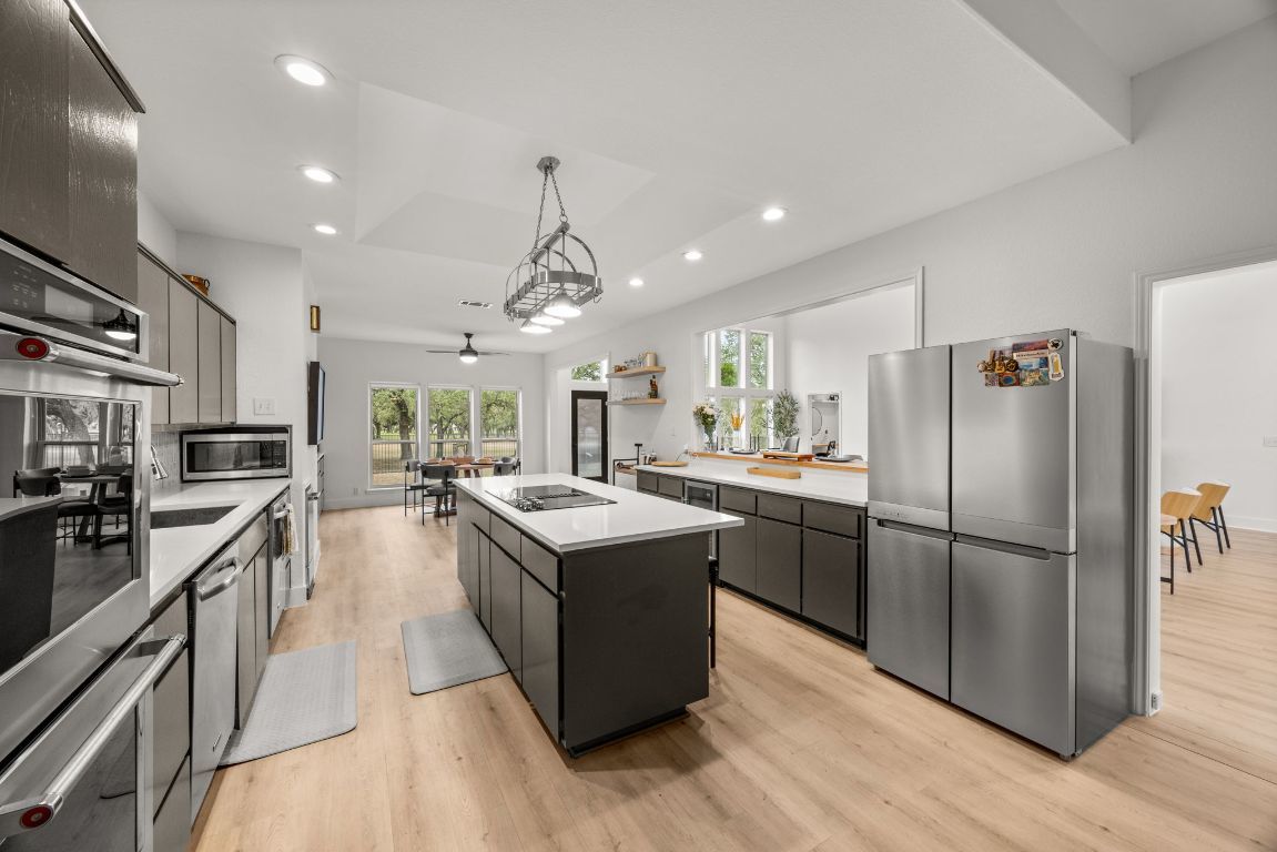 Absolutely stunning modern renovation on the Balcones Golf Course in the highly sought-after 78750 zip code. This stately home has been transformed into a spacious 5-bedroom residence with a dramatic open floor plan that balances elegance and comfort. Upon entry, soaring 20-foot ceilings and a wall of windows frame breathtaking golf course views. Light oak LVP flooring and fresh white walls flow throughout, creating a bright, airy feel filled with natural light. The expansive great room is ideal for entertaining, while the oversized kitchen is slightly tucked away for a touch of traditional privacy. The kitchen offers exceptional storage and functionality with white quartz countertops, abundant cabinetry, a large island with cooktop, double built-in ovens, two dishwashers, a wine fridge, and a separate ice machine. Cabinetry continues into the eat-in area, with even more storage in the nearby laundry room off the rear-entry garage. Two bedrooms are located on the main level, thoughtfully separated for privacy. The spacious primary suite features extensive built-in storage, a walk-in closet, and a spa-like bath with walk-in shower, soaking tub, and oversized sink. A large guest bedroom sits toward the front of the home. The main level also includes a half bath and an additional full bath, ideal for entertaining, plus a third full bath at the rear added with future pool plans in mind. Enjoy golf course views from the new deck, along with a wrap-around driveway and rear-entry garage offering ample parking. Upstairs are three additional oversized bedrooms, two full bathrooms, and abundant storage, connected by a catwalk overlooking the great room. Recent updates include a roof replaced in 2022 or later, a new 5-ton HVAC in 2025, three additional HVAC units, and one recently replaced water heater. Furniture is also available for purchase—this home truly has it all.