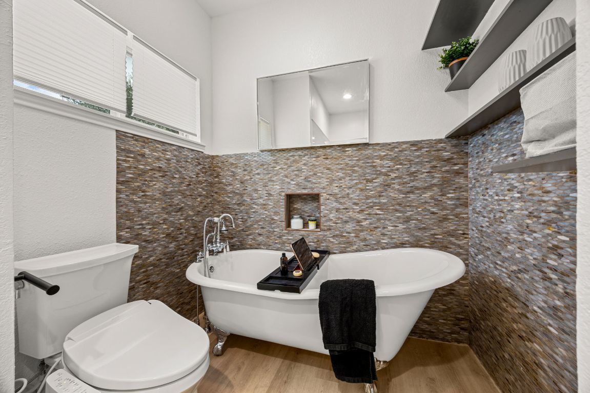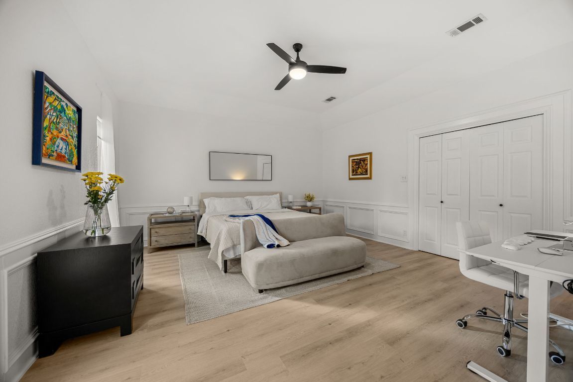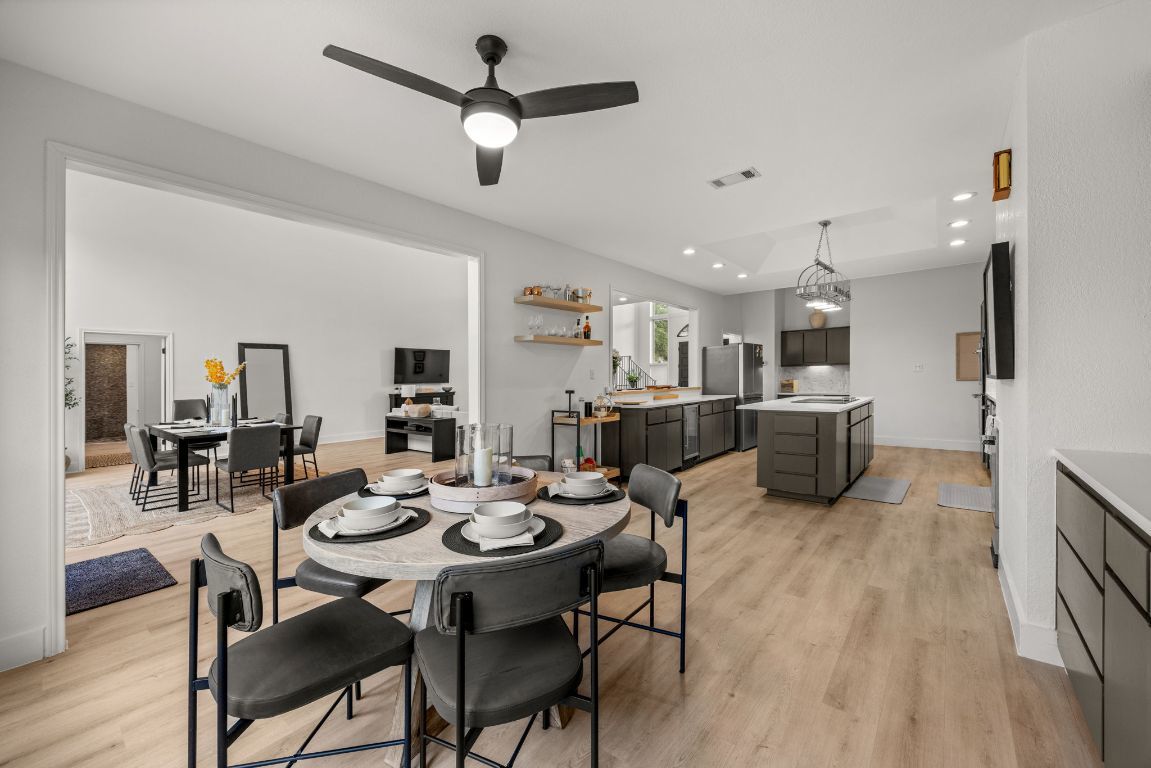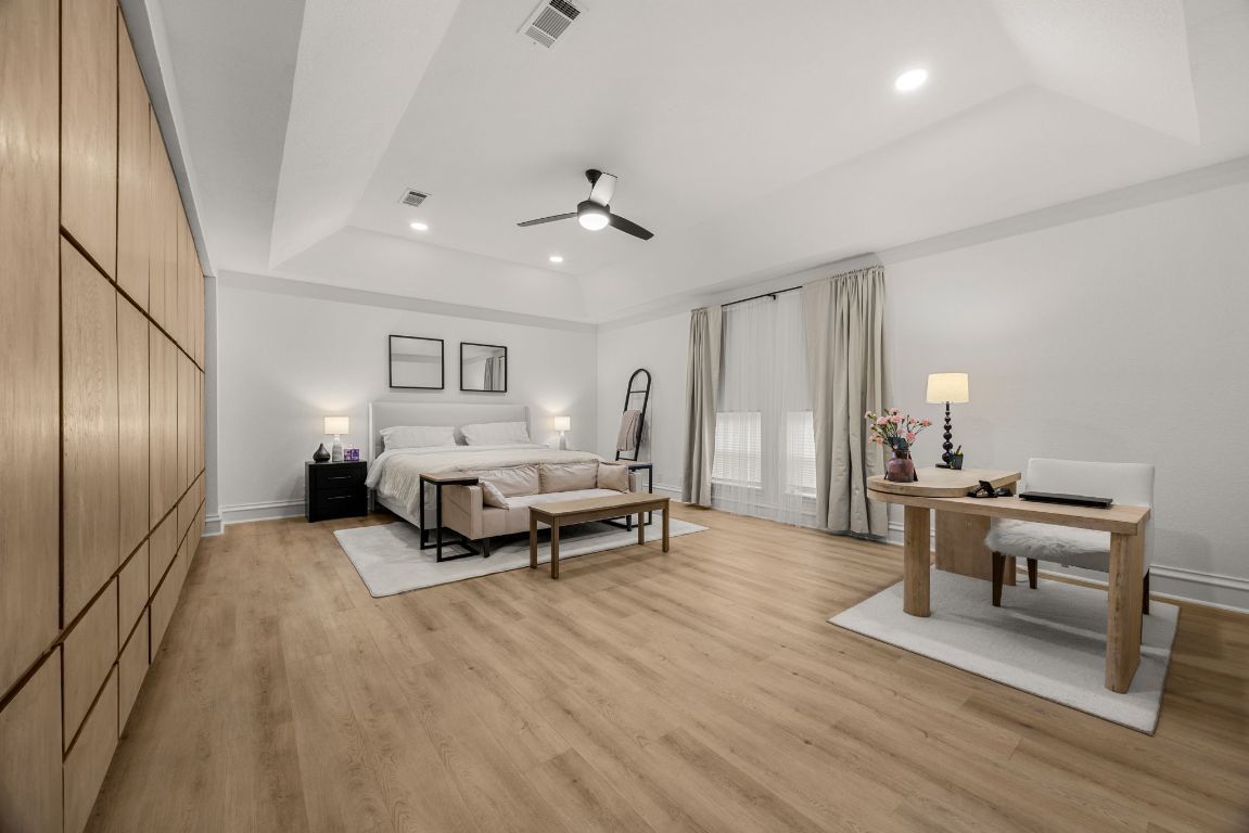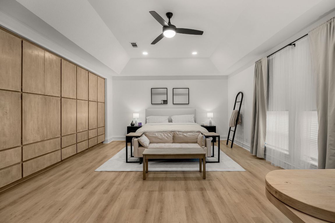Absolutely stunning modern renovation on the Balcones Golf Course in the highly sought-after 78750 zip code. This stately home has been transformed into a spacious 5-bedroom residence with a dramatic open floor plan that balances elegance and comfort. Upon entry, soaring 20-foot ceilings and a wall of windows frame breathtaking golf course views. Light oak LVP flooring and fresh white walls flow throughout, creating a bright, airy feel filled with natural light. The expansive great room is ideal for entertaining, while the oversized kitchen is slightly tucked away for a touch of traditional privacy. The kitchen offers exceptional storage and functionality with white quartz countertops, abundant cabinetry, a large island with cooktop, double built-in ovens, two dishwashers, a wine fridge, and a separate ice machine. Cabinetry continues into the eat-in area, with even more storage in the nearby laundry room off the rear-entry garage. Two bedrooms are located on the main level, thoughtfully separated for privacy. The spacious primary suite features extensive built-in storage, a walk-in closet, and a spa-like bath with walk-in shower, soaking tub, and oversized sink. A large guest bedroom sits toward the front of the home. The main level also includes a half bath and an additional full bath, ideal for entertaining, plus a third full bath at the rear added with future pool plans in mind. Enjoy golf course views from the new deck, along with a wrap-around driveway and rear-entry garage offering ample parking. Upstairs are three additional oversized bedrooms, two full bathrooms, and abundant storage, connected by a catwalk overlooking the great room. Recent updates include a roof replaced in 2022 or later, a new 5-ton HVAC in 2025, three additional HVAC units, and one recently replaced water heater. Furniture is also available for purchase—this home truly has it all.
