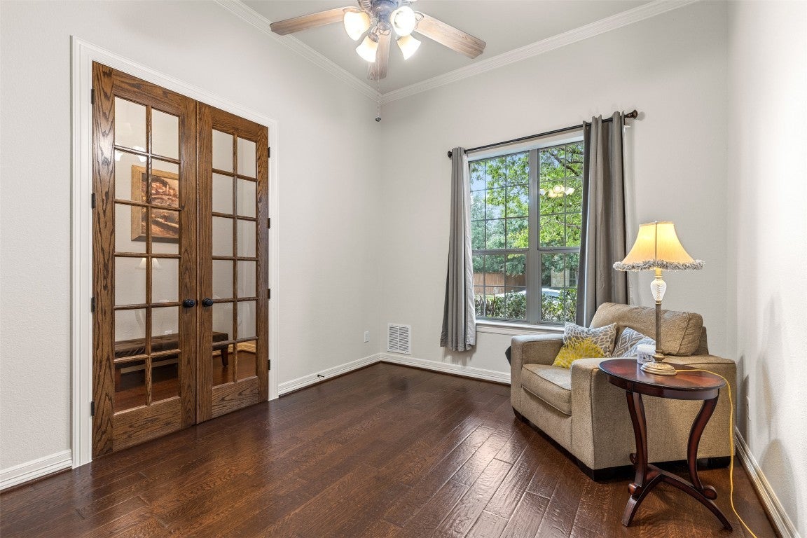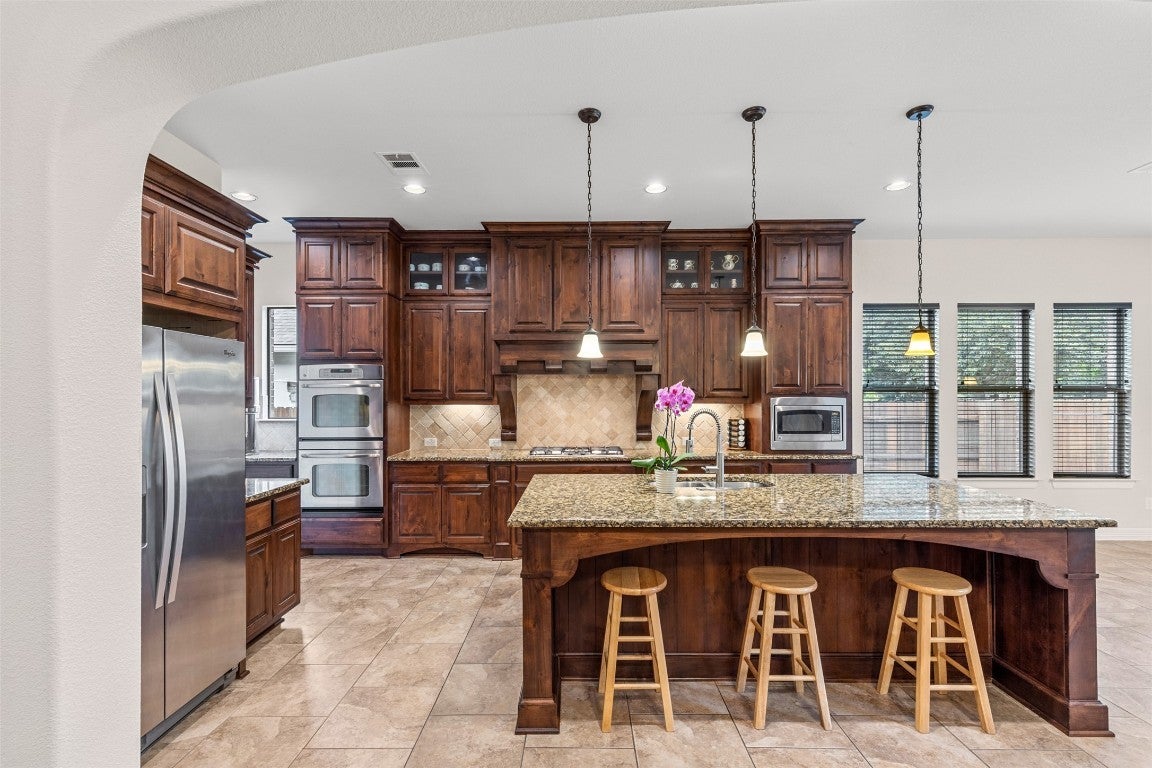 Gorgeous single story home in The Estates section of the Highlands at Crystal Falls in Leander. Conveniently located close to community amenities, Leander ISD schools, and more. Features include wood flooring throughout the main living areas, bedrooms, and office, high ceilings, , gourmet kitchen . media room. The family room features a stone fireplace w/raised hearth, and opens to the large center island kitchen and breakfast area. The kitchen features granite counters, lots of cabinet space, built in five burner gas range, and stainless steel appliances, including a double oven! Plus, there is 2 butlers pantry w/built in desk that leads to the formal dining area. The primary suite features bay windows, walk-in closet, and a spa-like bathroom with double vanity, garden tub, and large walk-in shower. The home has a two car swing-in garage, and a one car front entry garage, each with its own entrance to the home. The backyard features covered patio, and plenty of room for your outdoor furniture. Comes see with amazing home today!