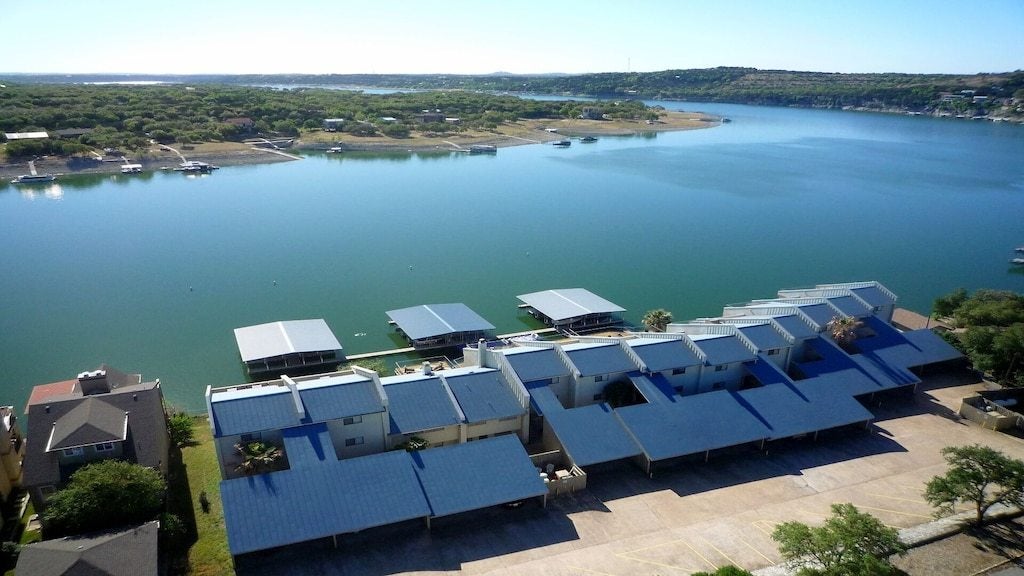 SHORT TERM RENTALS ALLOWED & BOAT SLIP INCLUDED!!........ Welcome to The Whitecliff Waterfront Condo, your ideal vacation retreat! This tastefully furnished 1,279 sq ft unit offers spectacular views of Lake Travis, ensuring breathtaking scenery from the comfort of your home. Enjoy access to a refreshing pool, relaxing Jacuzzi, and a spacious lakefront deck. This unit boasts a fully equipped kitchen with dinnerware, cookware, and coffee makers, plus linens and bath towels for your convenience. You'll have one assigned covered parking space, with additional guest parking, and an assigned boat slip for vessels up to 26 feet, with PWC parking shoreside. Boat launching is conveniently available at Briarcliff Marina or Pace Bend Park.
