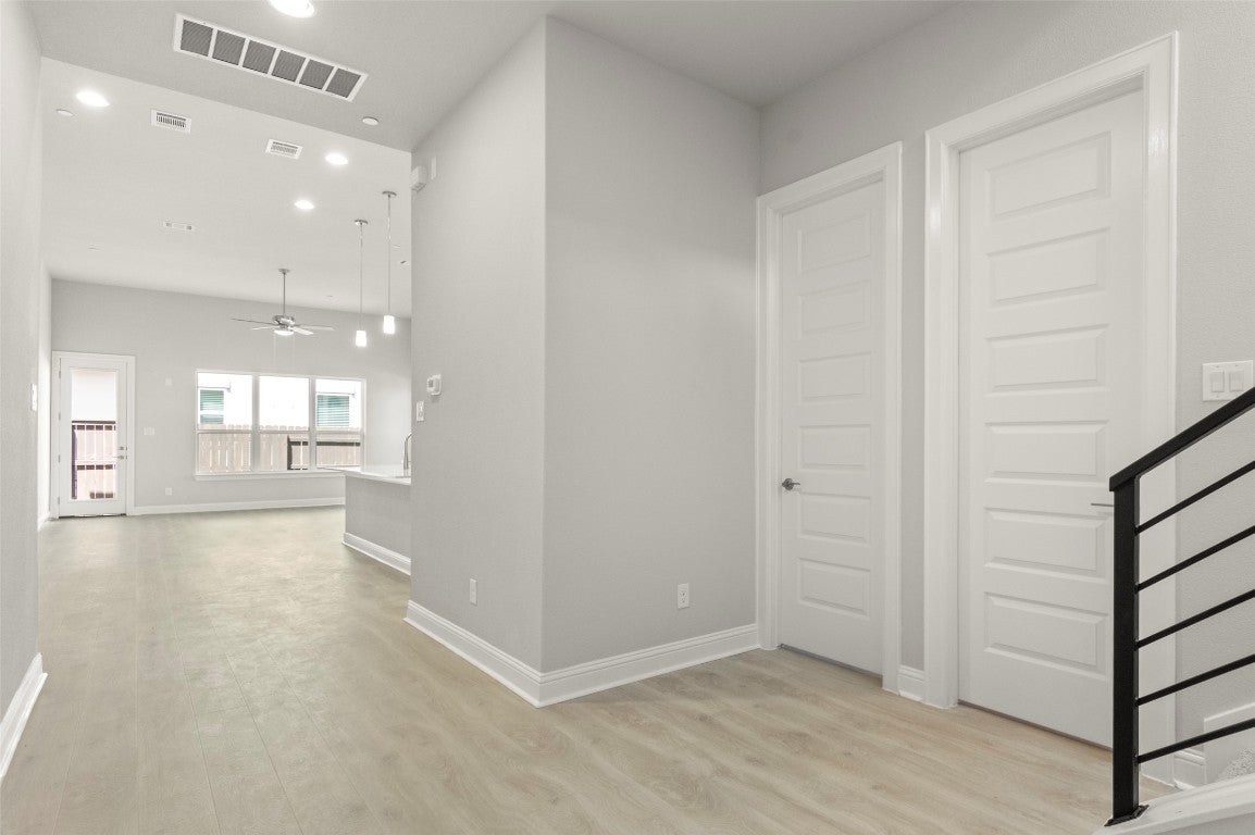 MLS# 2469816 - Built by Brohn Homes - Ready Now! ~ This two-story home in the high-end Cross Creek community gives you space to breathe with no direct rear neighbor and abundant natural lighting to soak it all in. Step inside to find wood-look vinyl flooring throughout the main living areas, grey cabinets with nickel hardware throughout, a ceiling fan in the living room, primary suite, and game room, and a rear covered patio great for hosting. The kitchen highlights premium features with stainless steel built-in appliances, pendant lights, a center island, and a pull-out trash can drawer. Enjoy the luxury of the primary suite with a walk-in shower, walk-in closet, separate water closet, and dual vanity. You'll get abundant storage with the utility room cabinets, linen closets in both bathrooms, corner pantry in the kitchen, and walk-in closets in all bedrooms. Eight-foot doors at the first floor, tankless water heater, front gutters, and a garage door opener add to the functionality of this beautiful 2,311 square foot home. The Cross Creek community in Cedar Park offers a range of amenities to enhance your daily life, such as scenic walking and biking trails, perfect for outdoor enthusiasts. Relax at nearby parks and playgrounds, or take advantage of the community's proximity to shopping, dining, and entertainment options. And because it’s an energIQ home built by Brohn, you’re getting more home, more quality, and more value—all without compromise.