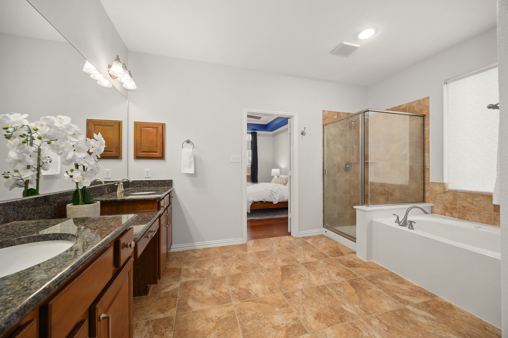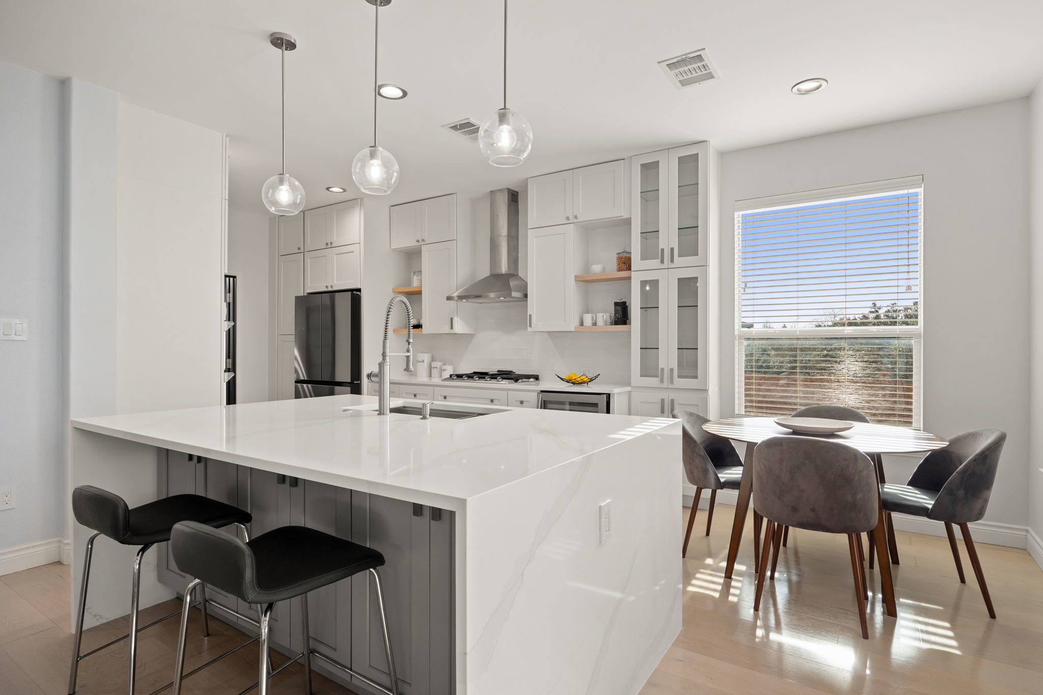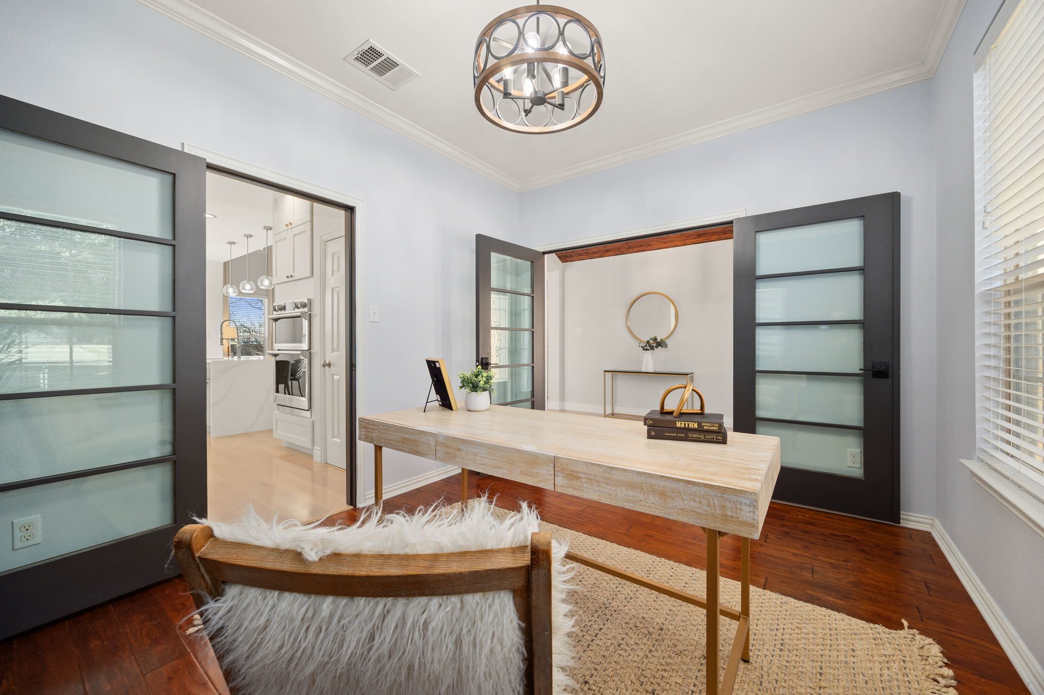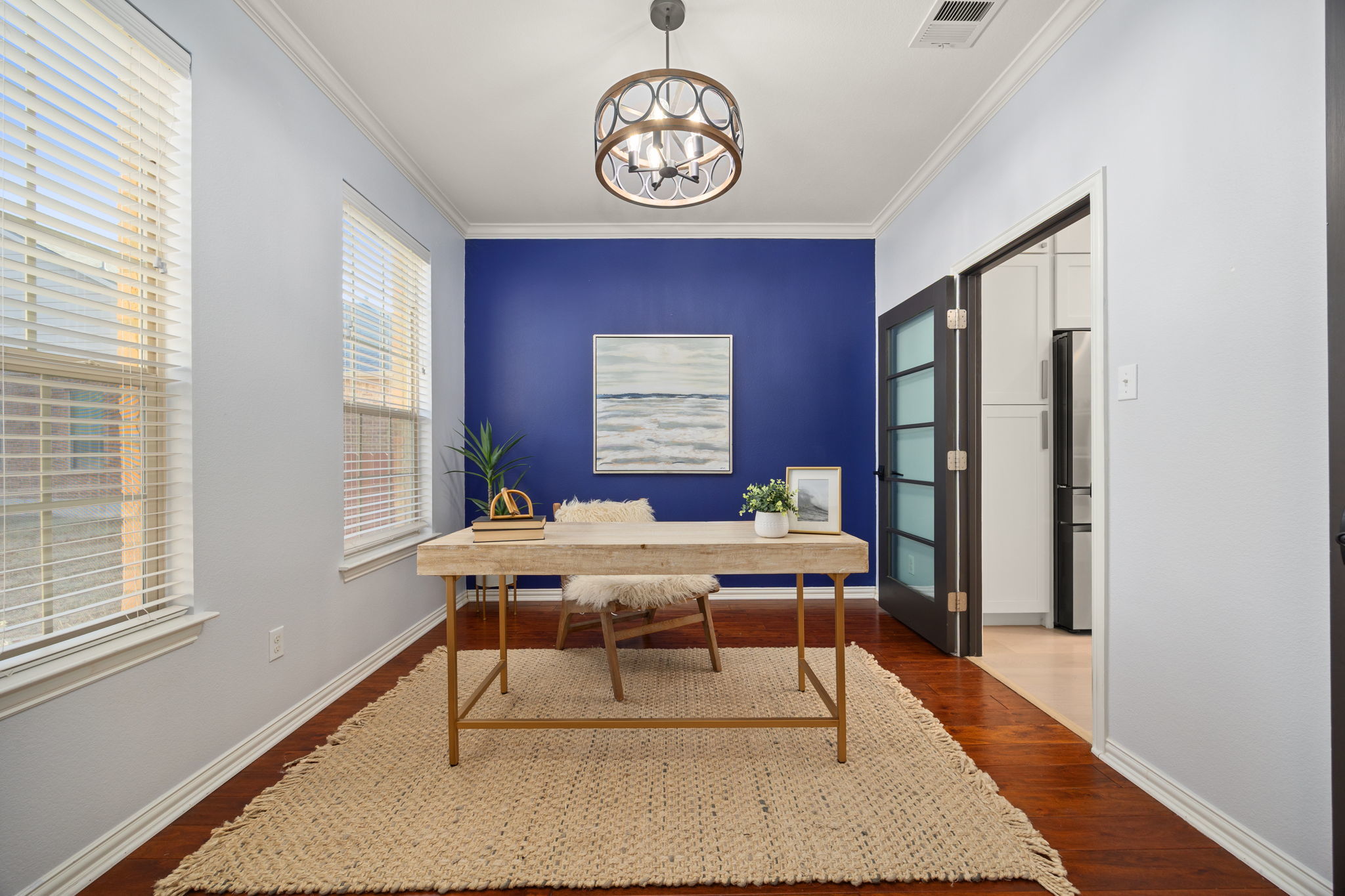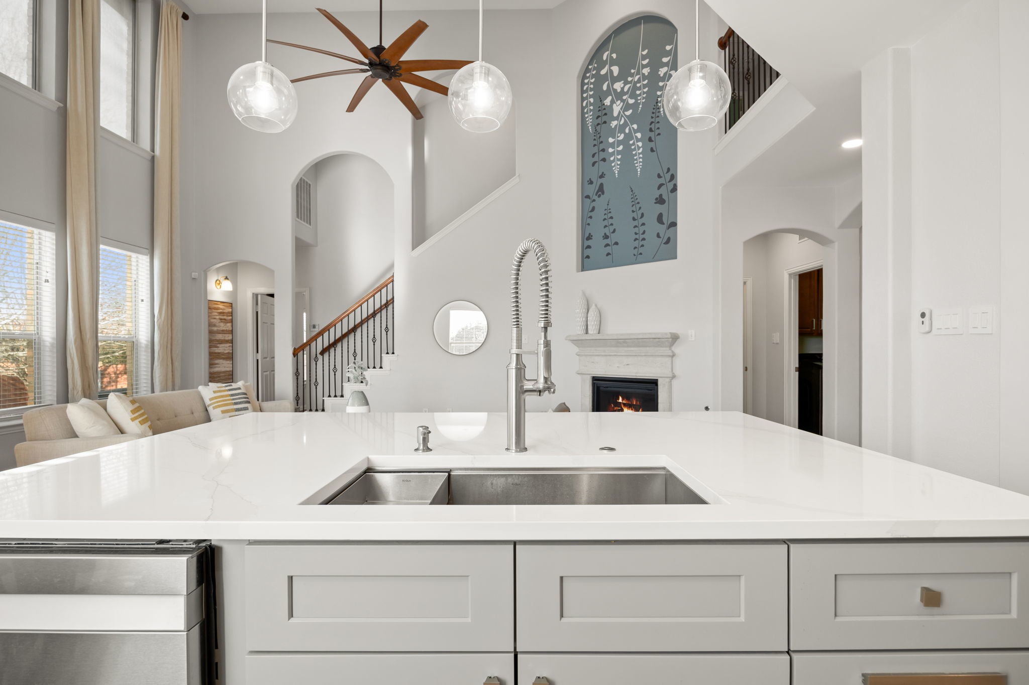 This beautifully upgraded two-story home offers 4 bedrooms, 2.5 baths, a spacious loft, plus two additional flex spaces, one upstairs and one downstairs. This home is thoughtfully designed for both everyday living and entertaining. While the downstairs flex area is staged as an office, it can easily be set up to serve as a formal dining area. With over $100,000 in recent improvements, this home truly stands apart. The primary suite is conveniently located on the main level and features a tray ceiling and a spa-inspired bath with a double granite vanity, soaking tub, and walk-in shower. The heart of the home is the showstopping kitchen, completely rebuilt from the ground up with no expense spared, boasting high-end finishes, gas cooking, and a layout that flows seamlessly into the open living space. Soaring ceilings, a corner fireplace, and abundant natural light create a warm yet impressive atmosphere throughout the home. Recent upgrades include white oak hardwood floors on the main level, luxury laminate flooring upstairs, a brand-new $85,000 kitchen rebuild, enhanced caulking and structural improvements, and $5,000 in new grass along the side and backyard, bringing the total investment to approximately $115,000 in just one year. Located in a peaceful, quiet neighborhood, residents also enjoy access to a fantastic community pool and amenities. This open, light-filled home combines luxury, comfort, and quality in a setting that feels both refined and welcoming.