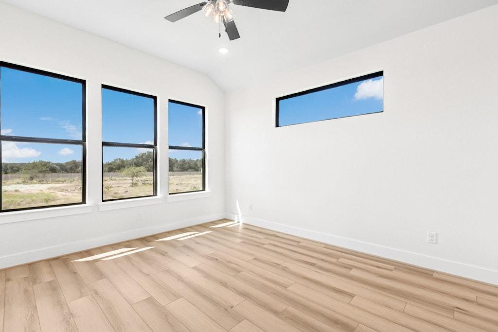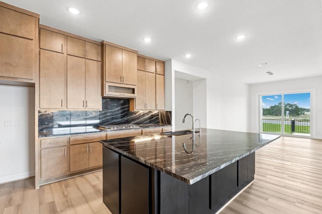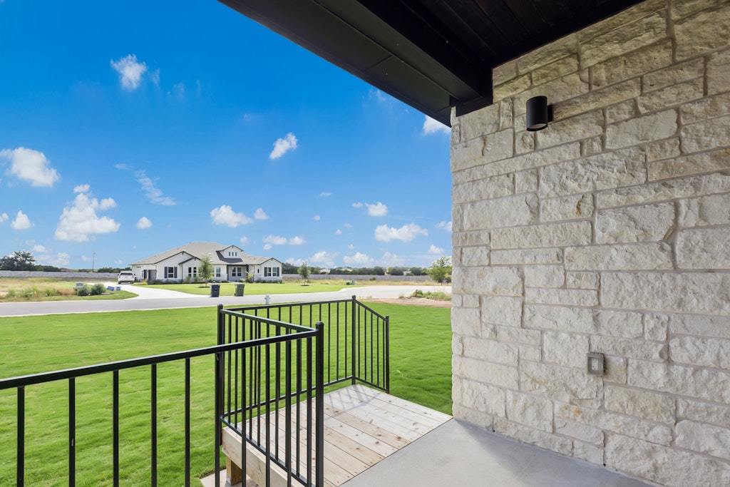 Modern Luxury on One Acre in Leander Estates. Featuring over $147,000 of structural and interior options and upgrades. Experience refined Hill Country living in this stunning Duval floor plan, nestled on a spacious 1-acre homesite in highly sought-after Leander Estates. This thoughtfully designed single-story home offers 3,199 square feet of open-concept living, featuring 4 bedrooms, 3.5 bathrooms, a dedicated home office, and a versatile game room. Enjoy seamless indoor-outdoor flow with an expansive family room boasting 11’ ceilings and a wall of sliding glass doors that open to a large covered outdoor living area—perfect for entertaining or relaxing under the Texas sky. The gourmet kitchen is the heart of the home, complete with a family dining area and additional covered patio access. Whether you're hosting guests or enjoying a quiet evening at home, this residence offers the ideal combination of space, style, and comfort.