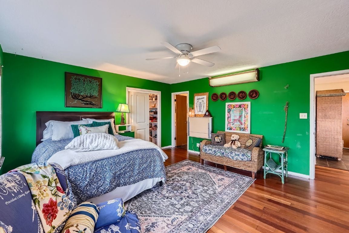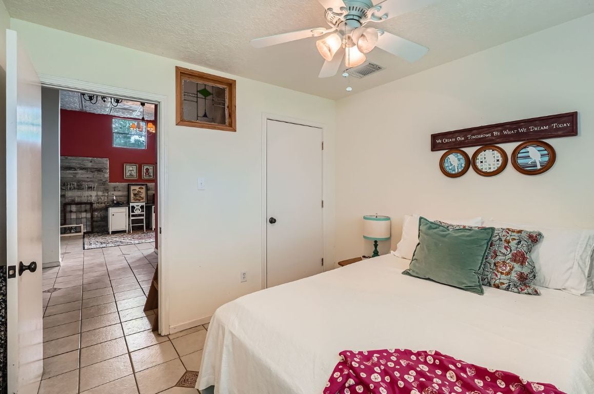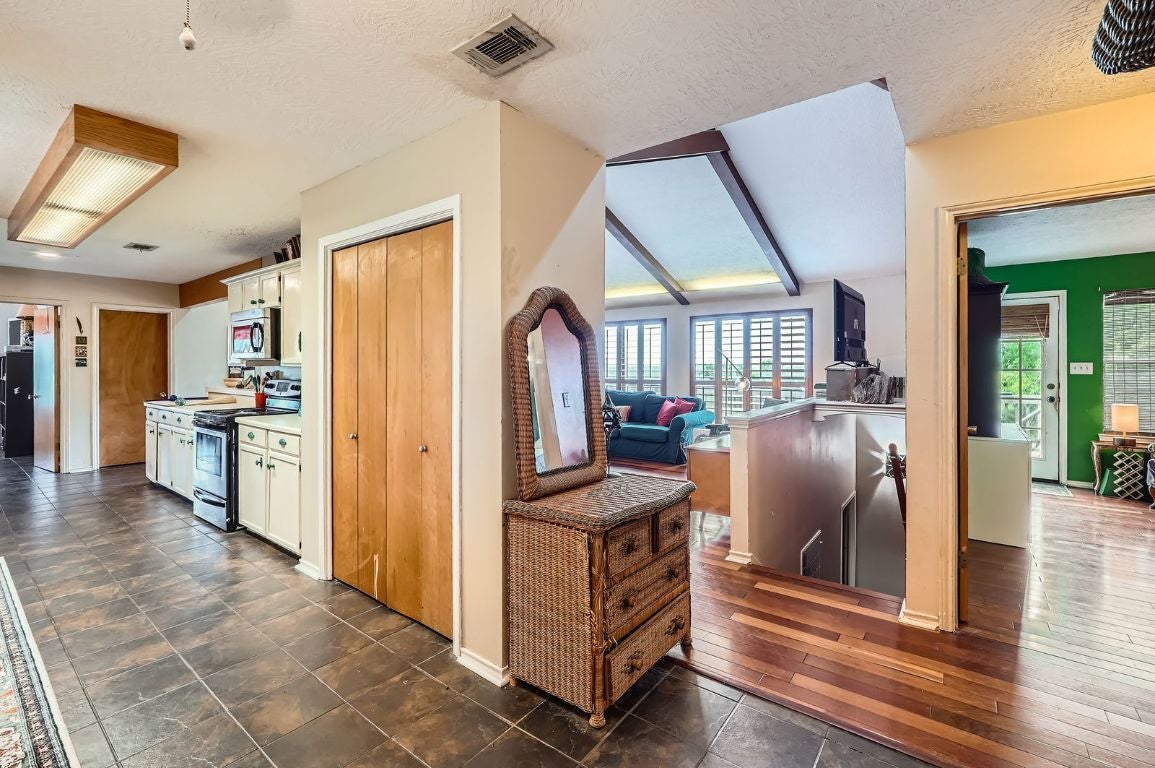 Wimberley Artistry at Its Finest: Perched high on the hill with panoramic views of the Texas Hill Country, this stunning 3,100 sq ft custom home blends artistic design with natural beauty. Every room tells a story, beginning with the vaulted family room featuring exposed wood beams, a floor-to-ceiling stone fireplace, and custom wood flooring. A wall of windows captures breathtaking views, bringing the outdoors in. Step out onto the expansive full-length wood deck, the perfect spot to relax and take in the forever views. Inside, the craftsmanship continues with custom wood flooring flowing down the stairwell, accented by a hand-cut wood railing. The lower level of the home offers a world of its own — with soaring ceilings, creative tile work, whimsical ceiling accents, and a charming loft hideaway for the kids. This versatile downstairs wing includes its own entrance, a spacious living area, primary bedroom, guest bedroom, and full bath — ideal for multigenerational living or potential rental income. A private road leads directly to the main street for added convenience. Outdoors, enjoy two fenced yards and a tranquil pond framed by natural rock, nestled along the hillside. Additional features include a bonus potbelly stove for efficient, radiant heating during the winter months, and a south-facing roof — perfectly positioned for future solar installation. This is more than a home — it's a creative retreat in the heart of Wimberley.