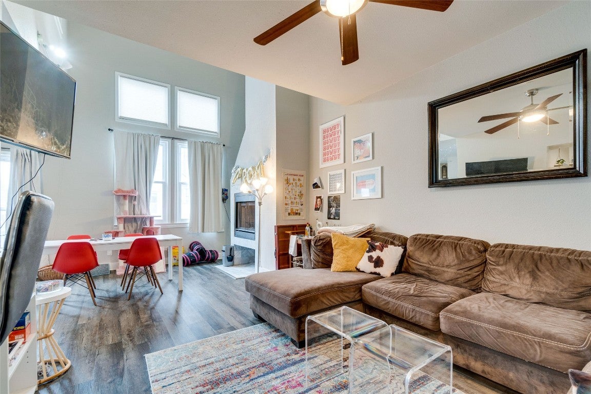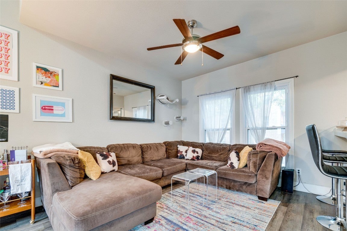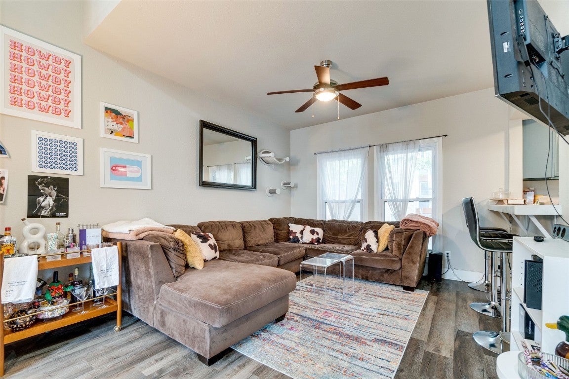 Unique 2 Bedroom Condo Carved out of 19th Century Home. Dramatic 30 ft ceilings. Mega Windows. Mega Light. Modern Hand Scraped Wood vinyl floors. Full Updated Kitchen with Stainless Appliances Including Washer / Dryer , Huge Bedrooms. Ceiling Fans, County Windows. Quartz Counters in the bathrooms with updated fixtures. Water, Trash , and 2 Parking are included. One of a kind apartment directly on the UT Shuttle and just 4 Blocks to the UT Campus. Neighborhood Grocery across the street. Close to Starbucks, Target, P-Terry's.