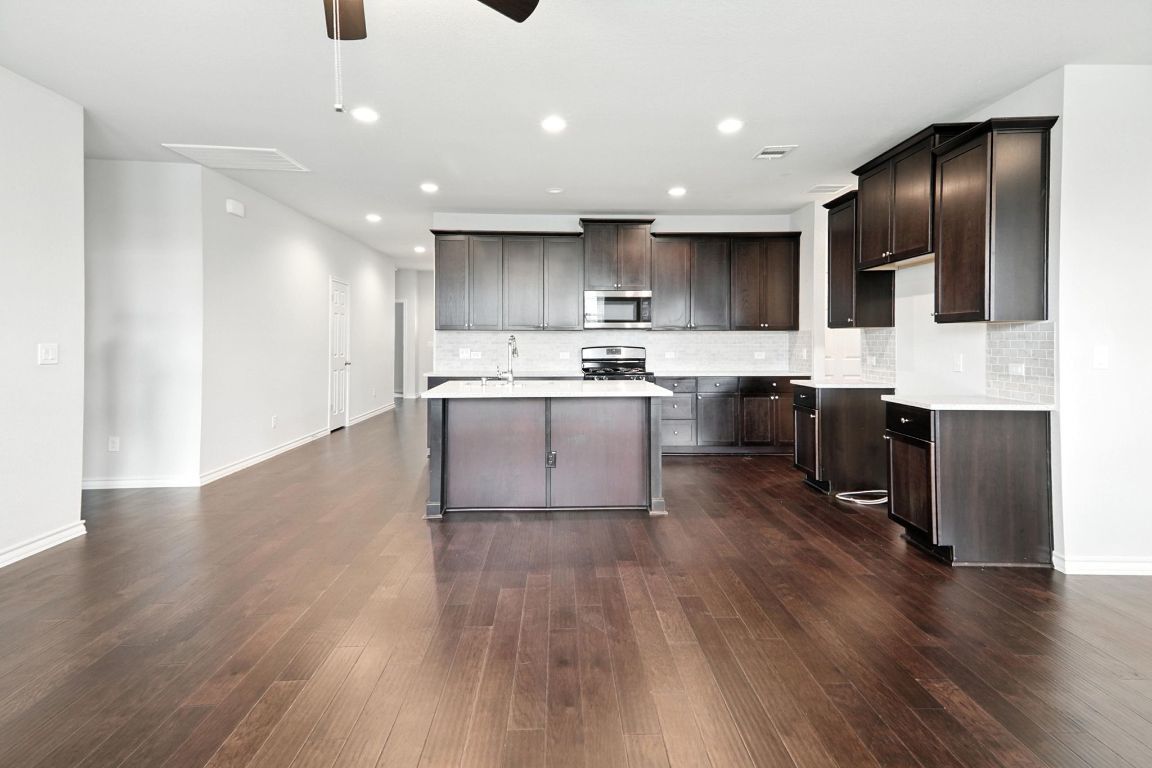 This gorgeous single-story home features an inviting open-floor concept, perfect for modern living and entertaining. Step into a spacious living area that flows seamlessly into a chef-inspired kitchen, complete with a large granite island, single basin sink, stainless steel appliances, and ample seating for casual meals or gatherings. The walk-in pantry provides plenty of extra storage, making organization a breeze. The secluded master suite is your private retreat, boasting a luxurious bath with linen storage, a walk-in shower, double vanity, and a massive walk-in closet—ideal for all your wardrobe needs. Two additional bedrooms and a second full bathroom offer flexibility for family, guests, or a home office. Location is everything, and this home delivers! You’re just minutes from the HEB Shopping Center, MetroRail station, Austin Community College (ACC), St. David’s Leander Medical Center, and the exciting future Northline District. Top-rated Leander ISD schools are nearby, making this an ideal spot for families. Don’t miss your chance to make this beautiful home yours—schedule a tour today and experience the best of Leander living!