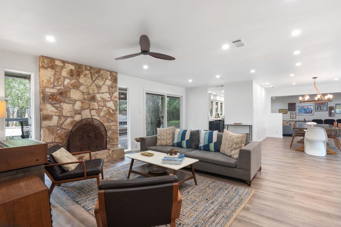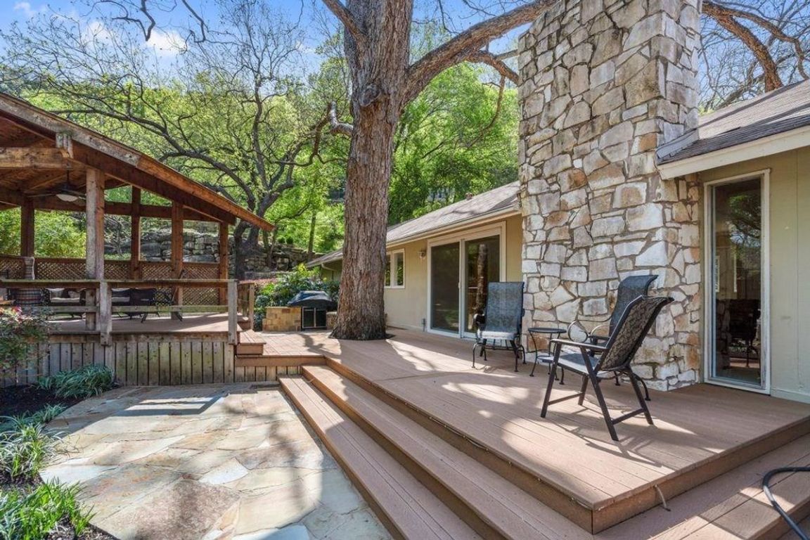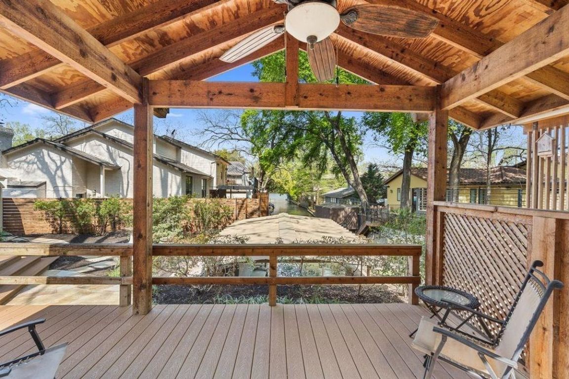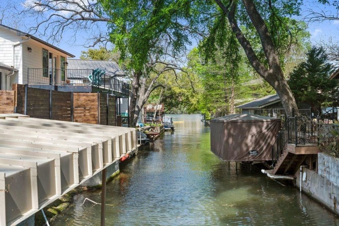An exceptional one-story lakefront home tucked away in the highly sought-after Rivercrest community on Lake Austin. Located just west of the iconic Pennybacker Bridge, this hidden gem offers rare direct access to Lake Austin with a private boat slip and gazebo within the prestigious Eanes Independent School District. Situated at the end of a peaceful channel just off the main lake, this beautifully maintained home features a spacious and inviting layout with generous indoor and outdoor living spaces. Enjoy tranquil mornings and golden sunsets from the expansive flagstone patios in the front and back of the home, perfect for relaxing or entertaining guests. Step out your back door and onto your boat for a quick ride across the canal to local favorite Ski Shores Café, or cruise down the lake and soak in the beauty of West Austin’s lush, tree-lined shoreline. Whether you’re seeking weekend escapes or year-round lakefront living, this home offers the ideal blend of privacy, charm, and access to all the best of Austin. Don't miss this rare opportunity to live the lake life just minutes from downtown Austin.